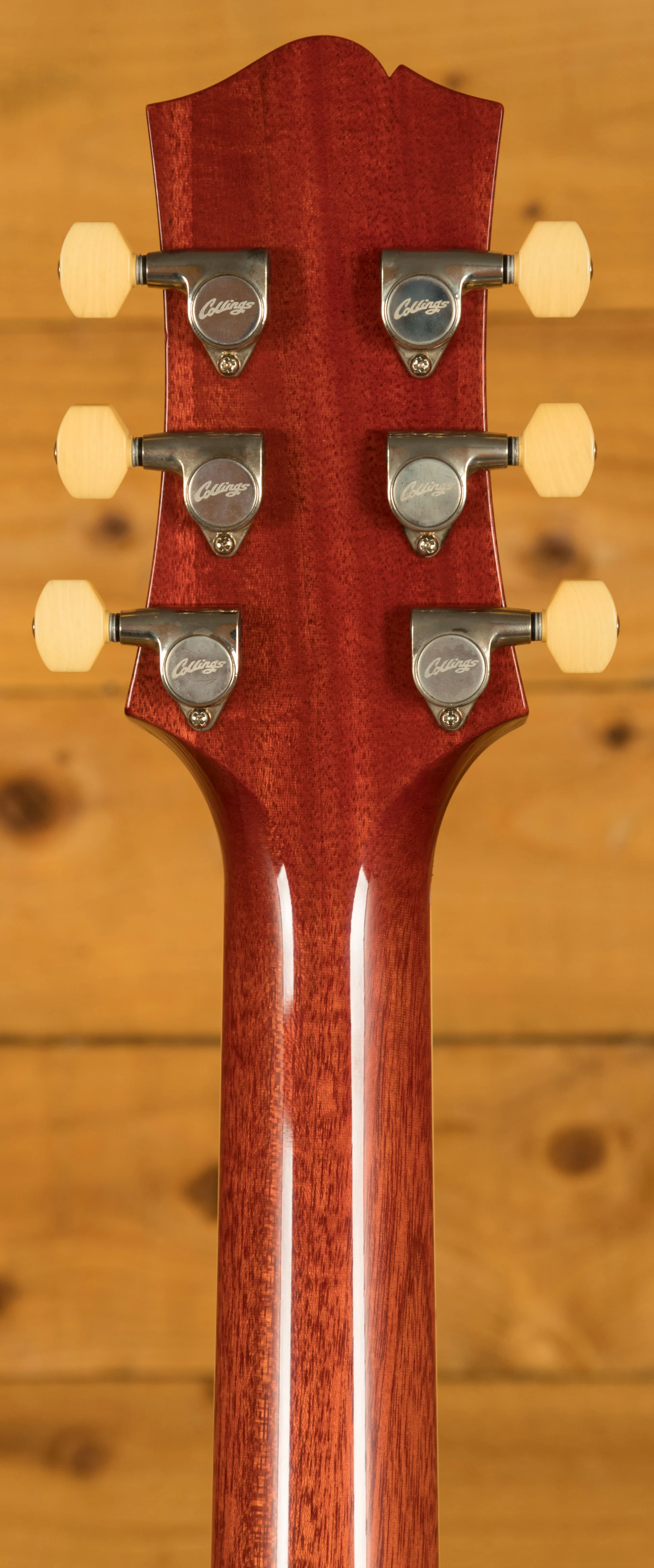 With a Laminate Maple body with a Maple centre block, finished in the Collings Faded Cherry, this is a serious guitar with a seriously cool look. Each laminate model is constructed using a combination of different density woods that are rich in tone, precise in response and deliver that premier Collings vibe. Equipped with a Kluson ABR-1 bridge and stop tailpiece, this guitar offers incredible intonation and a beautifully smooth playing action.