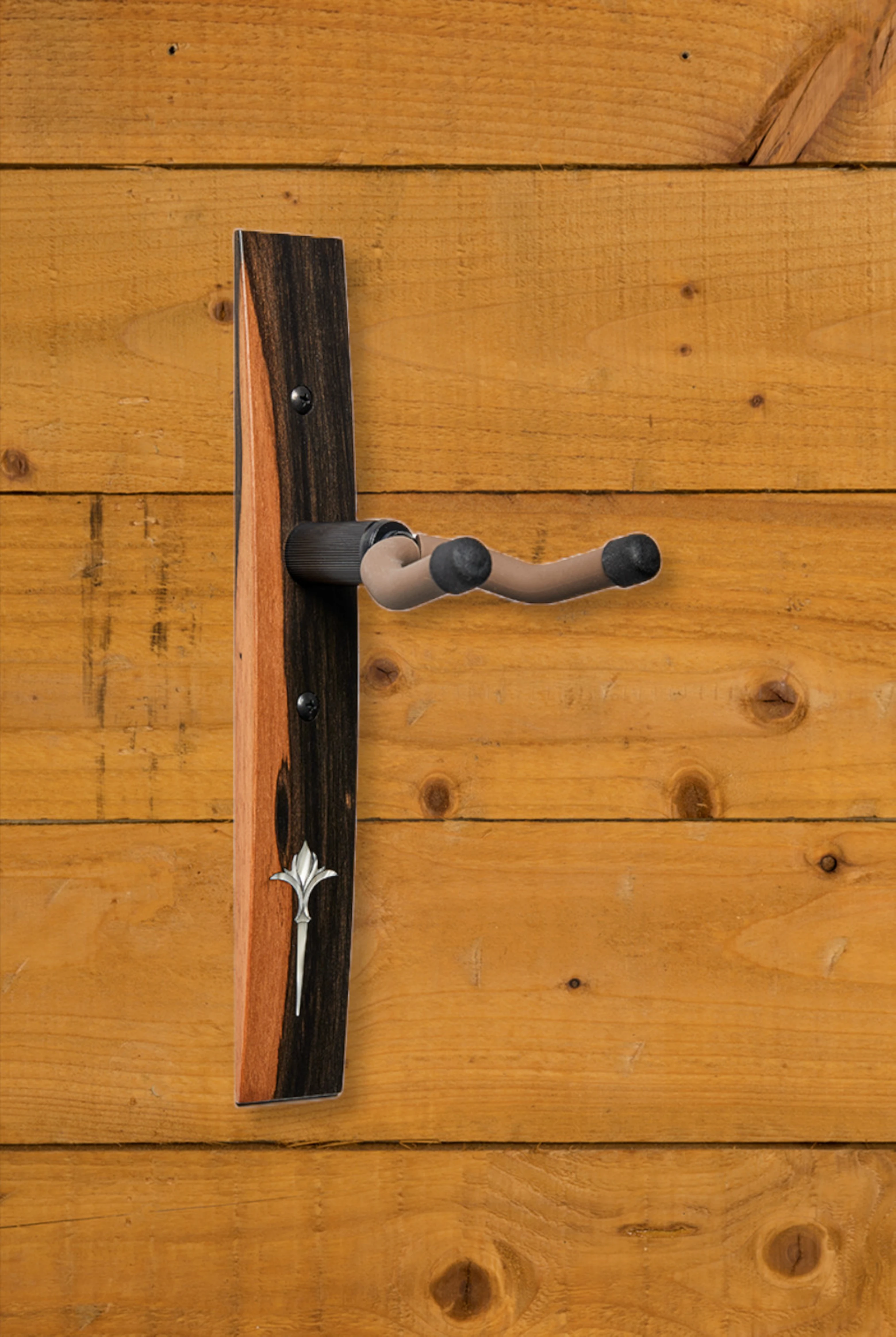 This finely crafted guitar wall hanger is made from genuine West African Crelicam ebony, the same ebony that Taylor use in the fretboards and bridges of their acoustic guitars. Every wall hanger features a cushioned yoke that provides a safe spot for your guitar to hang without damaging the finish or neck. With ebony's beautiful colouration, each wall hanger boasts a one-of-a-kind organic look. This model features an inlay design in Italian acrylic to match the Nouveau pattern from Taylor's Presentation Series guitars. Purchases support their tree-planting projects and other environmental initiatives. Includes 1-7/8"" x 11-3/8"" wood mount and all necessary screws.