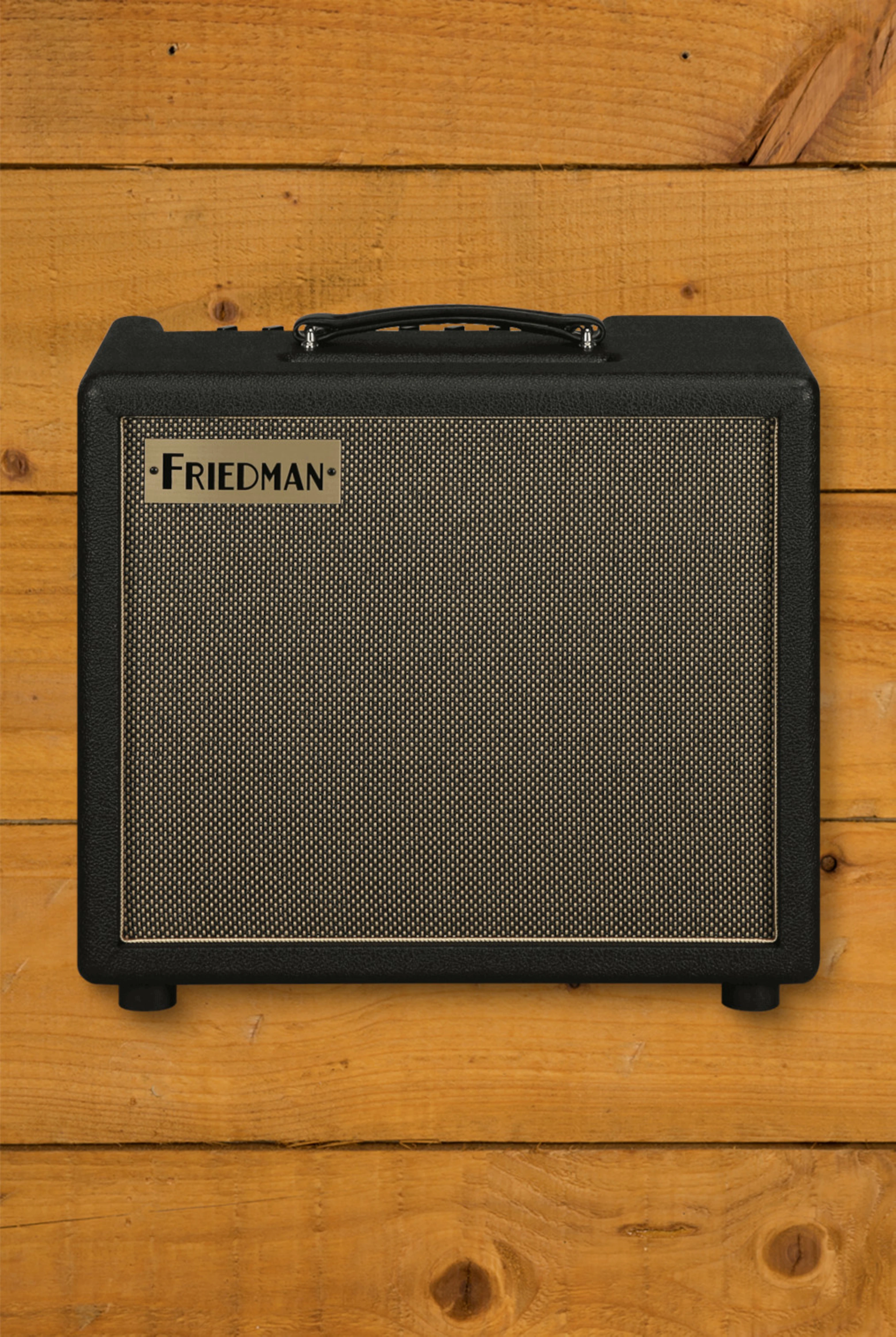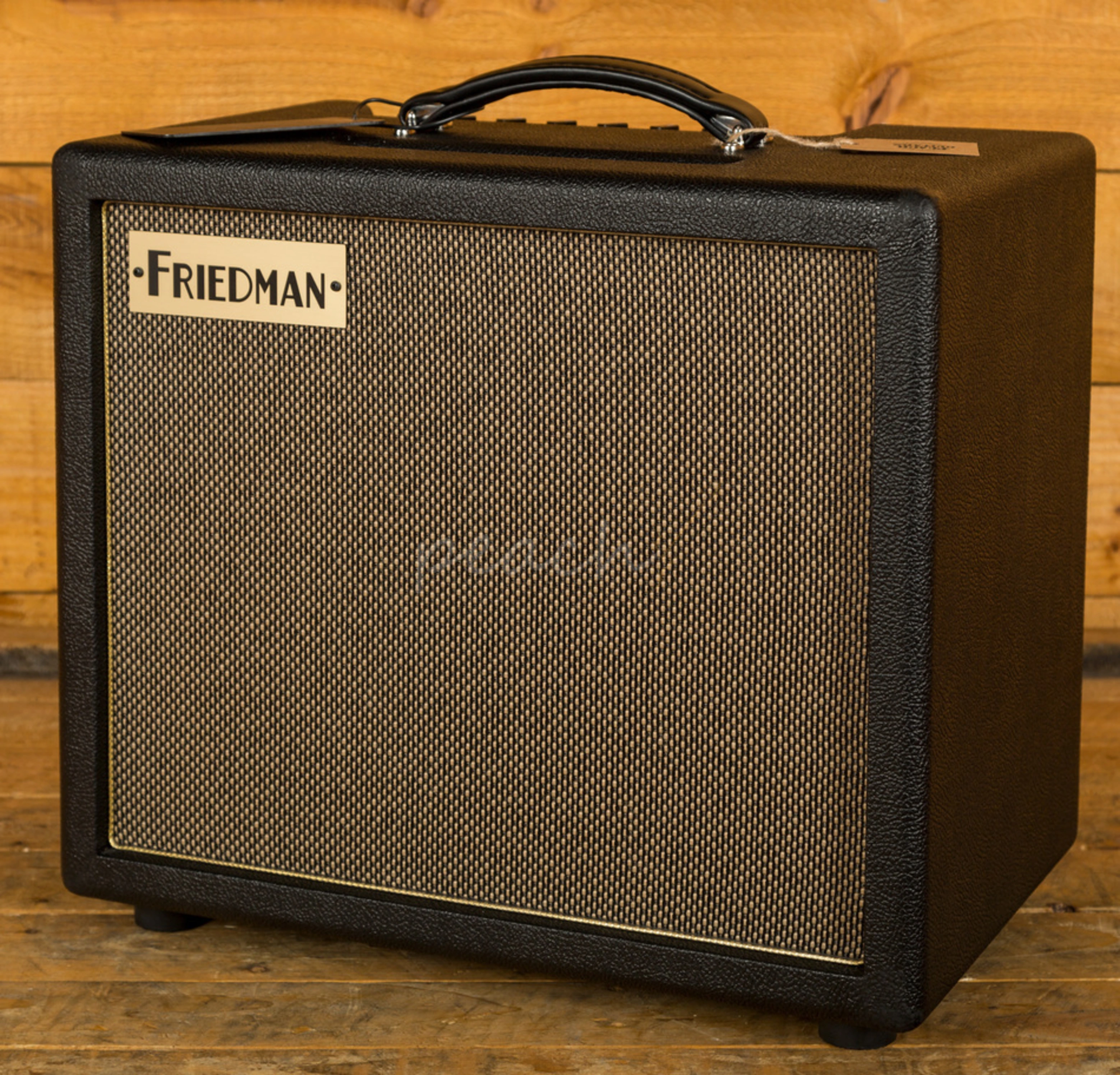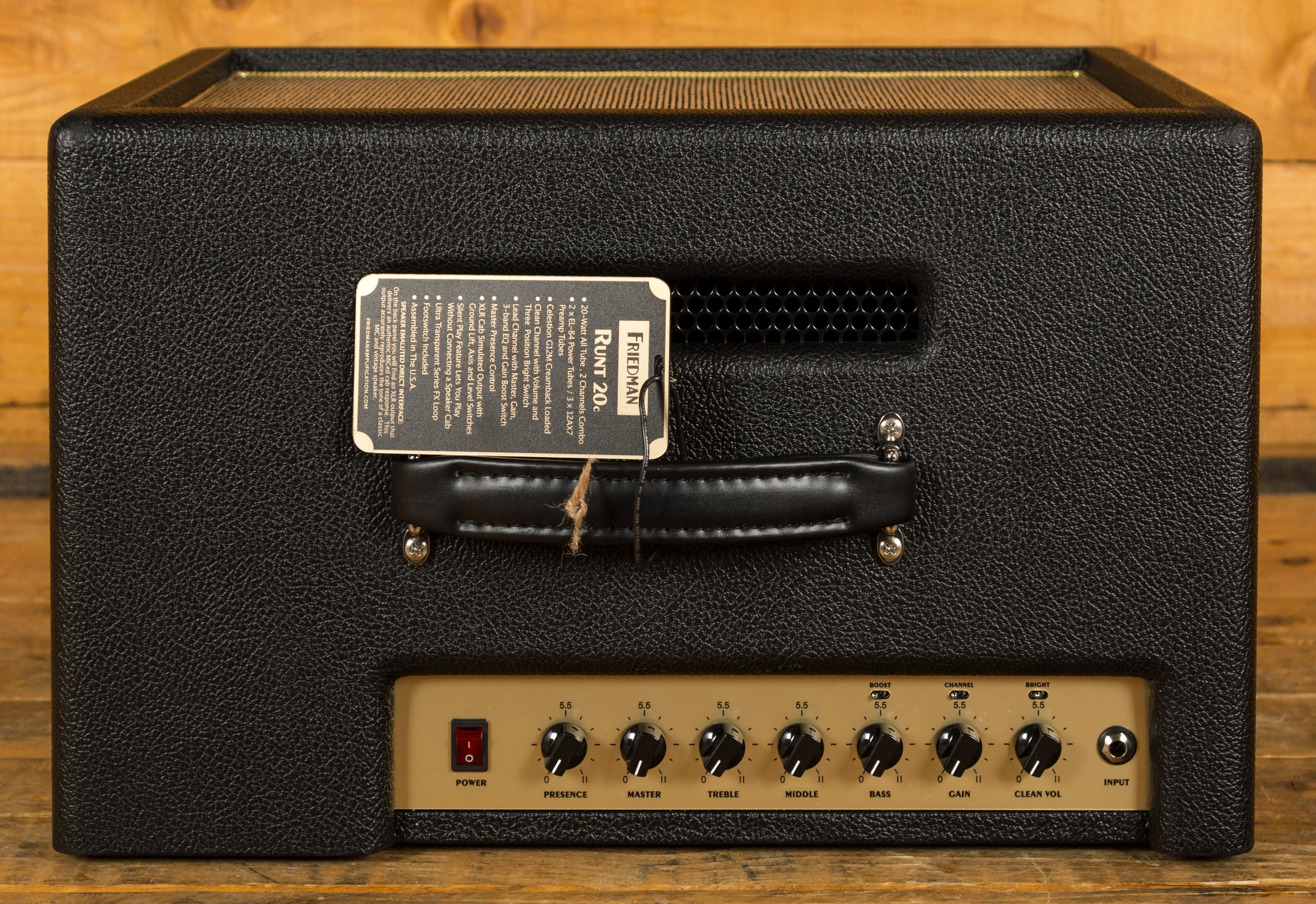 The new Friedman Runt-20 1x12" 20-watt combo delivers Friedman's legendary tones and versatility in a compact 2-channel amplifier. This lovely Runts power section is driven by a pair of EL-84s, with a trio of 12AX7s in the preamp. The simple clean channel features a volume knob and 3-position bright switch that delivers anything from pristine cleans to a slightly broken-up blues/country tone. Nice and easy, what more could you want.