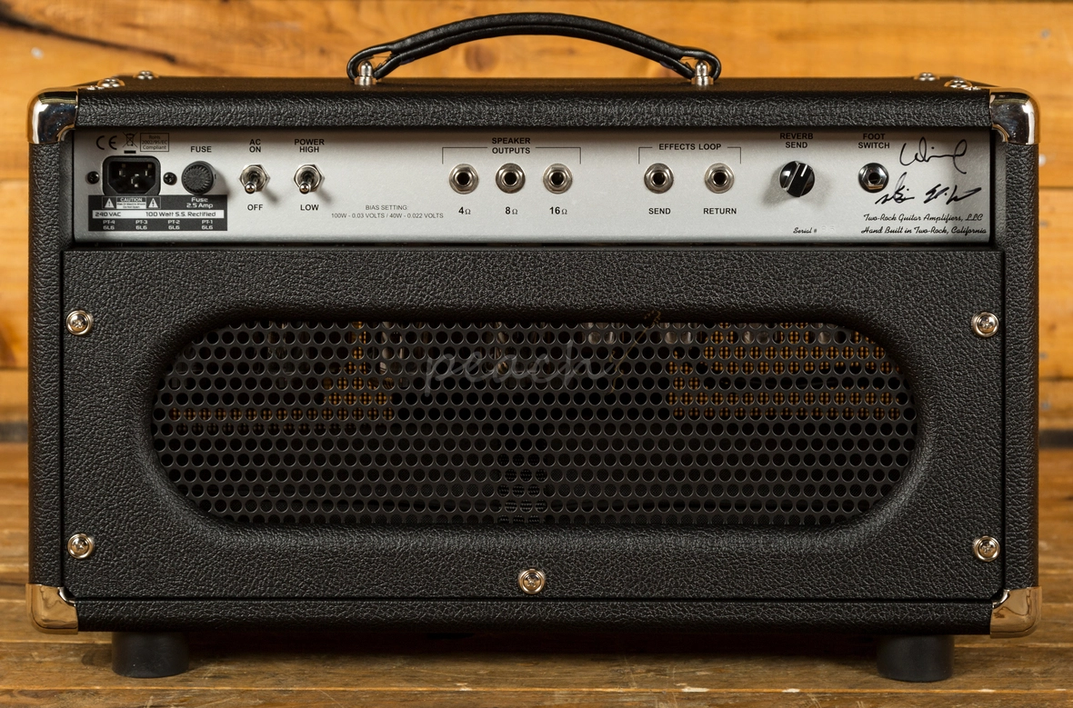 New for 2018 is the Bloomfield Drive, a classic style 2 channel workhorse with the usual Two Rock finesse. Loaded with Two Rock's new proprietary output transformers, they allow 4 x 6L6 power tubes to be switchable from 100 to 50 watts without any impedance mismatch or sacrifice of tone and feel. The clean channel is super responsive and offers a depth and articulation that is instantly recognisable while the lead channel delivers a potent drive packed with delicious harmonics, gain and rich sustain.