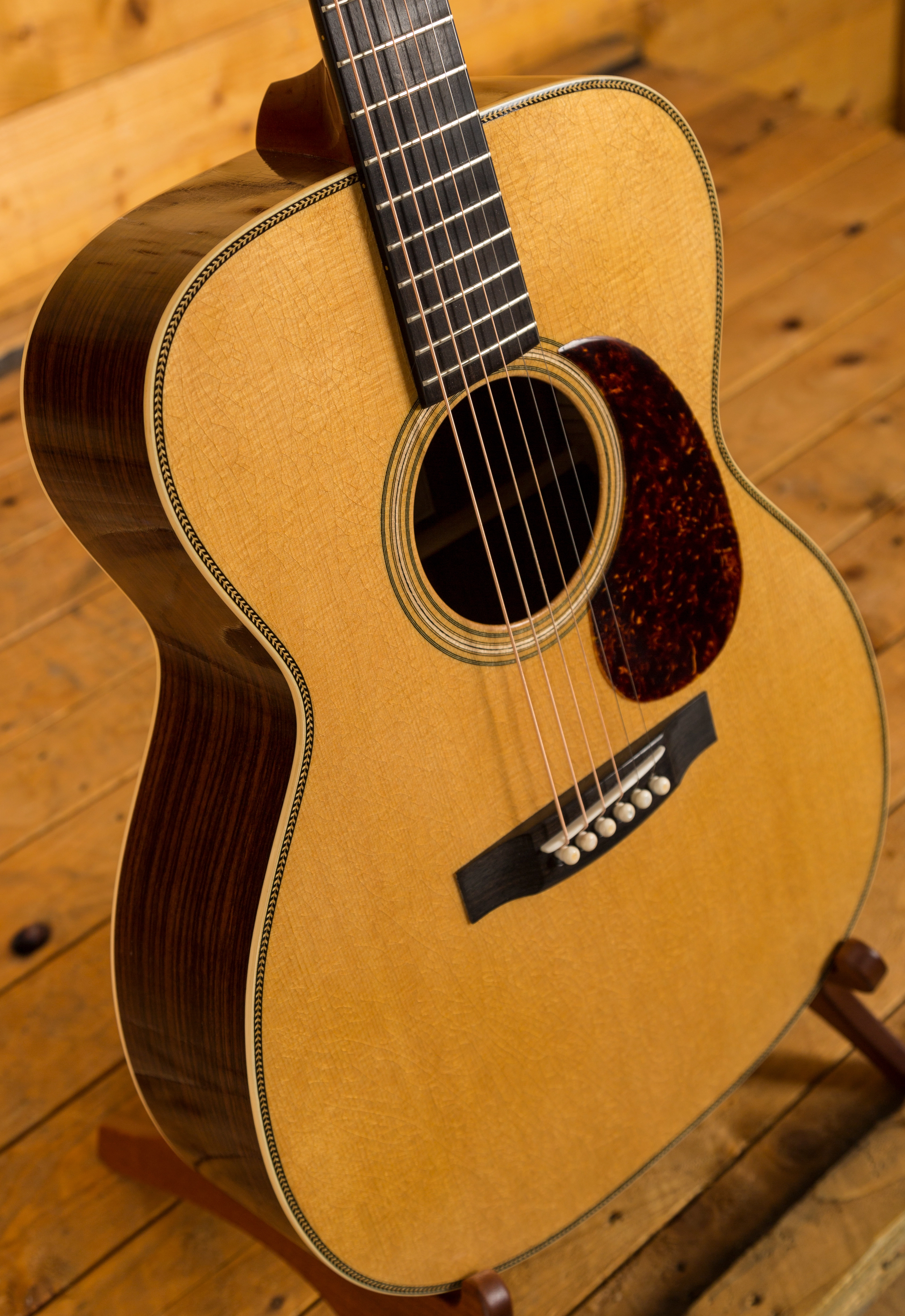 With a Torrefied Sitka Spruce top on an East Indian Rosewood back and sides, the Atkin OOO37 Relic is a tonewood dream, offering a rich, resonant and super clean tone, it is a guitar of the highest quality. With a super thin aged toner nitro finish, the OOO37 has some of the most amazing lacquer checking we have ever seen, with intricate and unique swirls and patterns it looks every bit the vintage guitar.