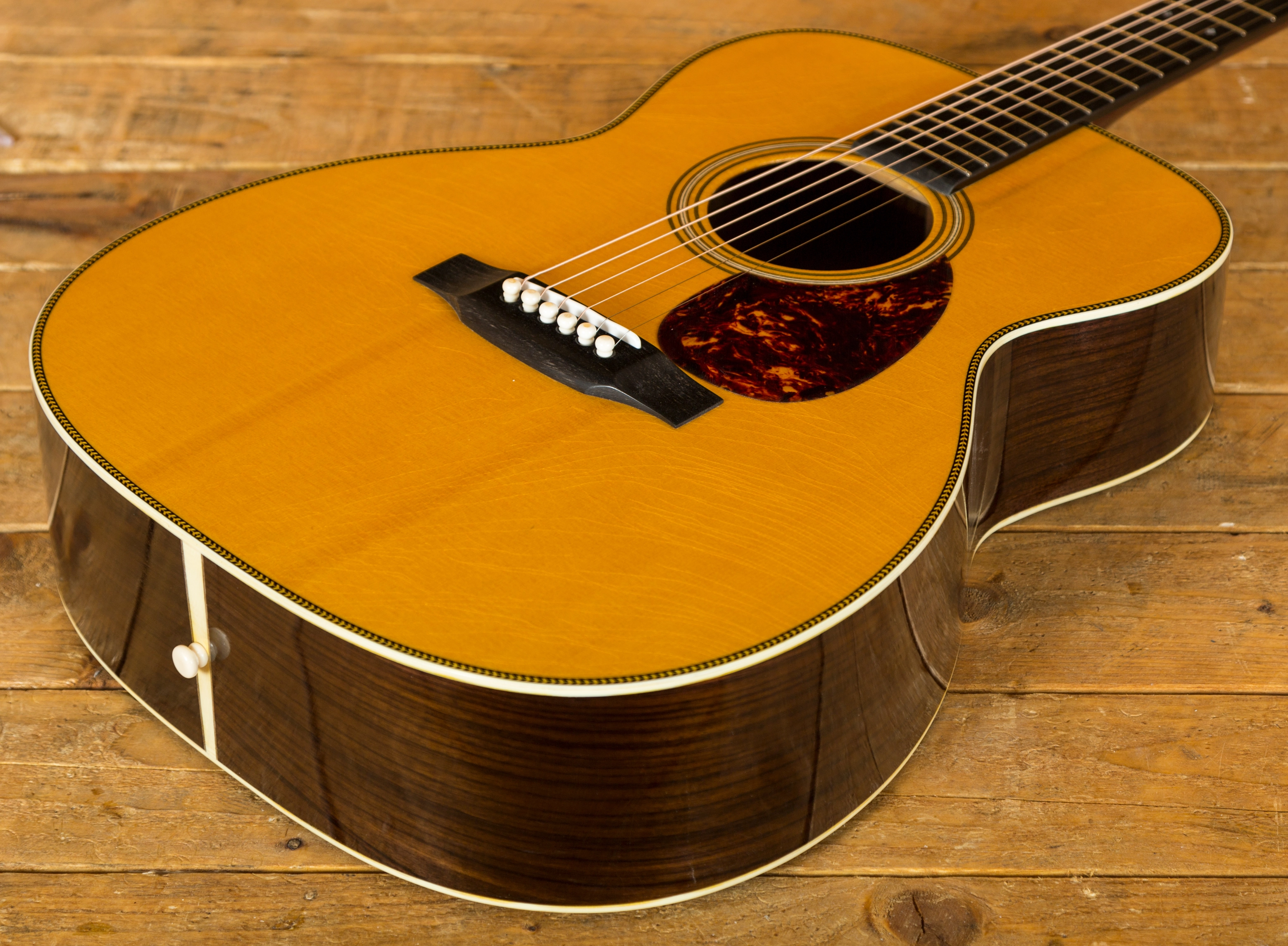 With a torrified Sitka Spruce top on an Indian Rosewood back and sides gives a really full and focused sound with great dynamics and super response. The Mahogany neck features an Ebony fingerboard and a 25.4" scale length, perfectly comfortable with either intricate picking or brash strumming; the OM37 offers superb projection and a rich full tone. The age toned relic lacquer nitro finish allows the wood to really breathe and resonant more effectively, it gives a truly vintage tone.