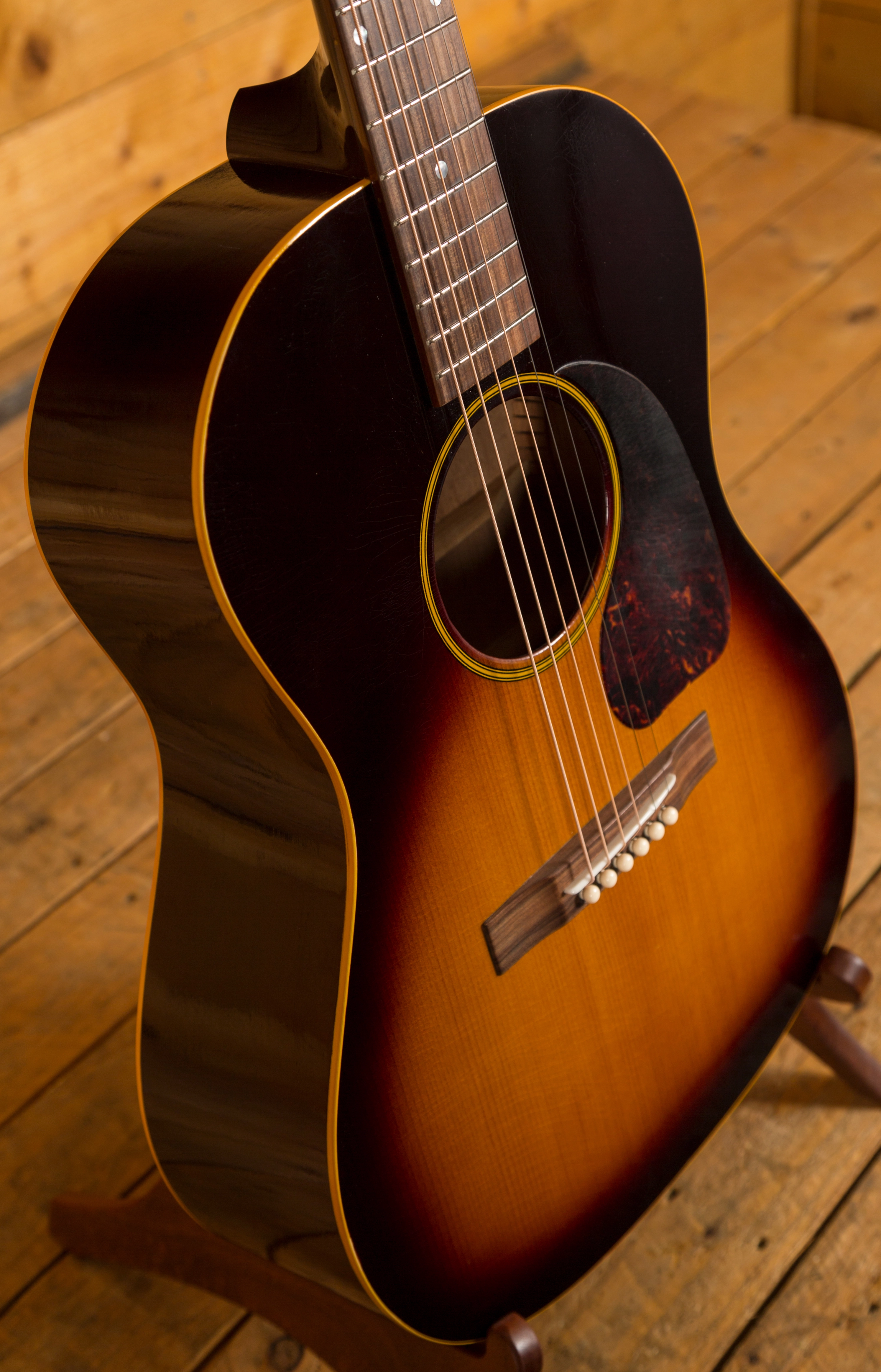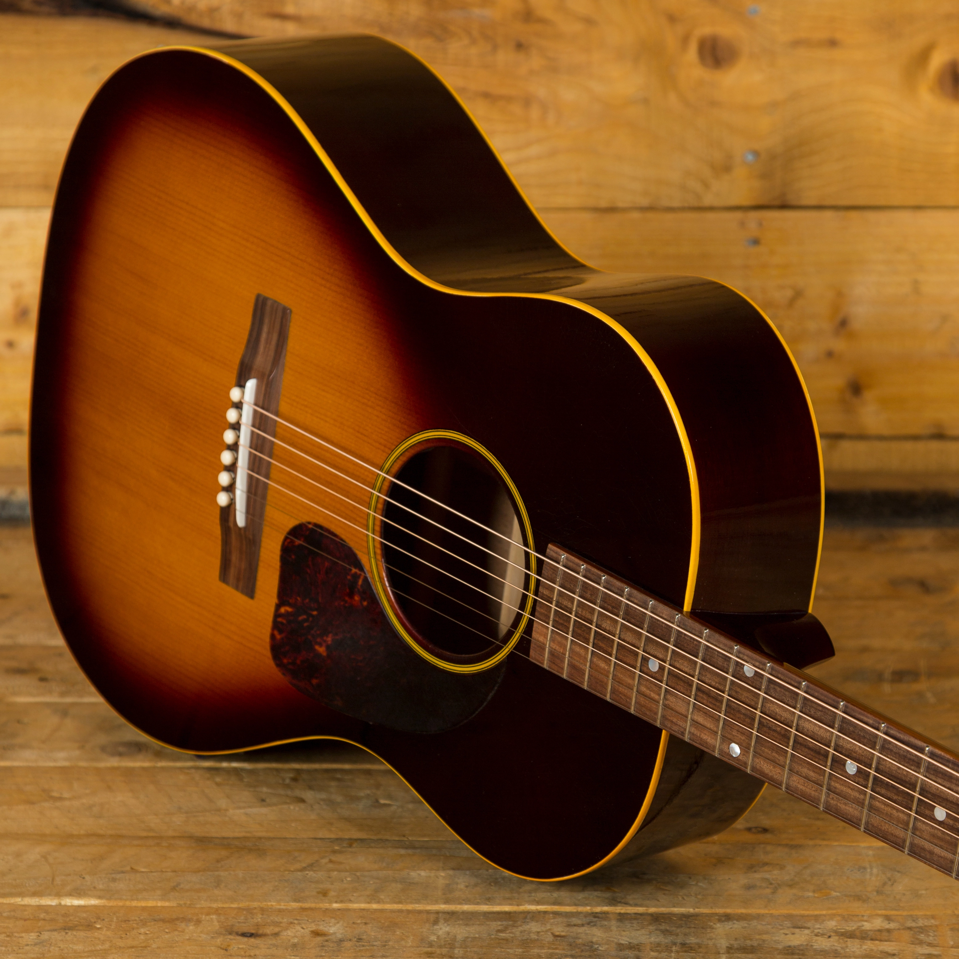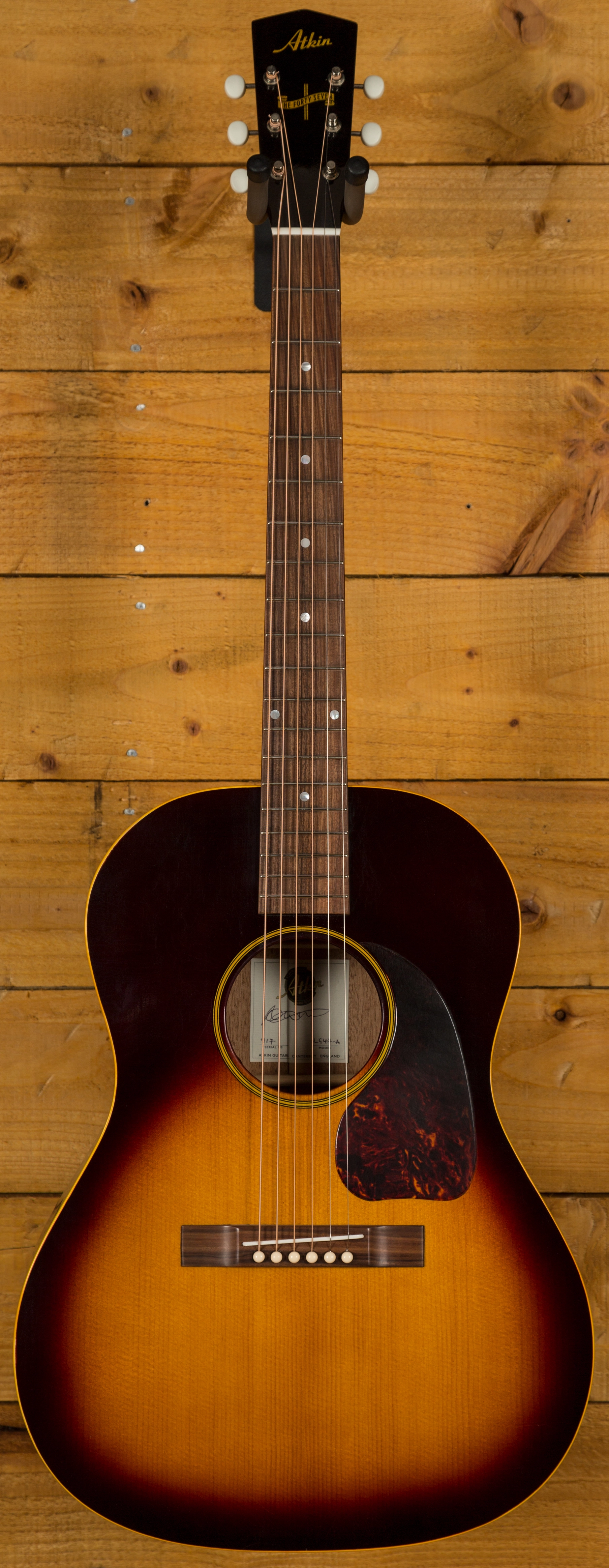 With a Torrefied Sitka Spruce top on Mahogany back and sides, the Atkin 47 Relic is a tonewood dream, offering a rich, resonant and super clean tone, it is a guitar of the highest quality. With a super thin aged Sunburst nitro finish, the 47 has some of the most detailed lacquer checking around, it looks every bit the vintage guitar.