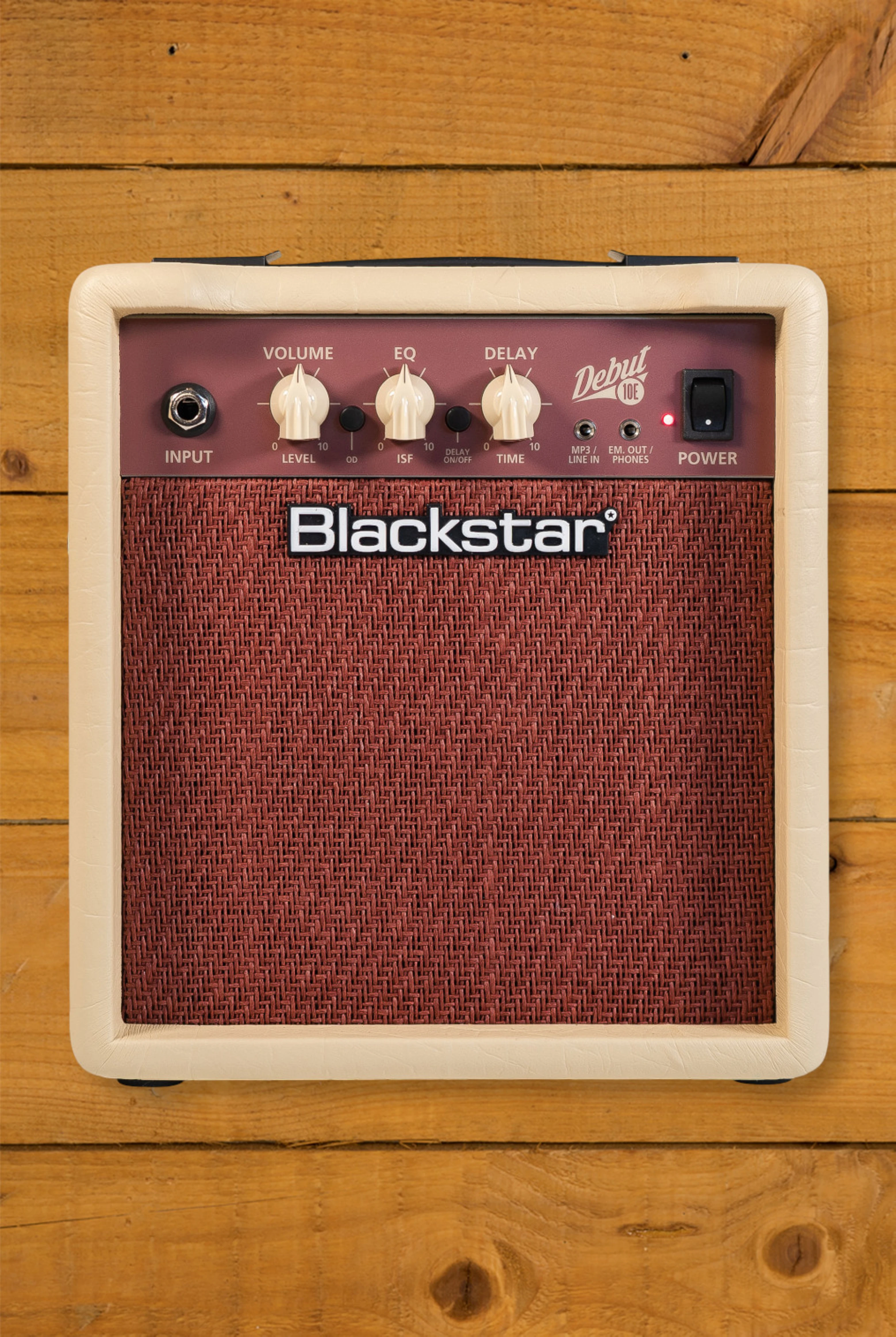 At its core, the Debut 10E features Blackstar’s patented ISF (Infinite Shape Feature) tone control, allowing players to fine-tune their sound from American to British voicings. The built-in "tape" echo effect adds depth and ambience, while the stereo linear response speakers ensure rich, immersive tone.