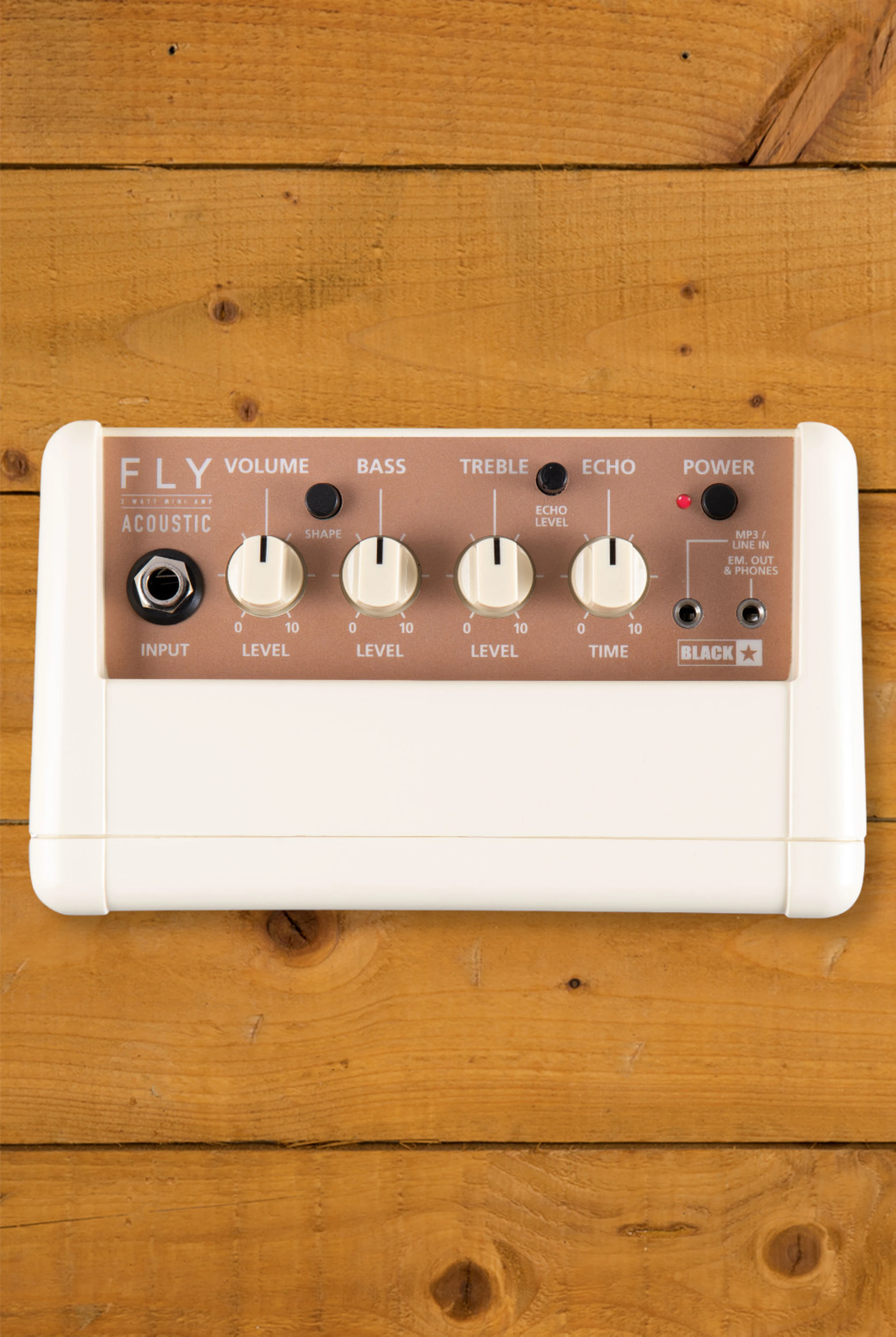 At its core, the FLY 3 Acoustic features two switchable EQ shapes, allowing players to choose between a flat response or a mid-cut with boosted lows and highs. The built-in echo effect adds depth and ambience, while the sealed cabinet design ensures optimal tonal response.