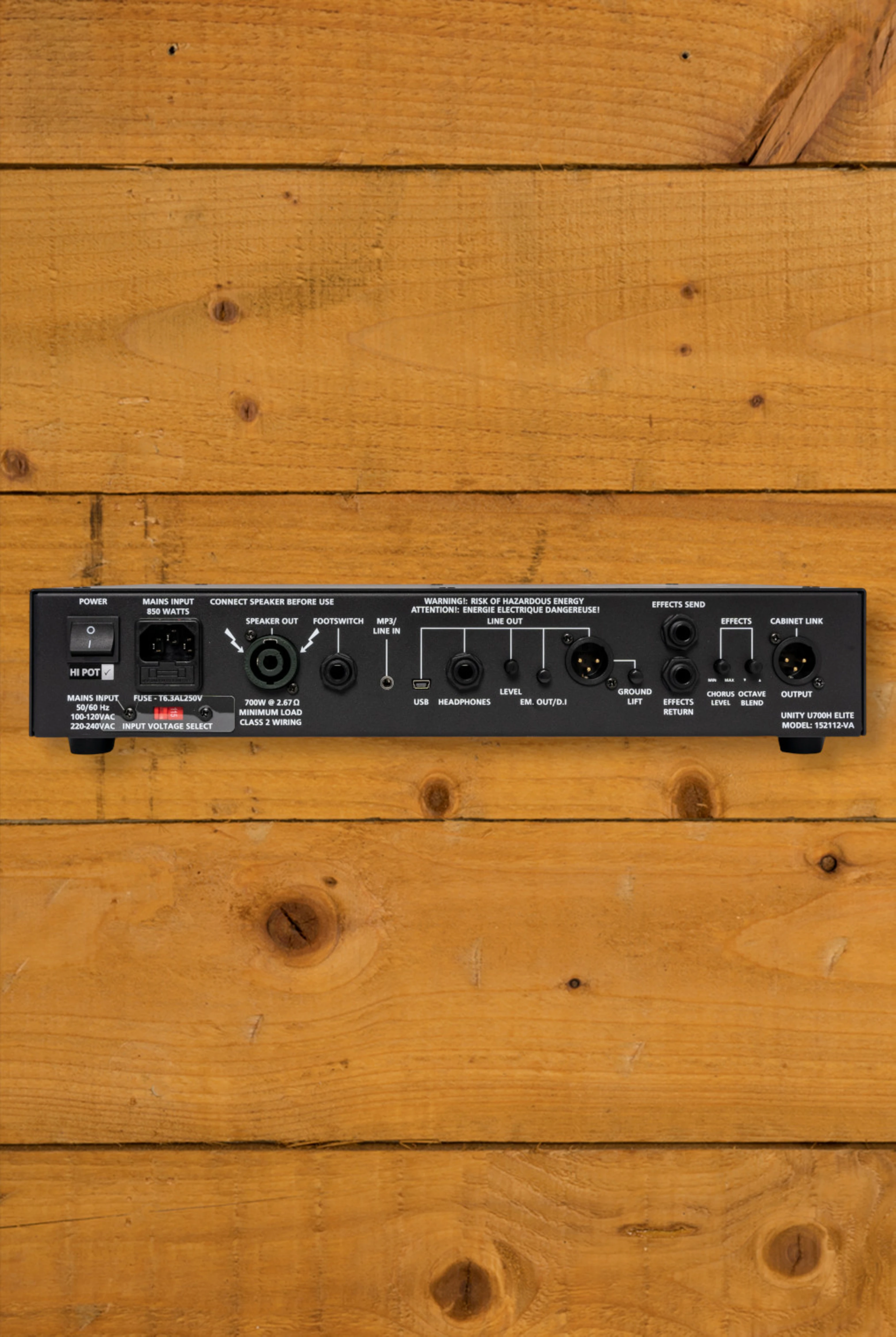 With its powerful output, versatile preamp voicings, and professional connectivity, the Unity Elite 700H is a perfect choice for bassists seeking a reliable, expressive amplifier that excels in both live and studio environments.