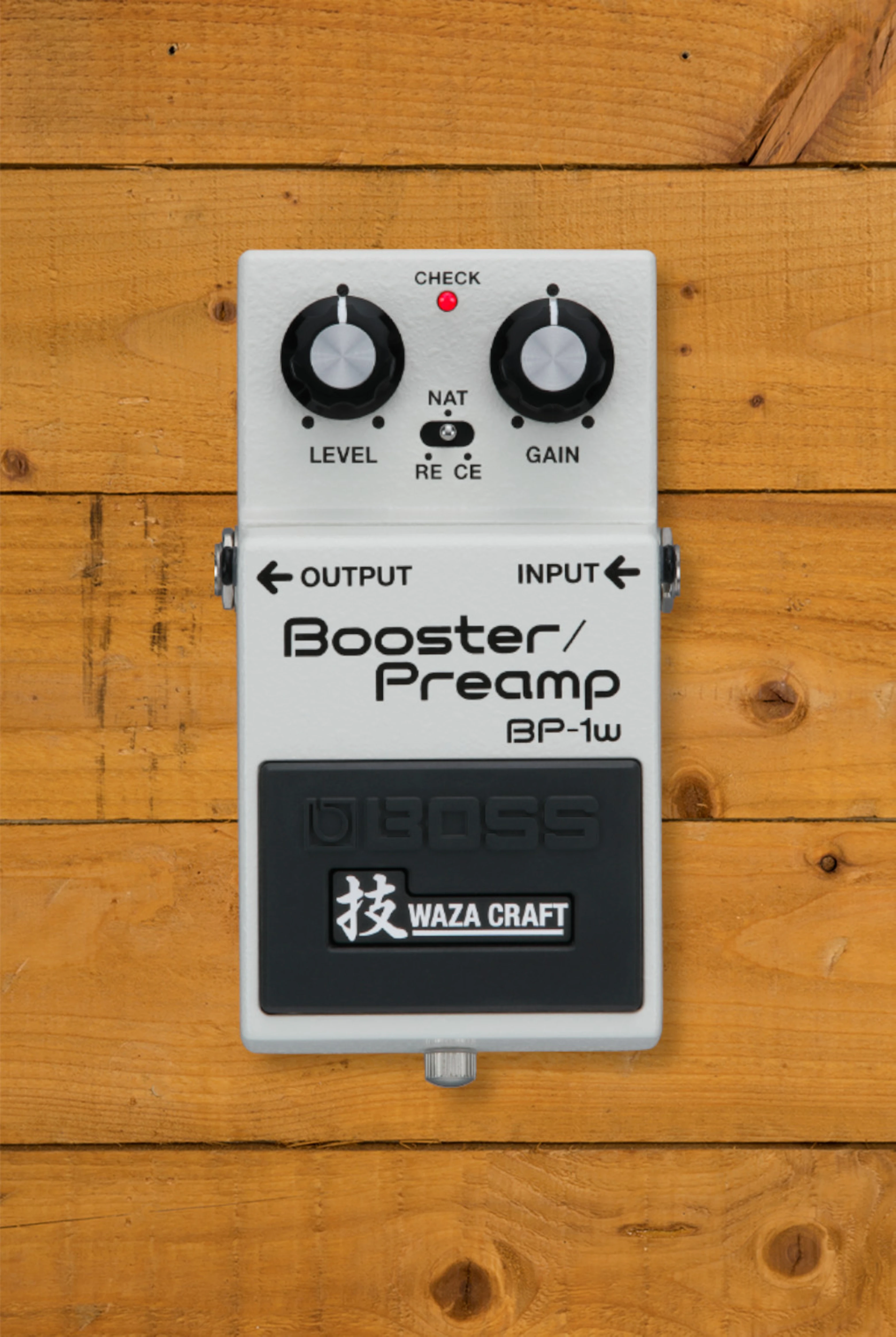 At its core, the BP-1W features three selectable modes inspired by legendary BOSS and Roland effects. The CE mode reproduces the bright, bell-like preamp tone of the CE-1 Chorus Ensemble, while the RE mode captures the fat, warm response of the RE-201 Space Echo. The NAT mode provides a natural clean boost with minimal colouration, making it ideal for pushing amps and pedals.