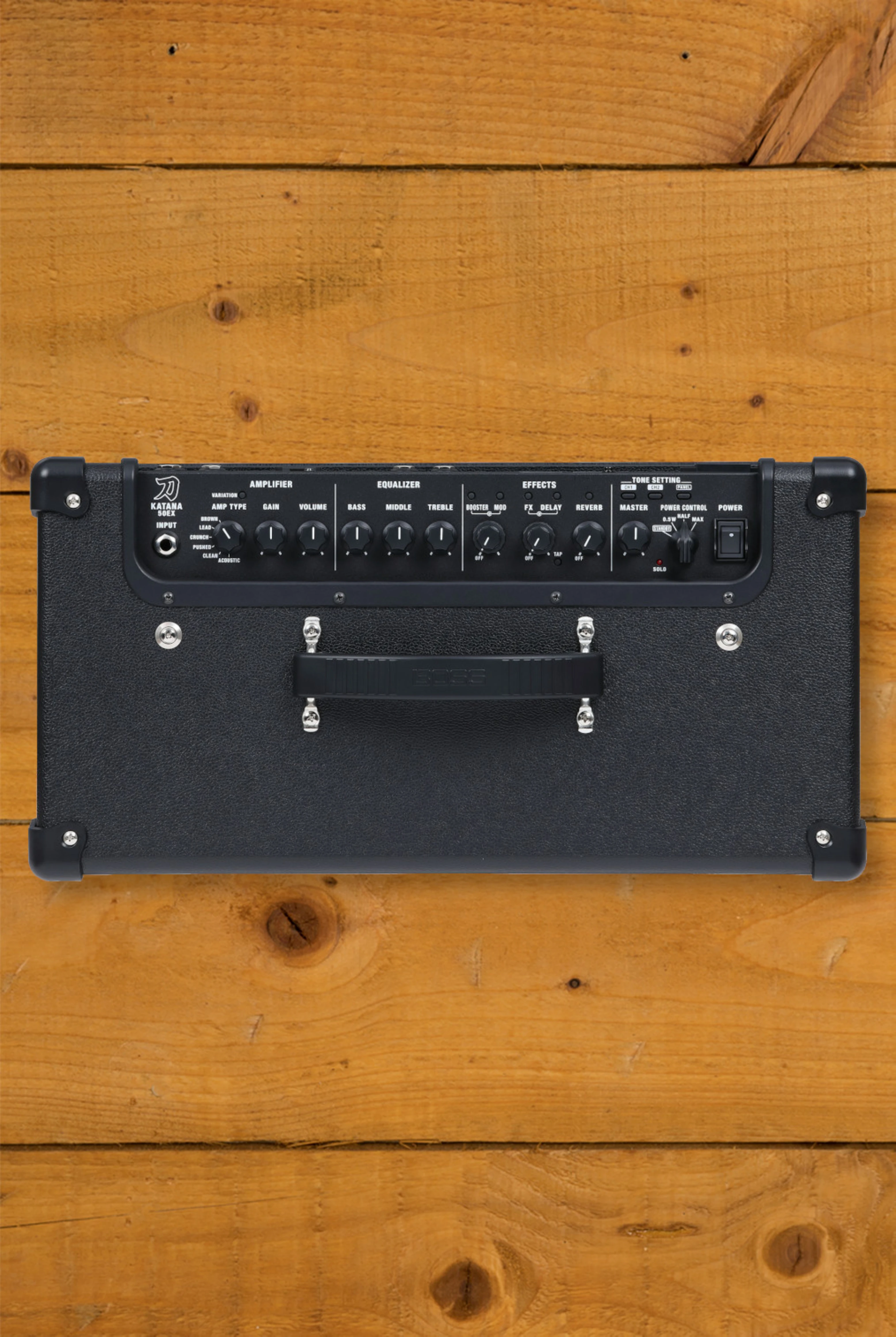 The Katana-50 EX Gen 3 is a 50-watt combo amplifier featuring a custom 12-inch speaker optimised for stage performance. It stands out with its distinctive grey and black matrix grill. This model offers six amp characters, including the newly developed Pushed type, each with a selectable variation, totalling twelve distinctive tones. Additionally, it features five independent effects sections - Booster, Mod, FX, Delay, and Reverb - each with three variations, providing a total of fifteen unique effects. Four Tone Setting memories allow for easy storage and recall of complete amp and effect setups.