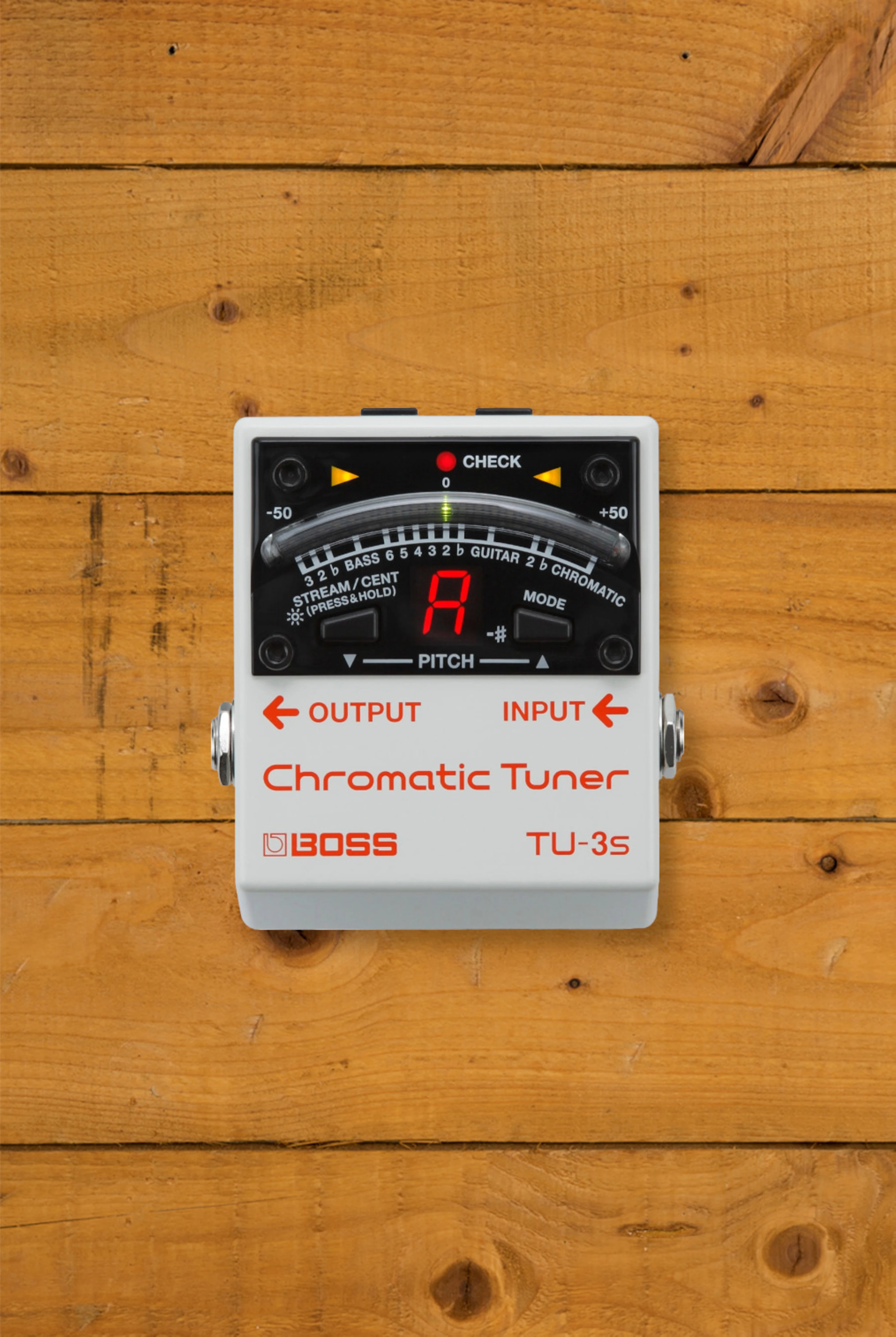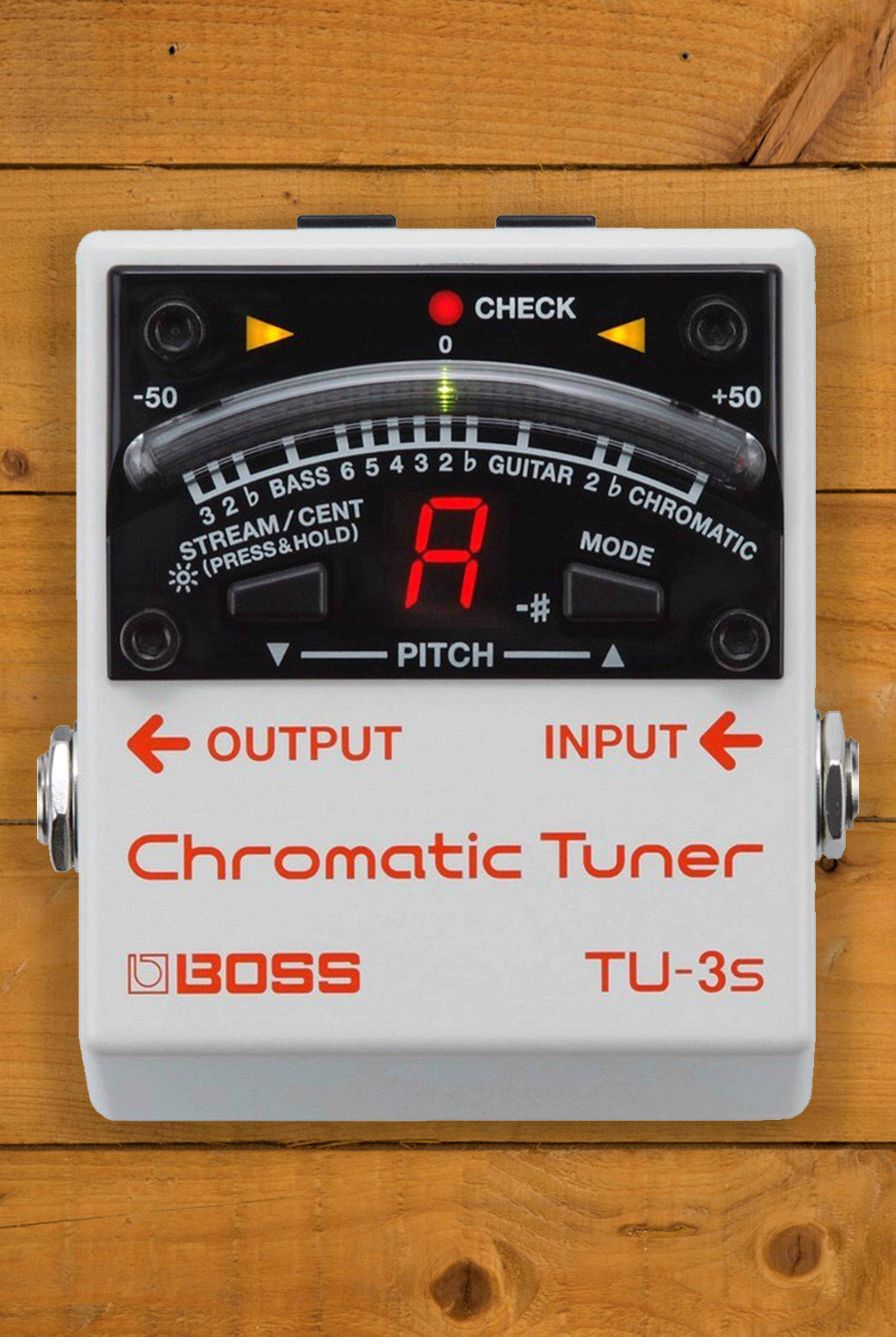 At its core, the TU-3S features the same industry-standard tuning performance as the TU-3, but in a smaller footprint without a footswitch. The always-on design ensures instant tuning access, while the 21-segment LED meter provides clear visual feedback in any lighting condition.