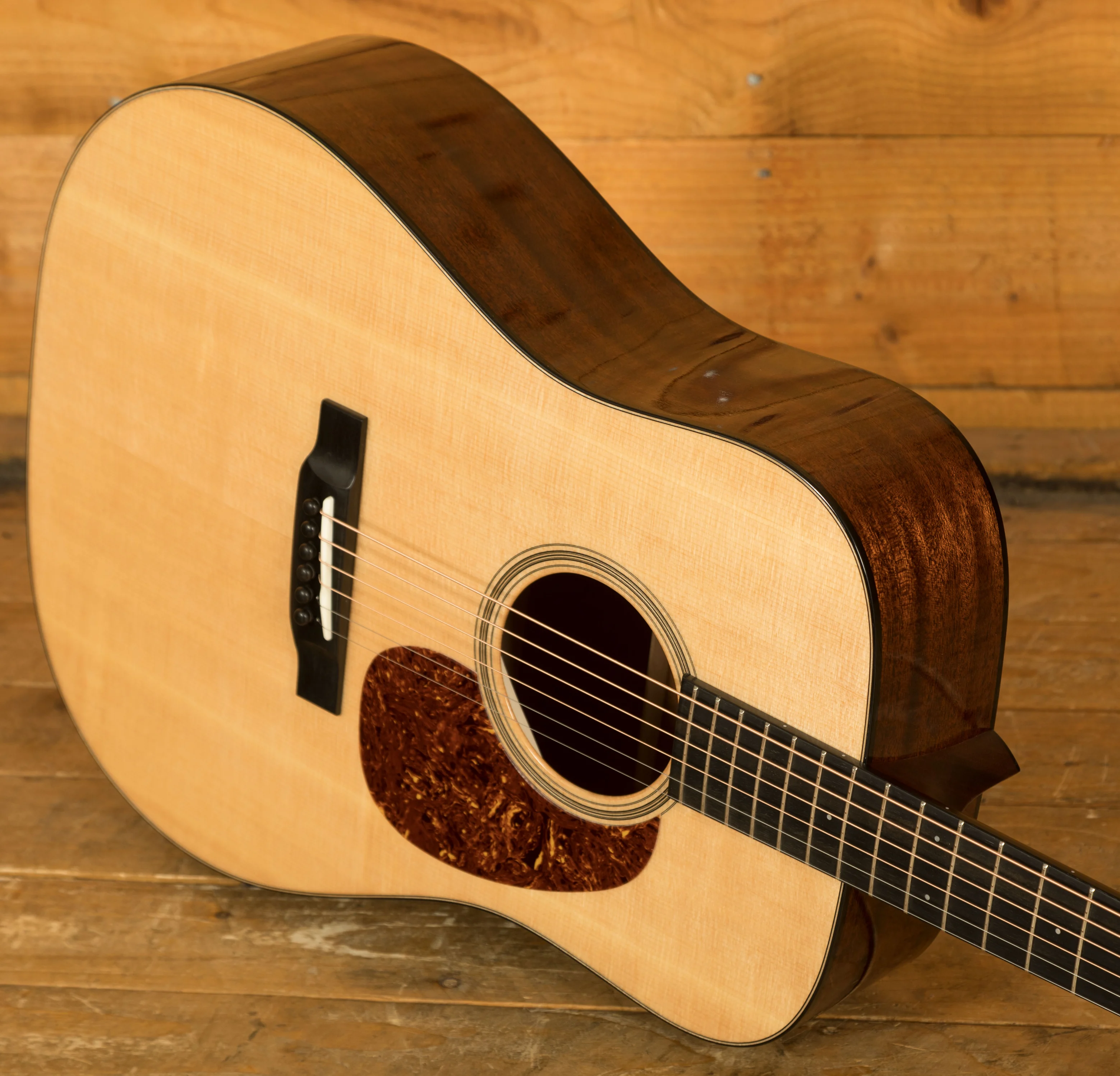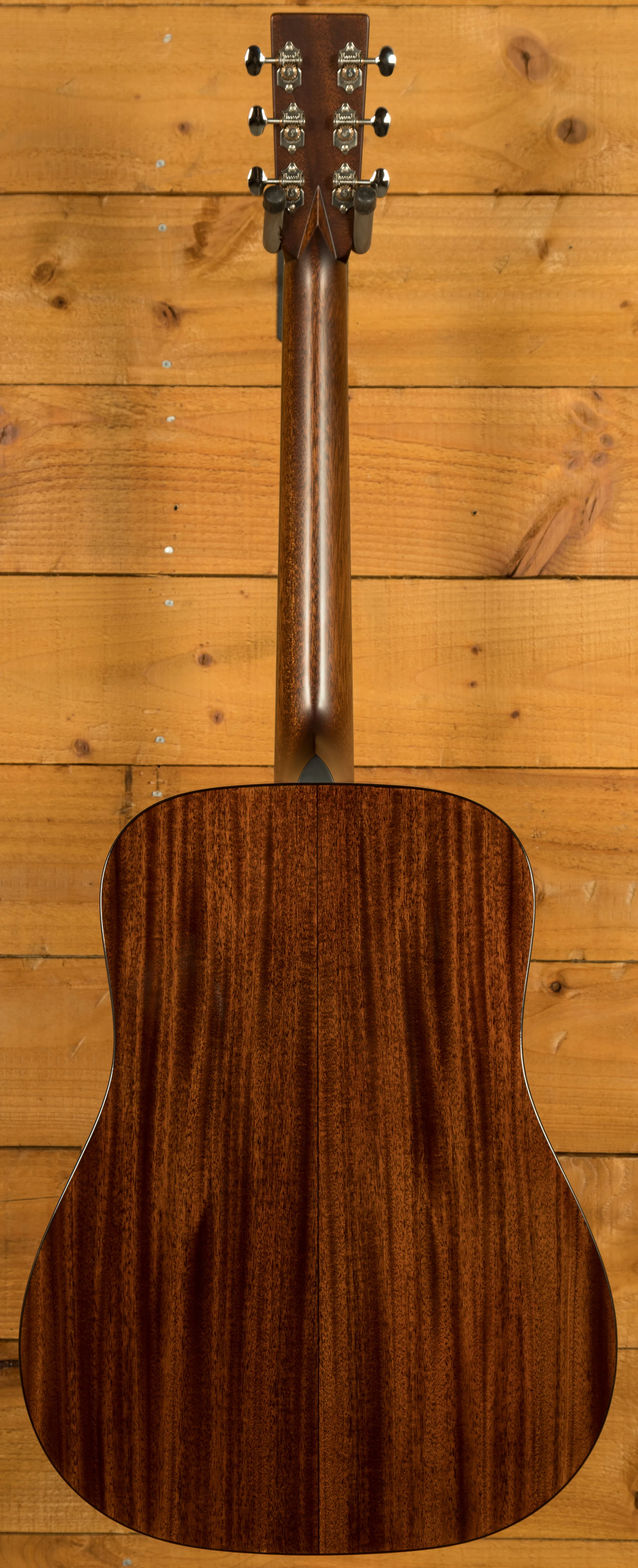 The back and sides are made from Mahogany, a classic choice for dreadnoughts. Mahogany delivers a warm, woody tone with strong midrange projection, making it an excellent option for both flatpicking and fingerstyle playing. The combination of Sitka Spruce and Mahogany results in a clear, articulate sound with plenty of volume and depth.