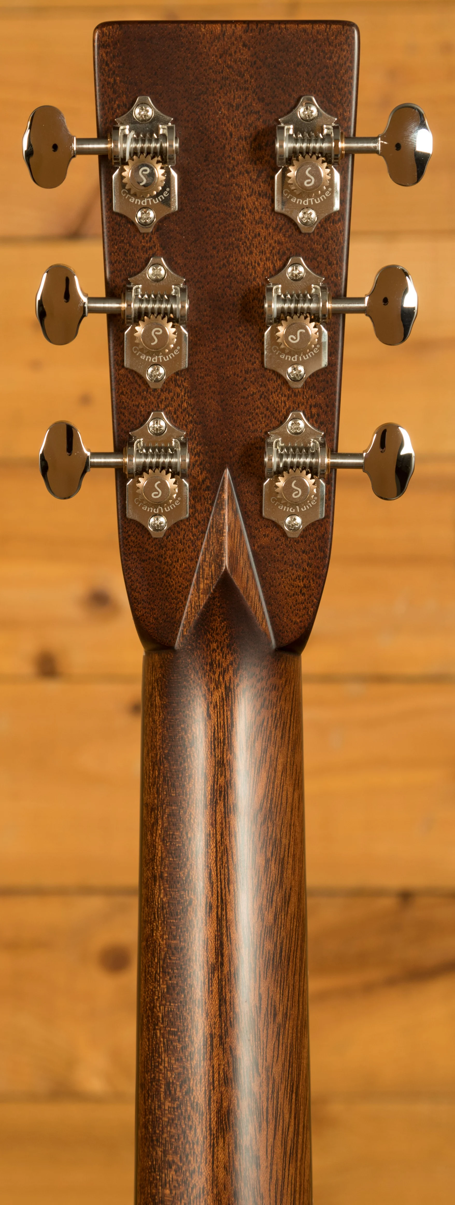 The guitar is equipped with Schaller Grand Tune Nickel tuners, known for their smooth operation and reliability. The Ebony bridge with Ebony pins enhances the guitar's sustain and overall resonance.