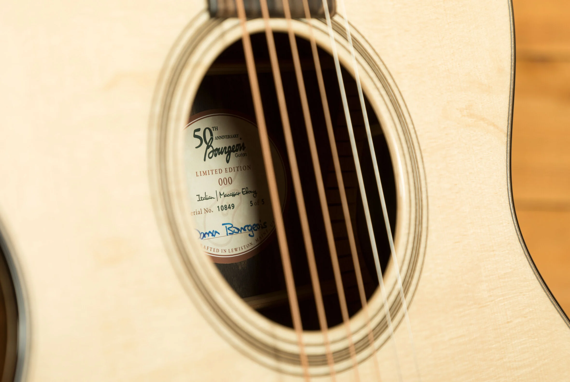 Celebrating Dana Bourgeois' remarkable 50th year of guitar building, we proudly present this exquisite limited edition Custom OOO 50th Anniversary Soloist. This exceptional OOO is number 5 of 5 worldwide. Bourgeois have made 25 50th Anniversary Soloists in total, across five of Dana's favourite body shapes.