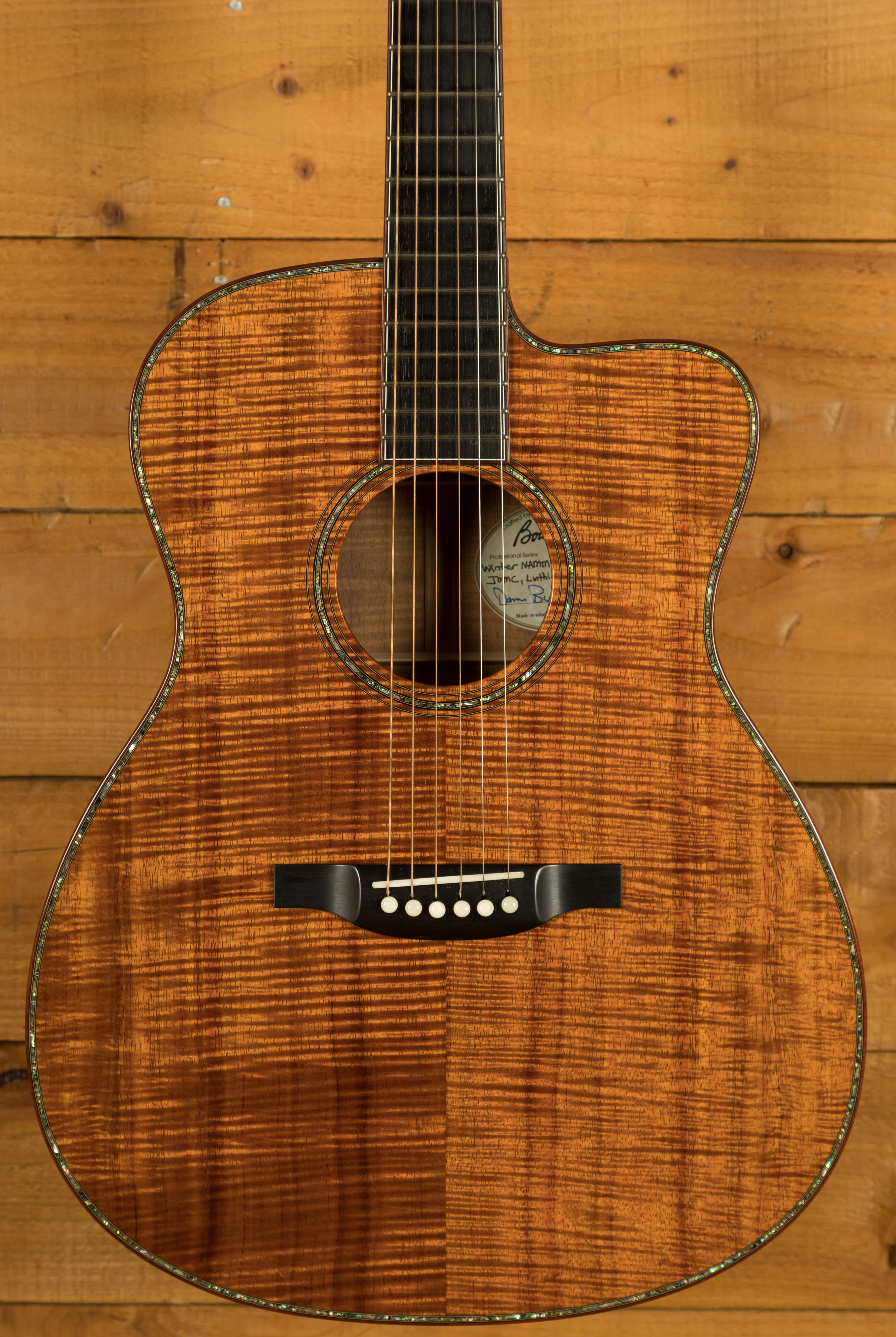 1 of 13 Very Special Guitars Made to Showcase at NAMM 2002 - Extremely Figured Koa - Tap-Tuned & Signed By Dana Bourgeois