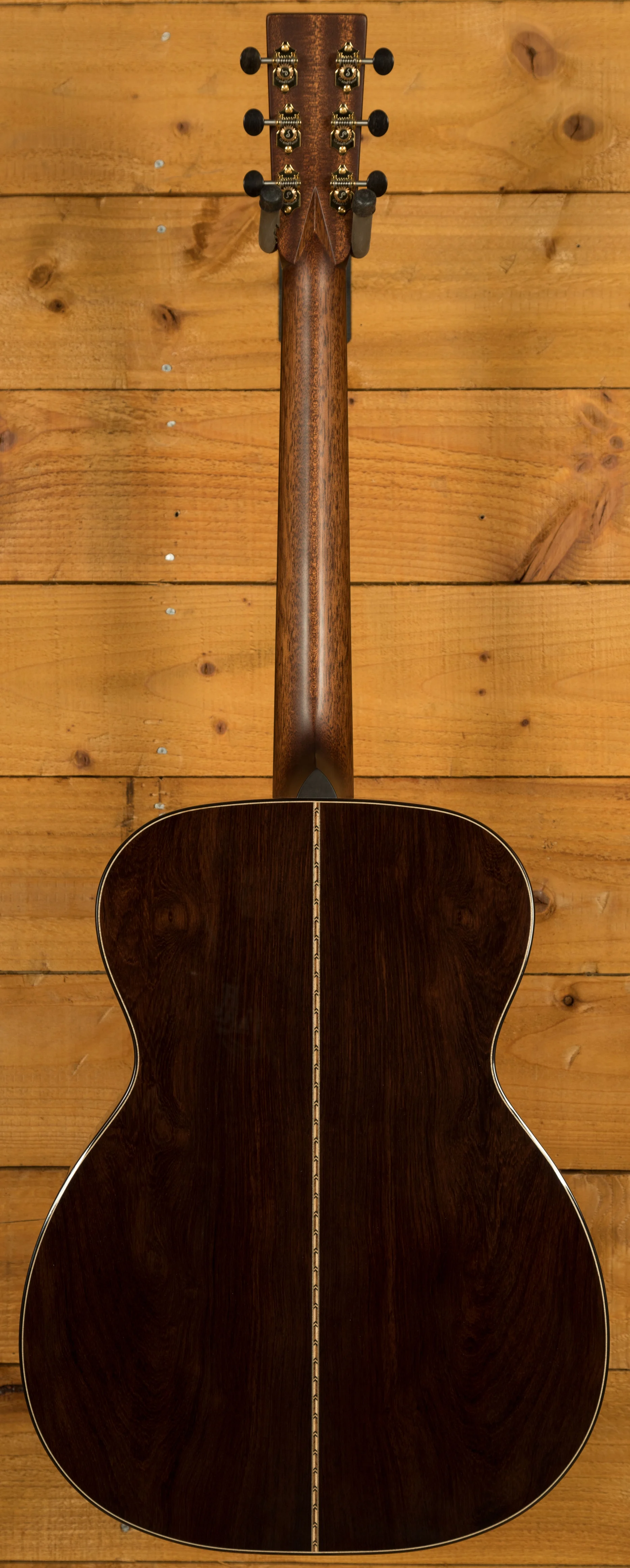 As the third largest 14-fret body size in the Bourgeois line, the OM distinguishes itself from the 000 by its longer 25.5" scale neck. This popular body style appeals to both fingerstyle players and flatpickers due to its balanced tonal characteristics, presence, power, and comfortable playability. The OM experienced a resurgence in popularity starting in the mid-1980s, partly due to the efforts of Schoenberg Guitars, co-founded by Dana Bourgeois, in collaboration with C.F. Martin to reintroduce production models.