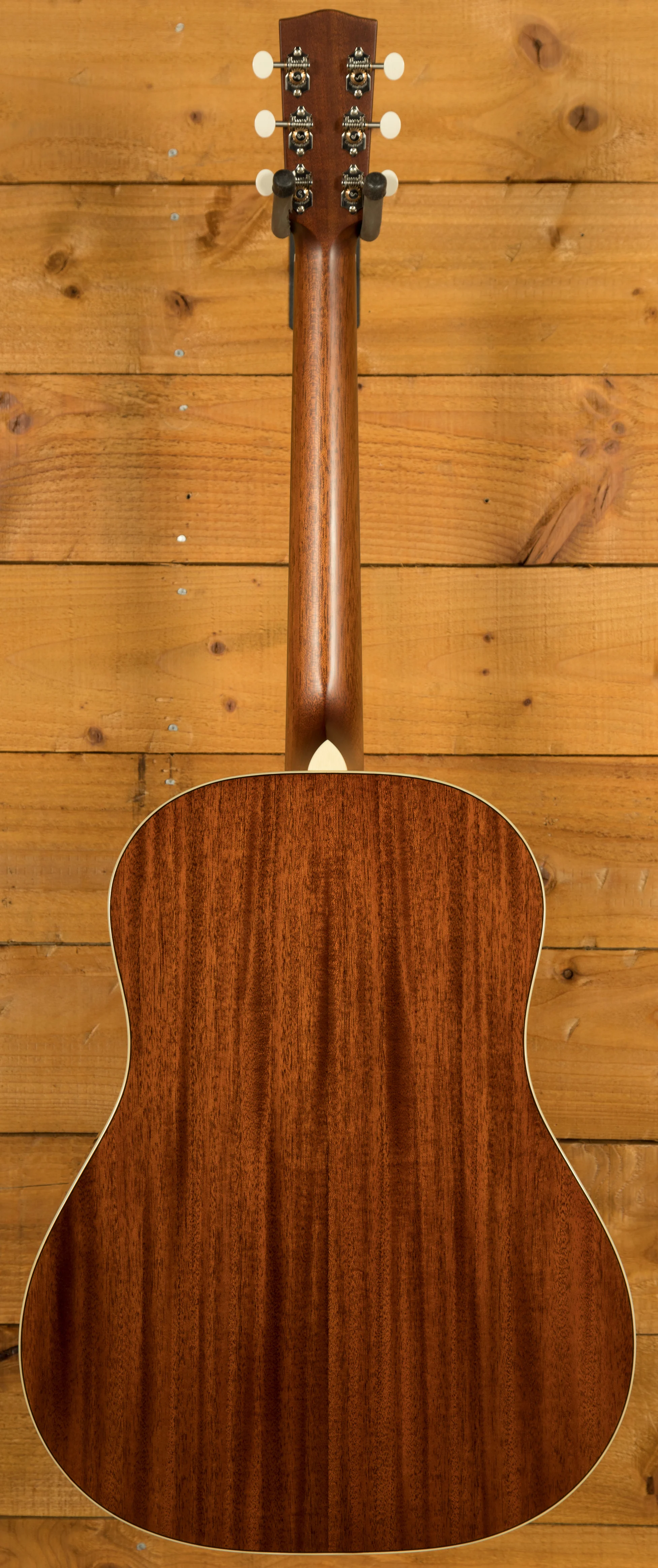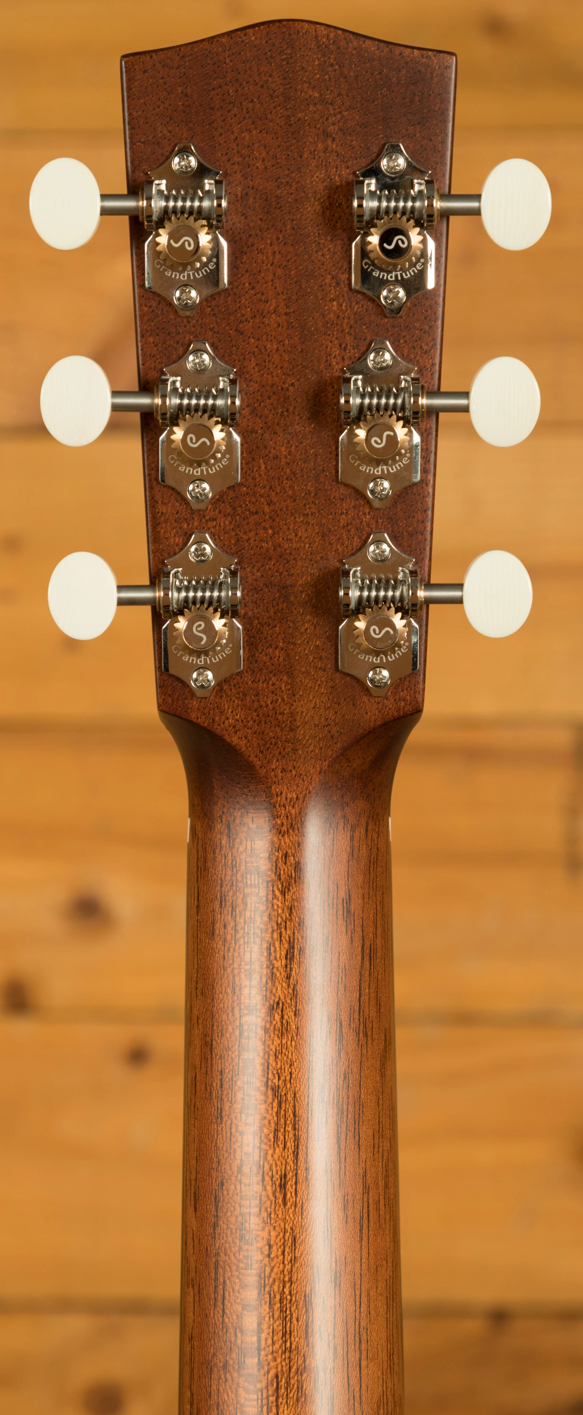 The guitar features a torrefied Sitka spruce soundboard, a process that provides a warm, aged tone from the outset. This soundboard offers a dynamic response and clarity that develops further over time. The resulting sound is versatile, accommodating strumming, fingerpicking, and various techniques in between. The pairing of this soundboard with mahogany back and sides contributes to a balanced and adaptable voice, suitable for both delicate fingerpicking and more forceful strumming.