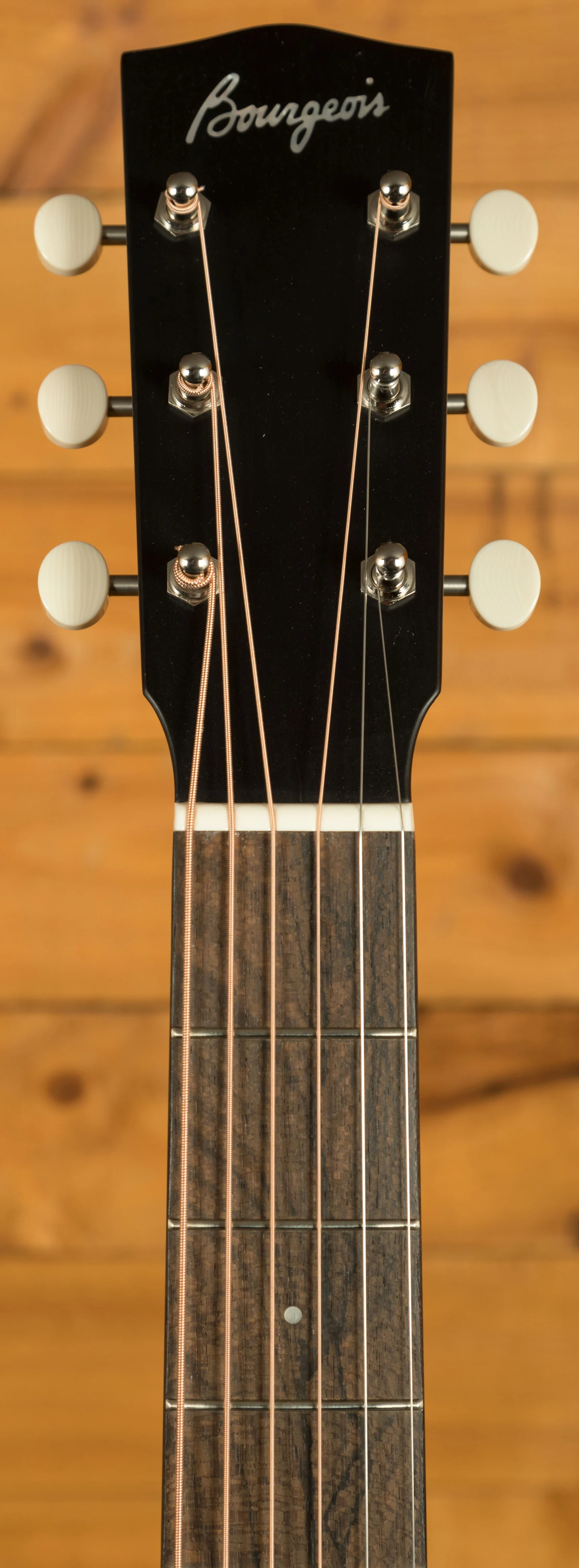 Comfort and performance are central to the design of the Standard. It features a 14-fret mahogany neck, topped with a Ziricote fingerboard and bridge, all finished with a high-gloss. The inclusion of Adirondack spruce bracing and Bourgeois' meticulous attention to detail ensures a powerful and responsive sound that matures over time. Vintage-inspired functionality is provided by Schaller Grand Tune nickel tuners. The nut width is 1 23/32 inches and is made of bone, while the saddle width is 2.2 inches and is also bone.