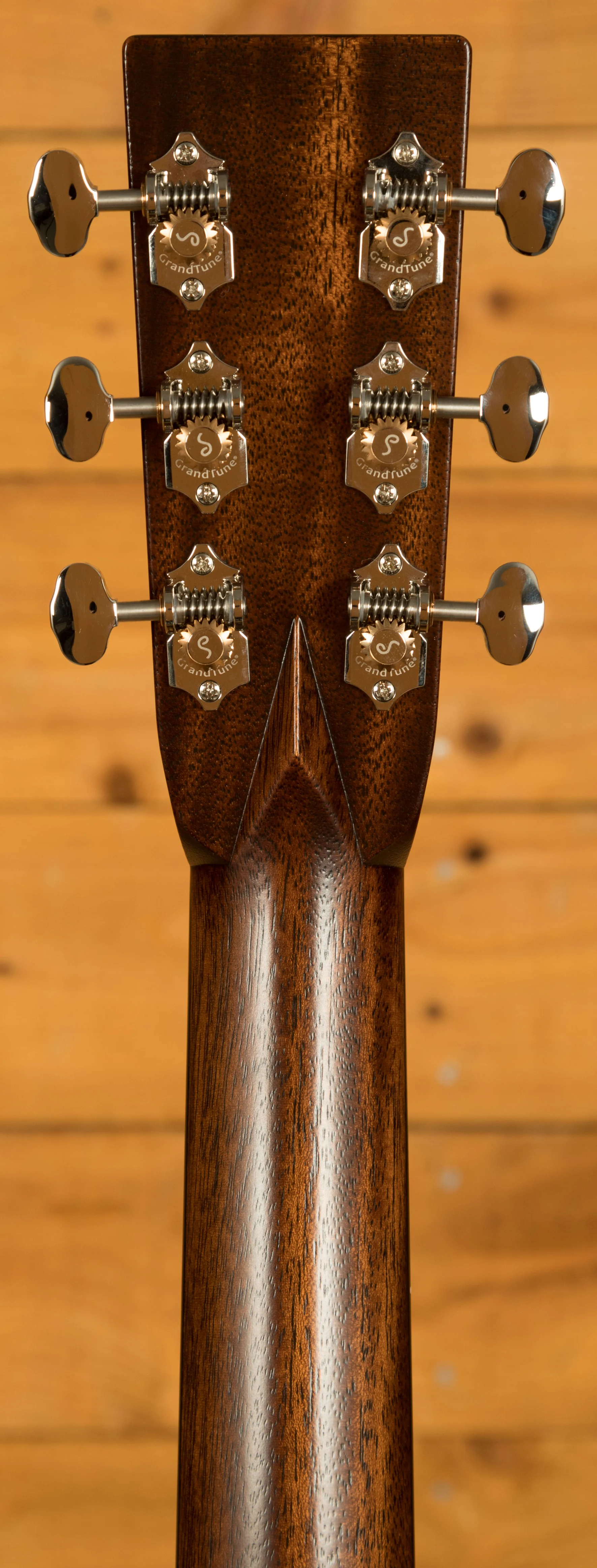 With a name suggested by Ricky Skaggs in the late 90s, the Country Boy features a AAAA grade Sitka Spruce top paired with premium Mahogany back and sides. This classic wood combination creates a versatile tonal platform that's agreeable with any playing style, from intricate fingerpicking to robust strumming. It boasts a 25.5" long scale length and a comfortable 1 3/4" nut width with a 2 5/16" bridge width, making it responsive for both delicate and powerful playing. The elegant Ebony fretboard and bridge are complemented by classic Mother of Pearl Vintage Style Dots for the inlays.