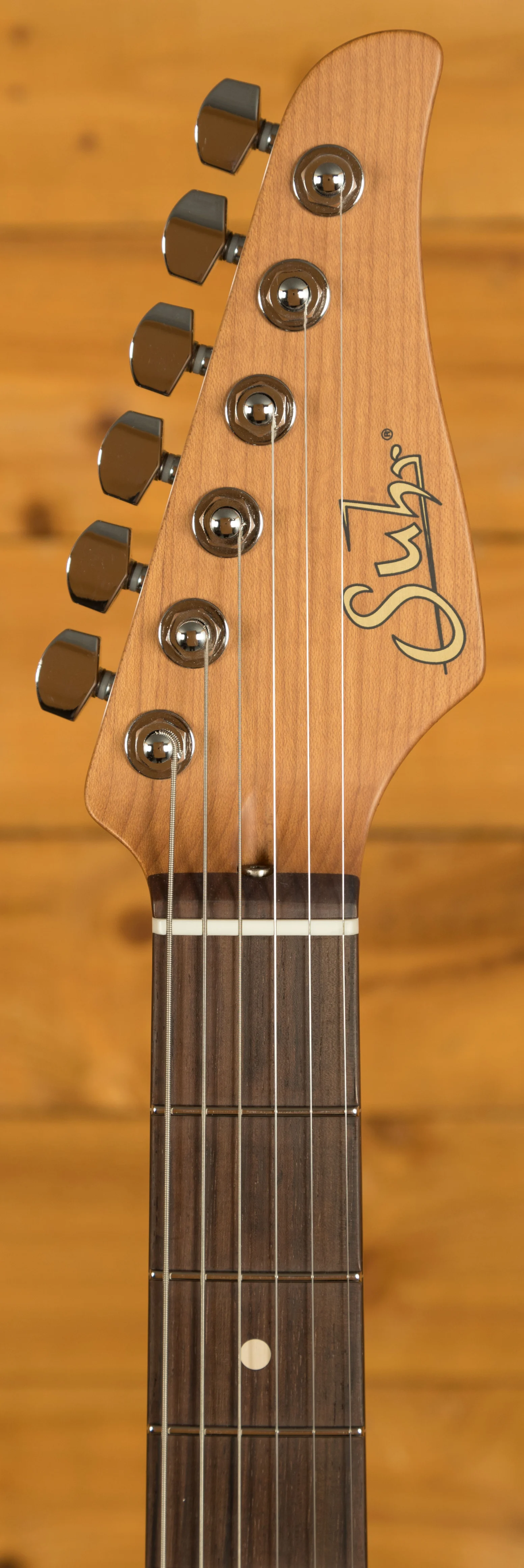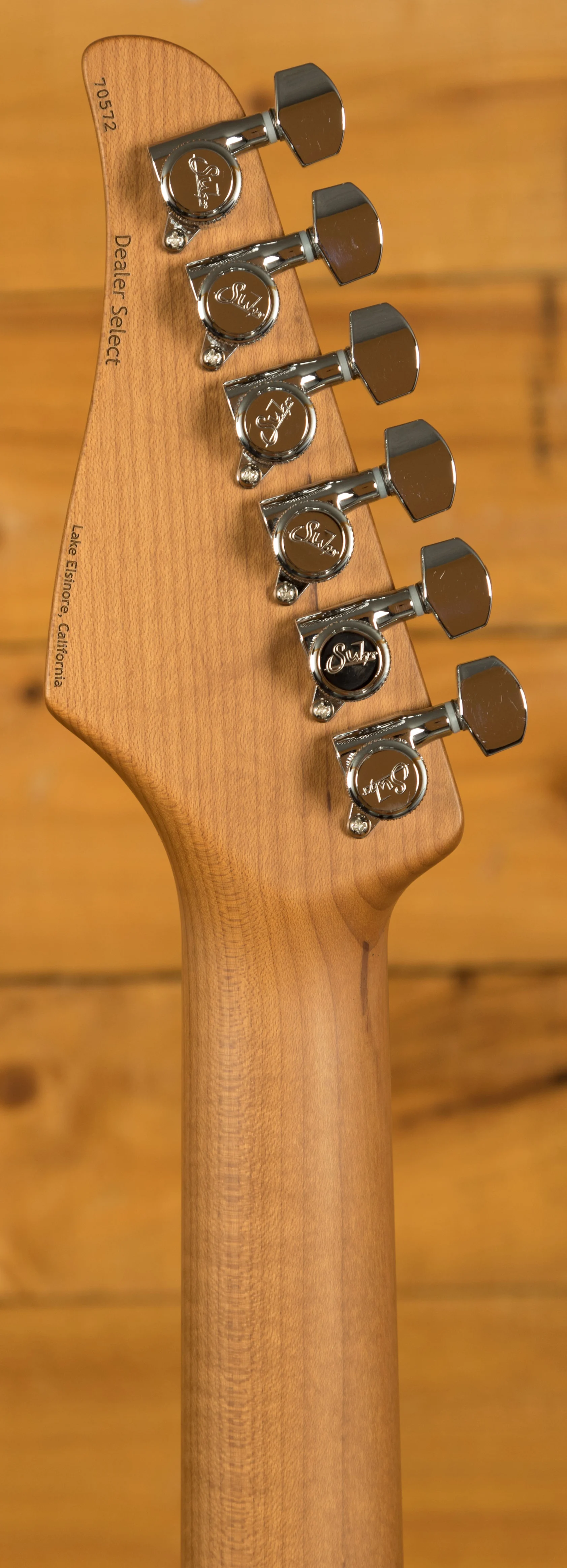 The Roasted Maple neck offers a tighter, snappier response and is really smooth and fluid underhand. With an even C medium profile, rolled frets, a compound 9''-12'' radius and a Rosewood fingerboard this a substantial but real comfortable guitar. It has the best possible string action, playability and intonation.