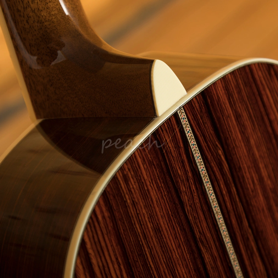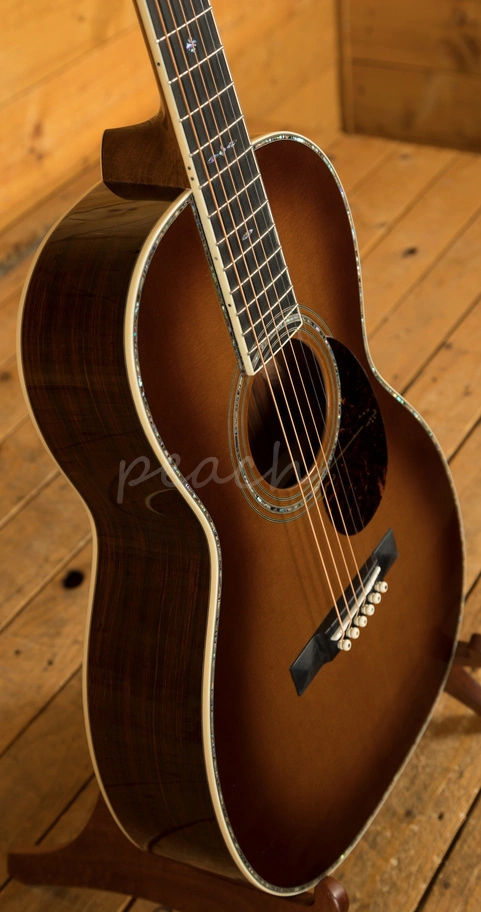 With a super sleek Sitka Spruce top you get a really dynamic and responsive tone. Cocobolo back and sides offer an incredible aesthetic and it responds really nicely to a players touch, offering some real sweet overtones.