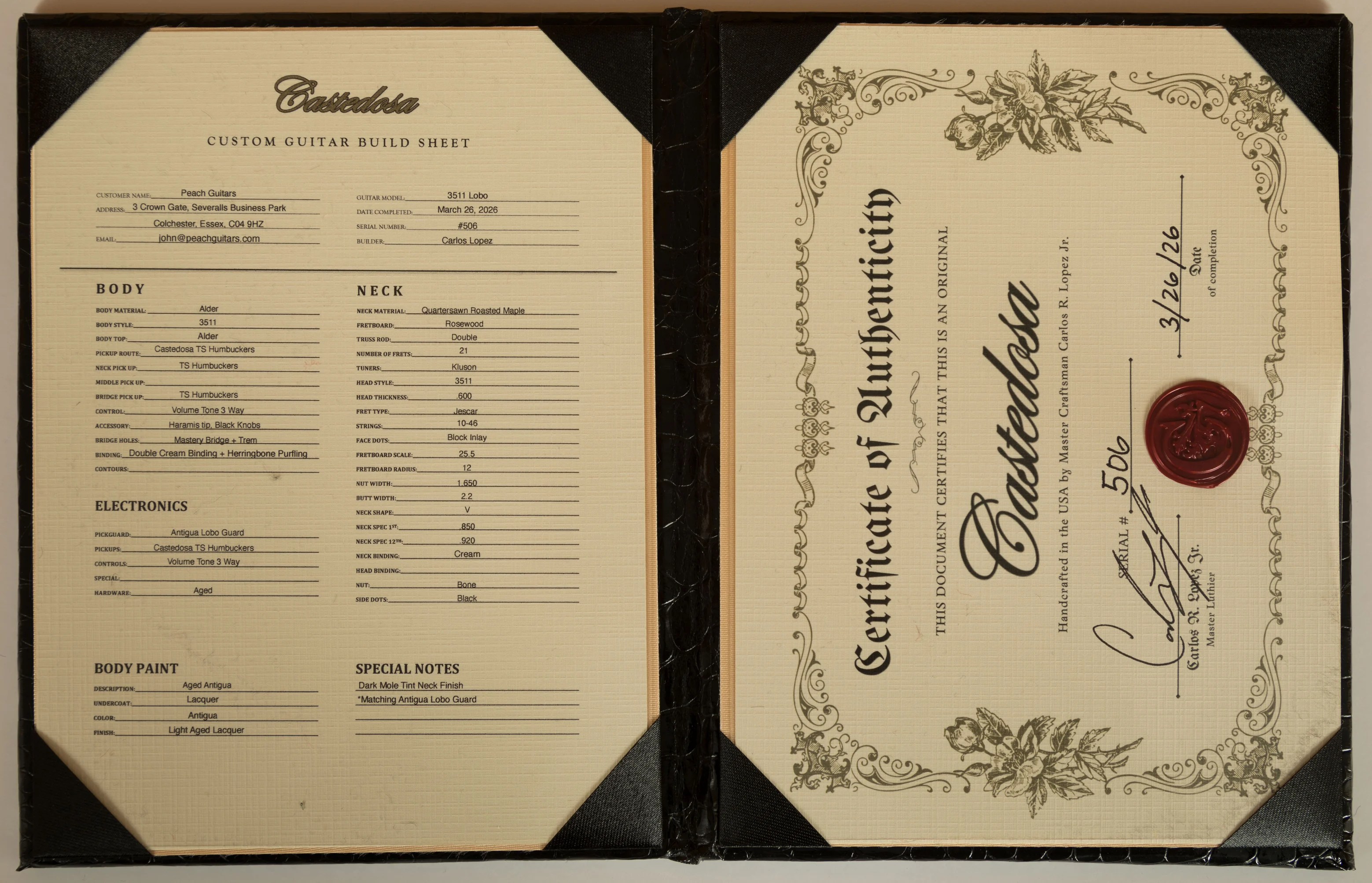 Introducing the Castedosa 3511 Lobo Semi-Hollow, a pinnacle in high-end thinline-style guitars crafted by the renowned Carlos Lopez, founder, and builder of Castedosa Guitars. With nearly two decades of expertise, Carlos has left an indelible mark on the guitar-making industry, having served as a Master Builder with the Fender Custom Shop and collaborated with iconic artists such as Ariel Posen, Eric Clapton, and Jeff Beck.