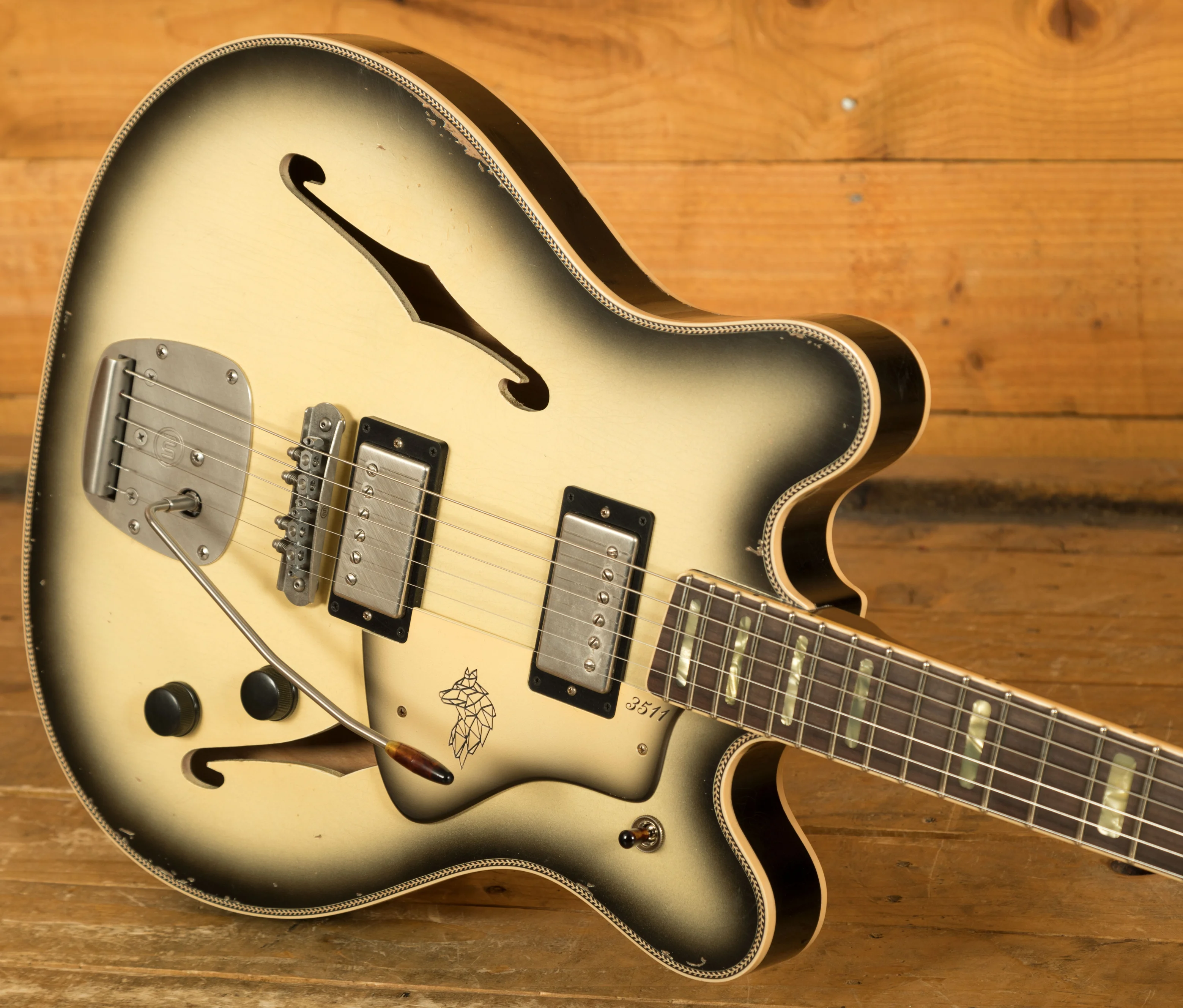 Delivering a powerful sonic experience, the 3511 Lobo Semi-Hollow is equipped with a Castedosa Hand Wound TS Humbuckers. Control is at your fingertips with Volume and Tone controls, a 3-Way pickup selector, and Aged Hardware. Experience the meticulous craftsmanship and attention to detail that sets the Castedosa 3511 Lobo Semi-Hollow apart, delivering exceptional tone and playability for musicians who demand the best.