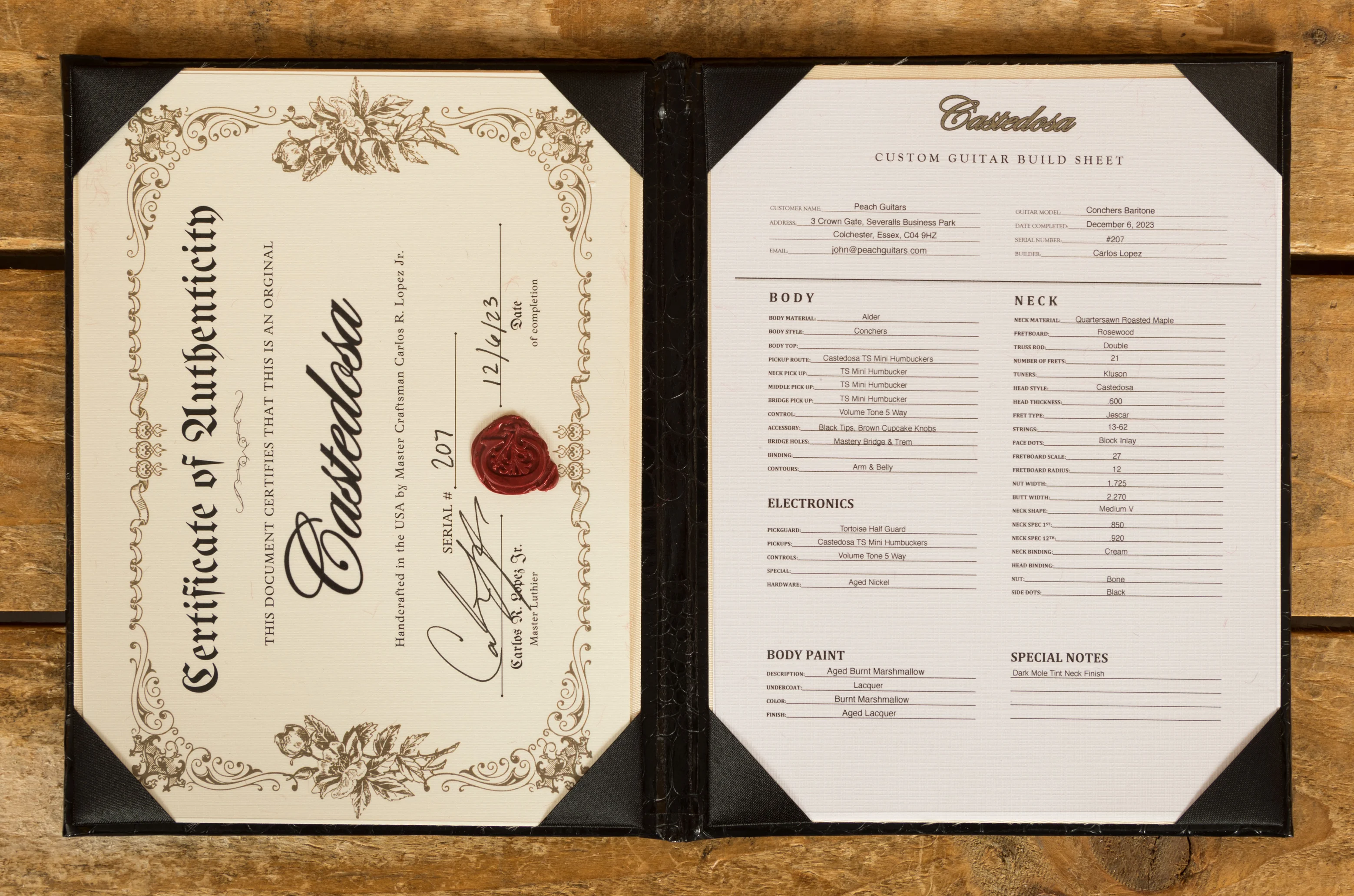 Named in honour of Carlos' late grandfather, whose profound influence shaped his inspiration and dedication, the Conchers Baritone stands as a testament to the rich legacy behind Castedosa Guitars. The meticulous attention to detail is evident in every aspect of this instrument.