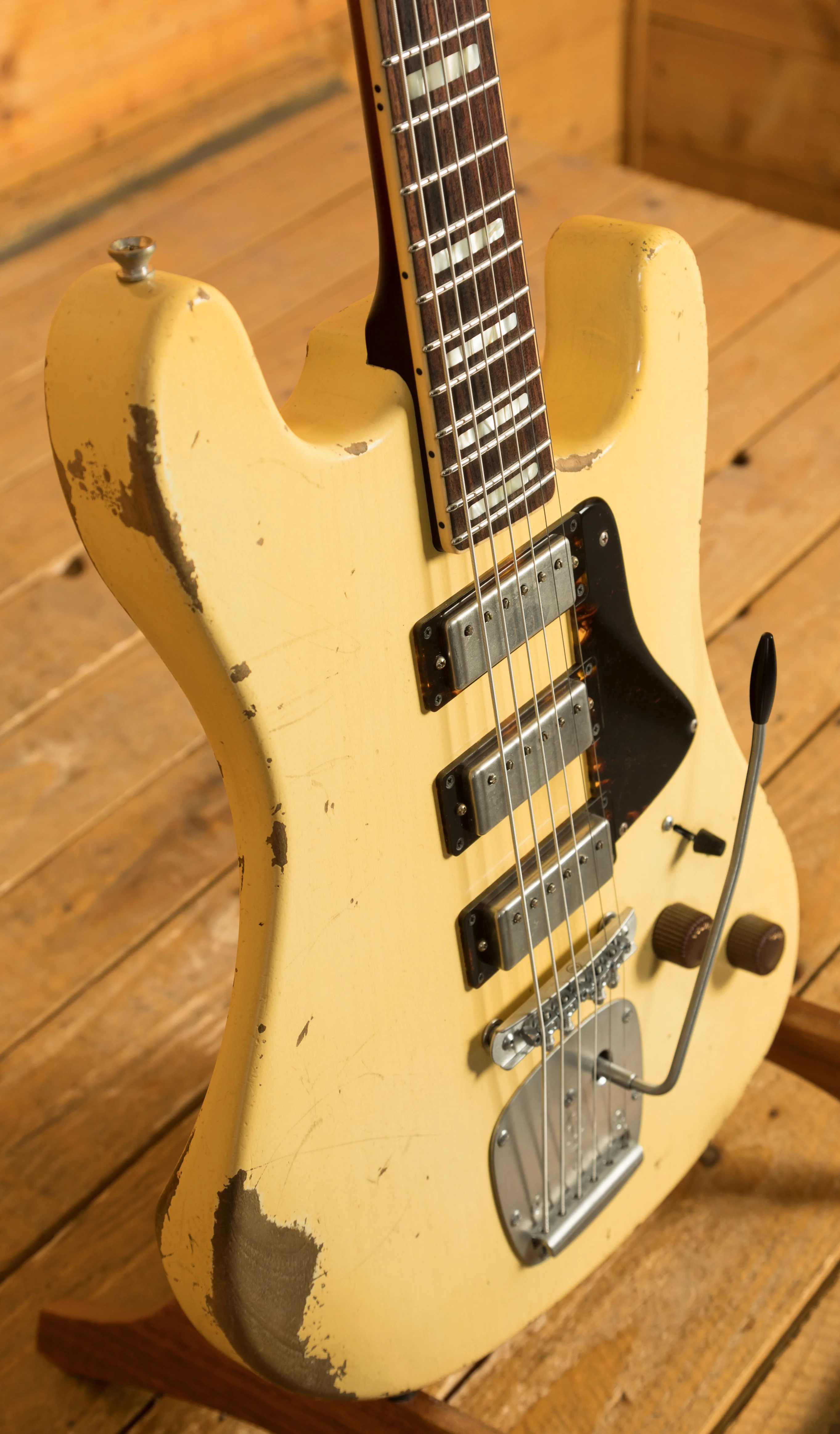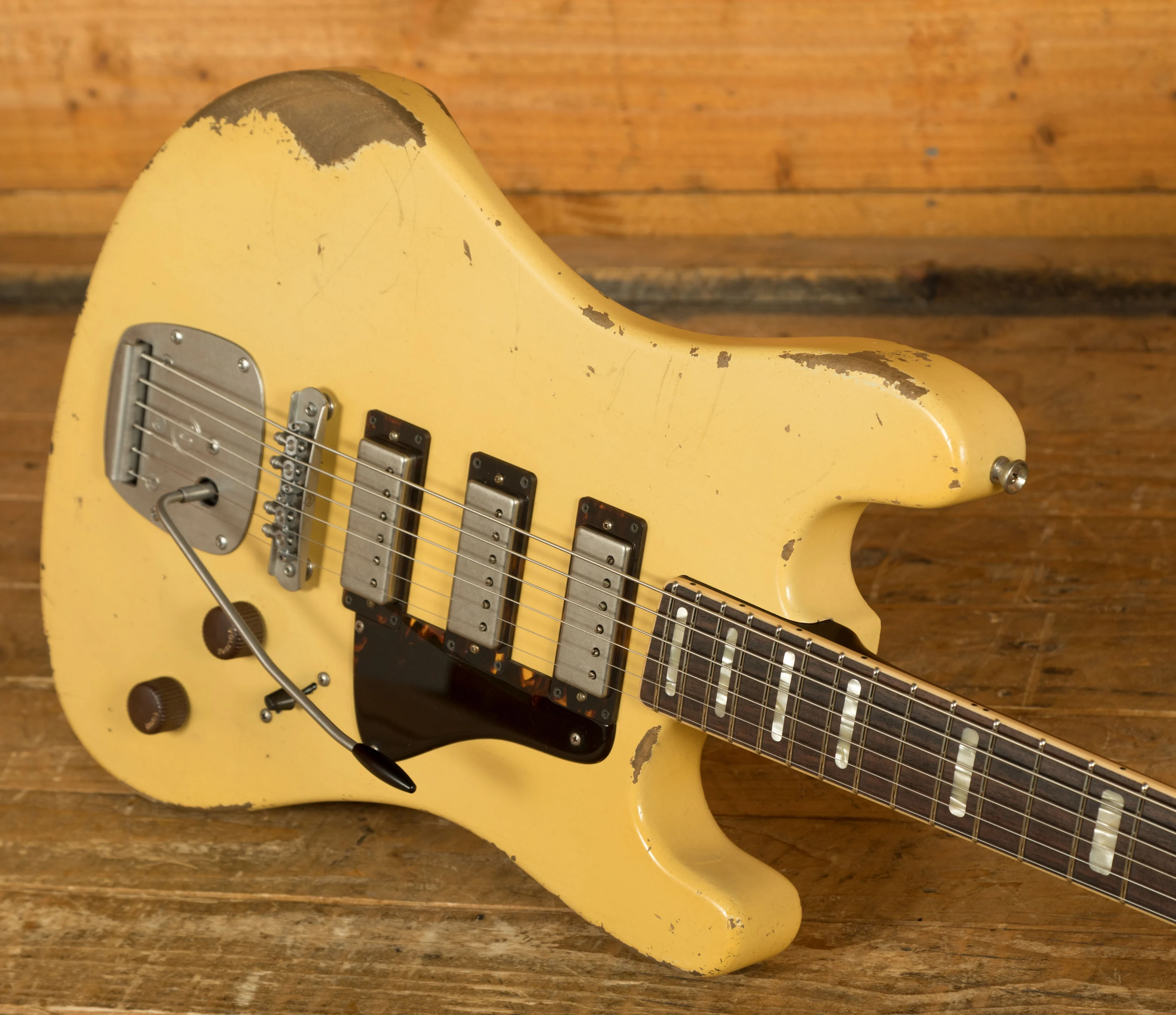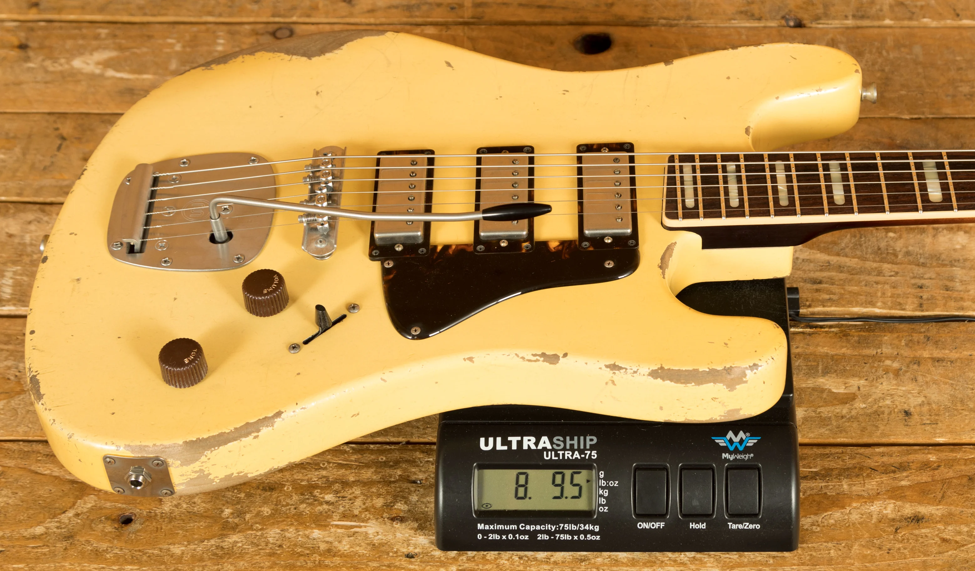 Crafted with precision, the Conchers Baritone features an Alder body with arm and body contours and finished in Aged Burnt Marshmallow Lacquer. This masterpiece boasts a Mastery bridge and tremolo whilst the Tortoise Half pickgaurd adds the final touch to its aesthetic.
