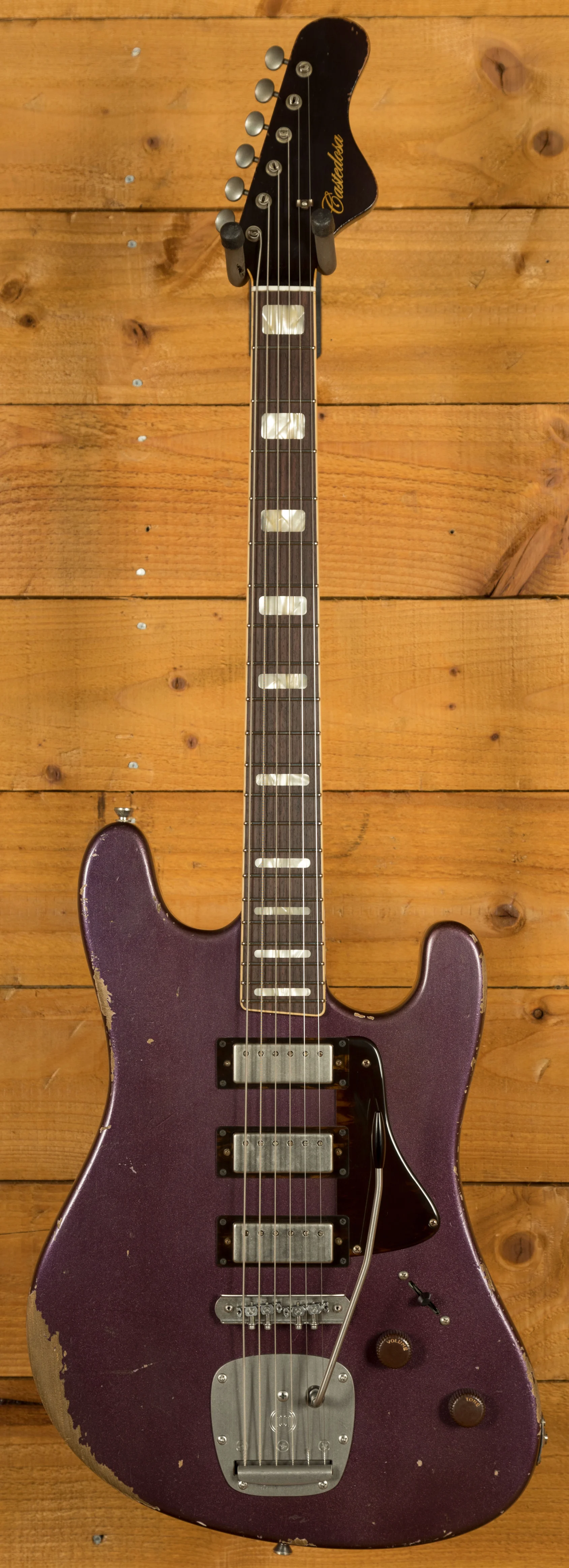 Crafted with precision, the Conchers Baritone features an Alder body with arm and body contours and finished in Aged Purple Metallic Lacquer. This masterpiece boasts a Mastery bridge and tremolo whilst the Tortoise Half pickgaurd adds the final touch to its aesthetic.