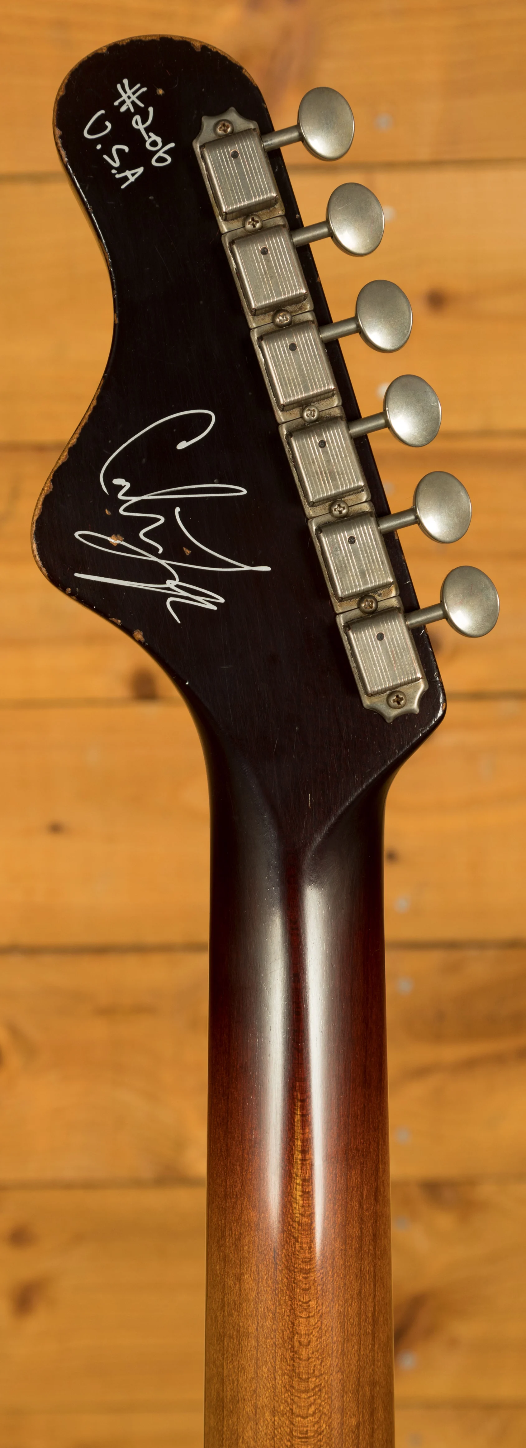 The neck is constructed from Quarter Sawn Roasted Maple, boasting a "Medium V" profile with a Dark Mole Tint finish and a Rosewood Fretboard. Additional features include Kluson Tuners, 21 Jescar Frets, a 27" Scale Length, 12" Radius, Nut Width of 1.725, Cream Neck Binding, Block inlays, and a Bone Nut.