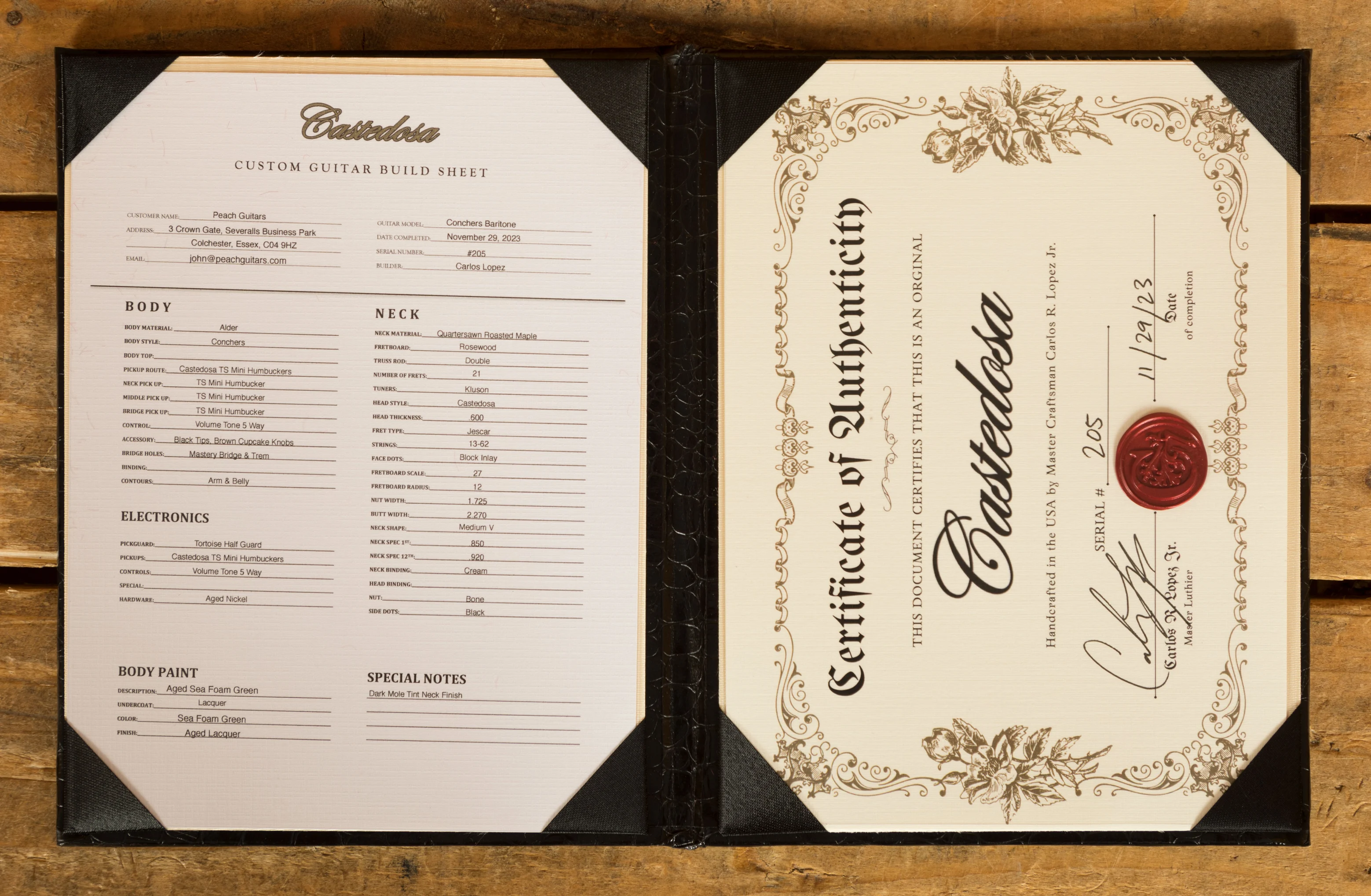 Named in honour of Carlos' late grandfather, whose profound influence shaped his inspiration and dedication, the Conchers Baritone stands as a testament to the rich legacy behind Castedosa Guitars. The meticulous attention to detail is evident in every aspect of this instrument.