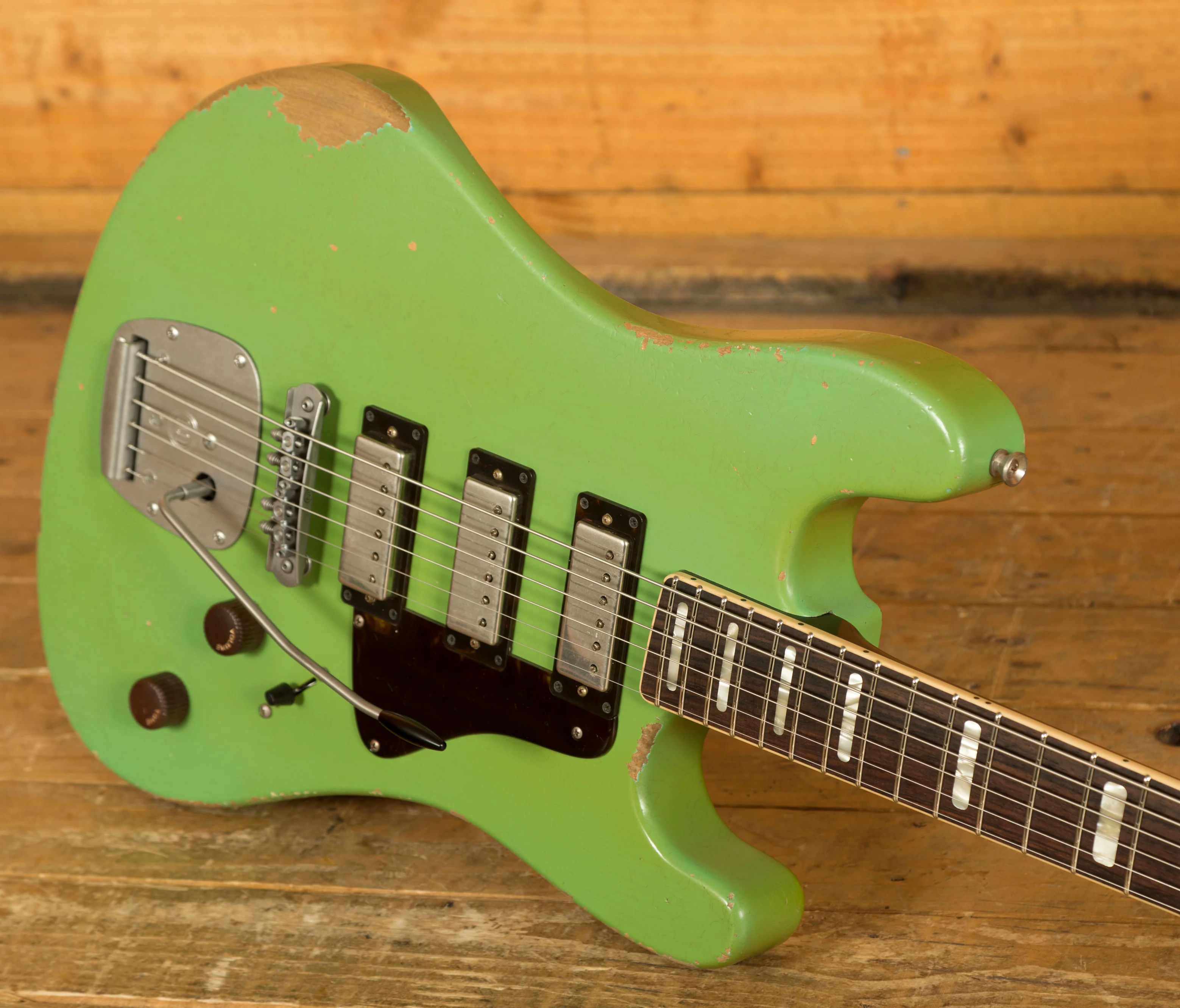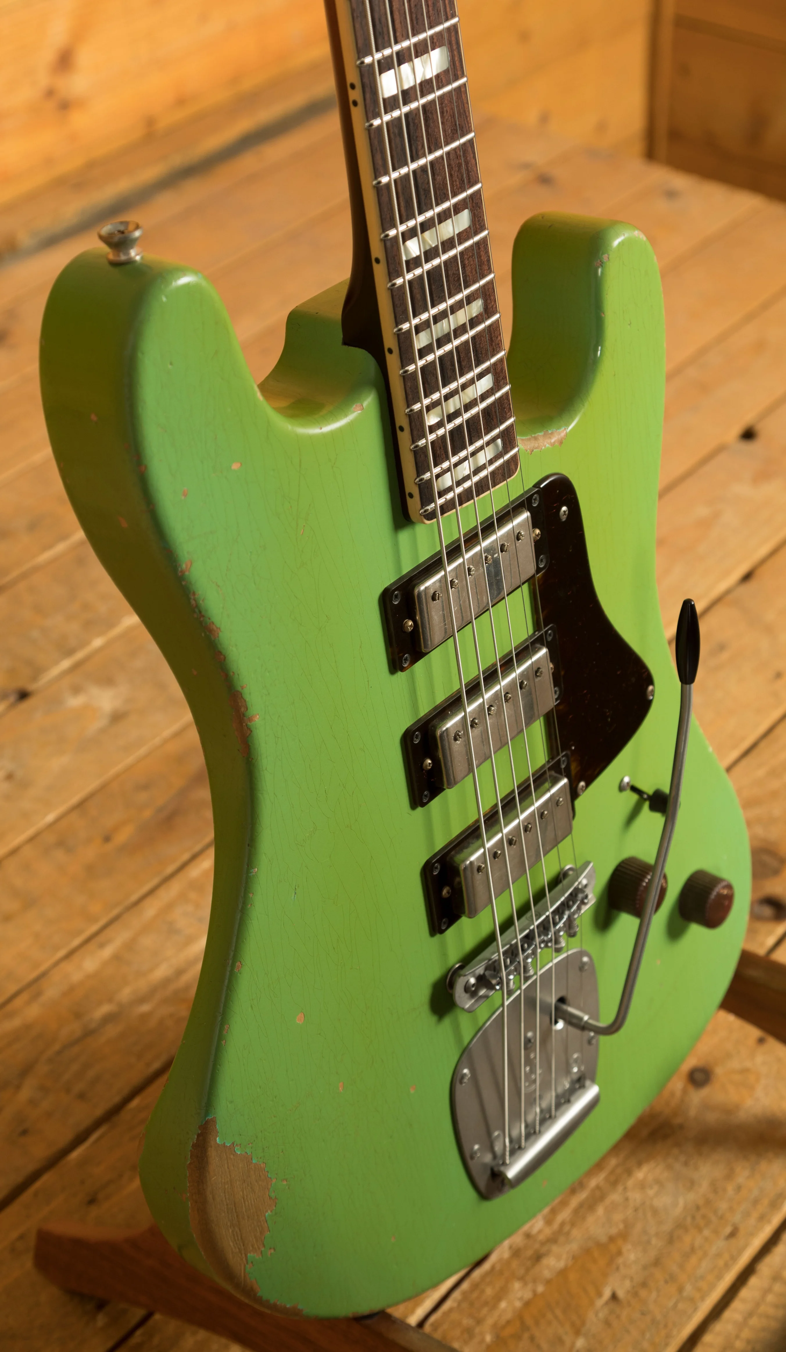 Crafted with precision, the Conchers Baritone features an Alder body with arm and body contours and finished in Aged Sea Foam Green Lacquer. This masterpiece boasts a Mastery bridge and tremolo whilst the Tortoise Half pickgaurd adds the final touch to its aesthetic.