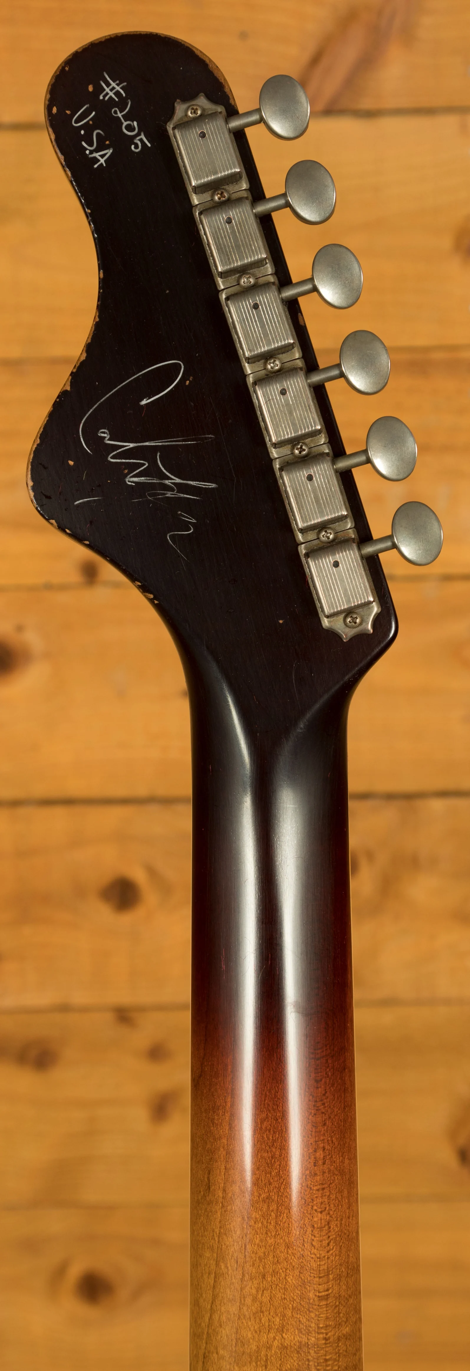 The neck is constructed from Quarter Sawn Roasted Maple, boasting a "Medium V" profile with a Dark Mole Tint finish and a Rosewood Fretboard. Additional features include Kluson Tuners, 21 Jescar Frets, a 27" Scale Length, 12" Radius, Nut Width of 1.725, Cream Neck Binding, Block inlays, and a Bone Nut.