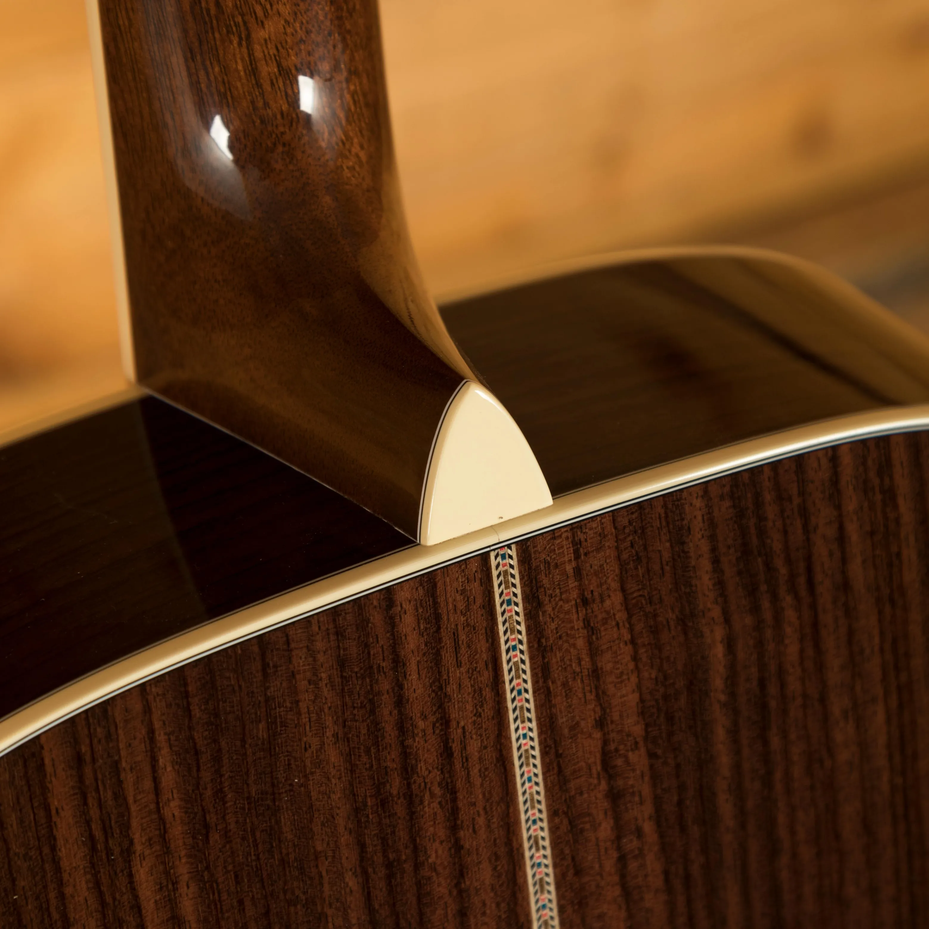 The Mahogany neck features an Ebony fingerboard, with a Modified V profile it is so comfortable and responsive. This guitar is perfectly at home strumming big chords or with delicate finger style, it's the complete acoustic guitar.