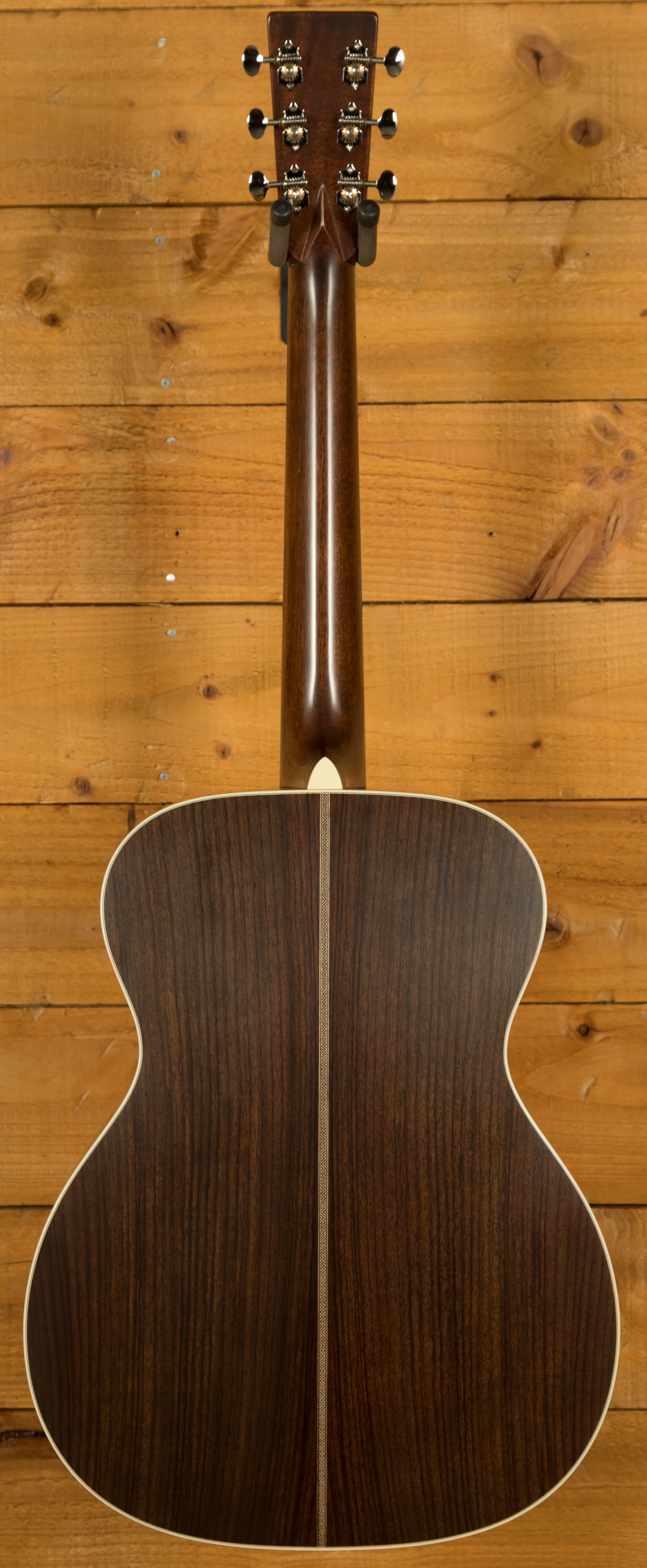 The C.F Martin Custom Shop 000-28 1937 offers authentic vintage styling, every element of this guitar has been designed to offer a true vintage playing experience. With a thin Adirondack Spruce top and premium East Indian Rosewood back and sides, thanks to the Authentic Pattern X-brace the Custom Shop Expert 00-28 is equally at home fingerpicking or strumming big, brash chords. The stunning Spruce top is topped off with Antique White binding, a 28 Multi-Stripe Rosette and a bold Herringbone inlay, it looks super slick.