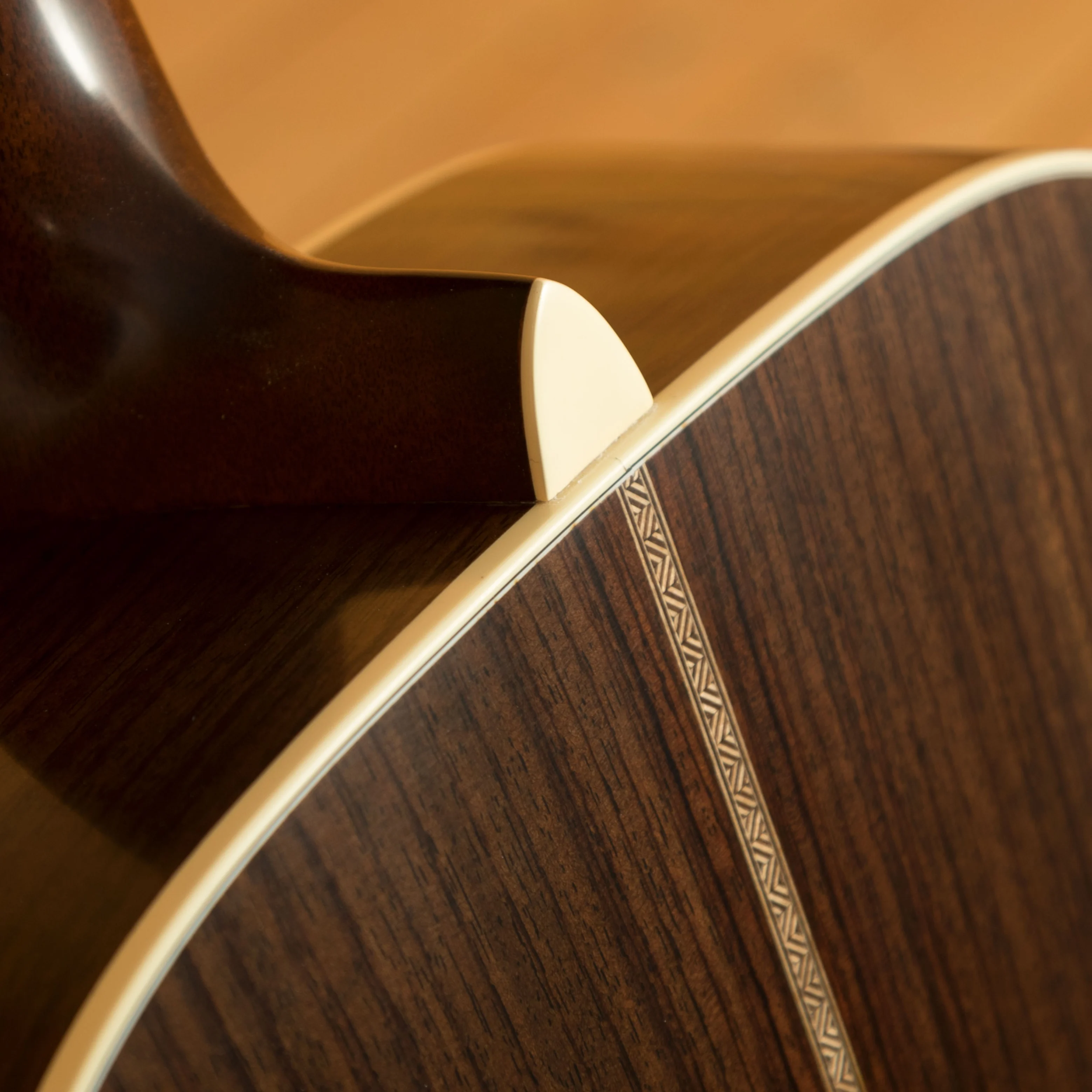 The genuine Mahogany neck is an absolute dream to play, with a Modified "V" Shape with a Standard Taper, 24.9" Scale Length, 1 3/4" Nut Width and Abalone Authentic '37 Diamond & Square Long Pattern inlays on an Ebony board. It is super comfortable and delivers a secure and comfortable playing platform.