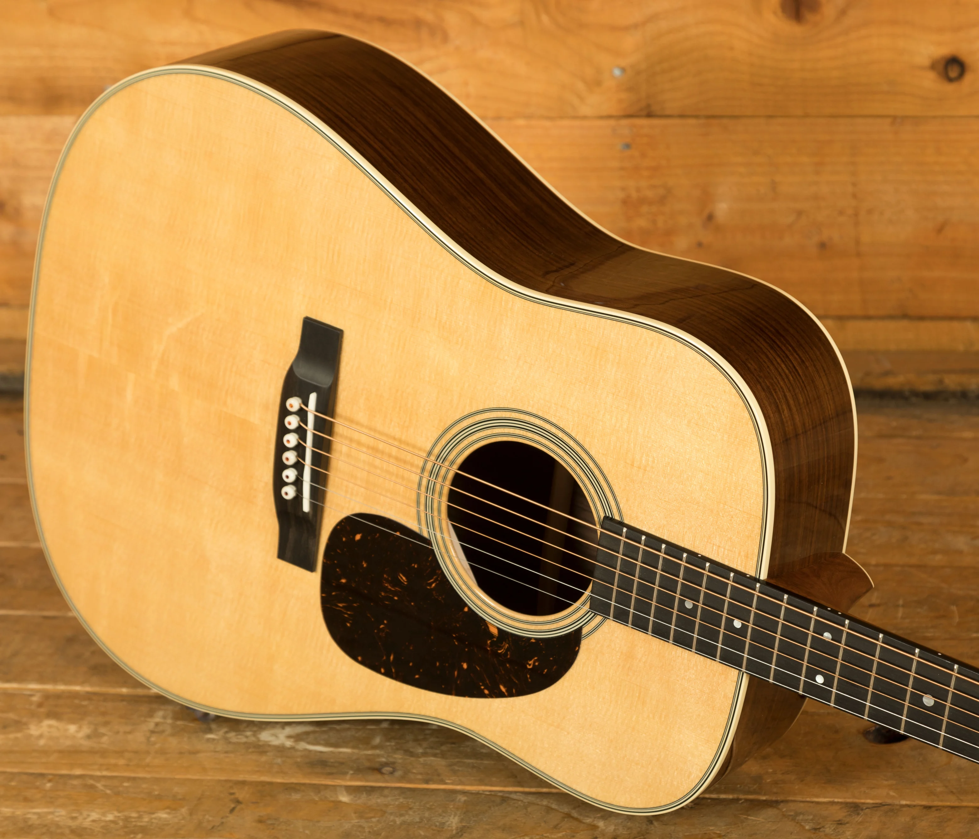 Constructed with a solid Sitka spruce top and solid East Indian rosewood back and sides, the D-28 delivers a full, resonant sound that is perfectly balanced for various playing styles. The satin-finished neck features a Golden Era Modified Low Oval profile and high-performance taper, ensuring smooth, effortless fretting and chord transitions. The 25.4" scale length enhances string tension, providing clarity and volume without sacrificing playability.