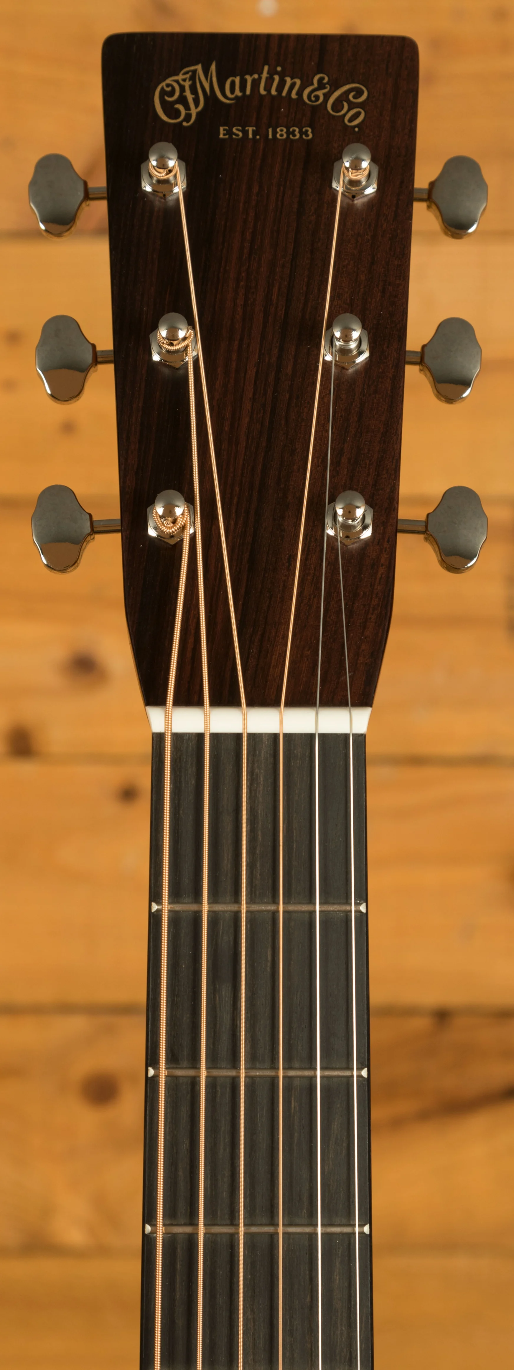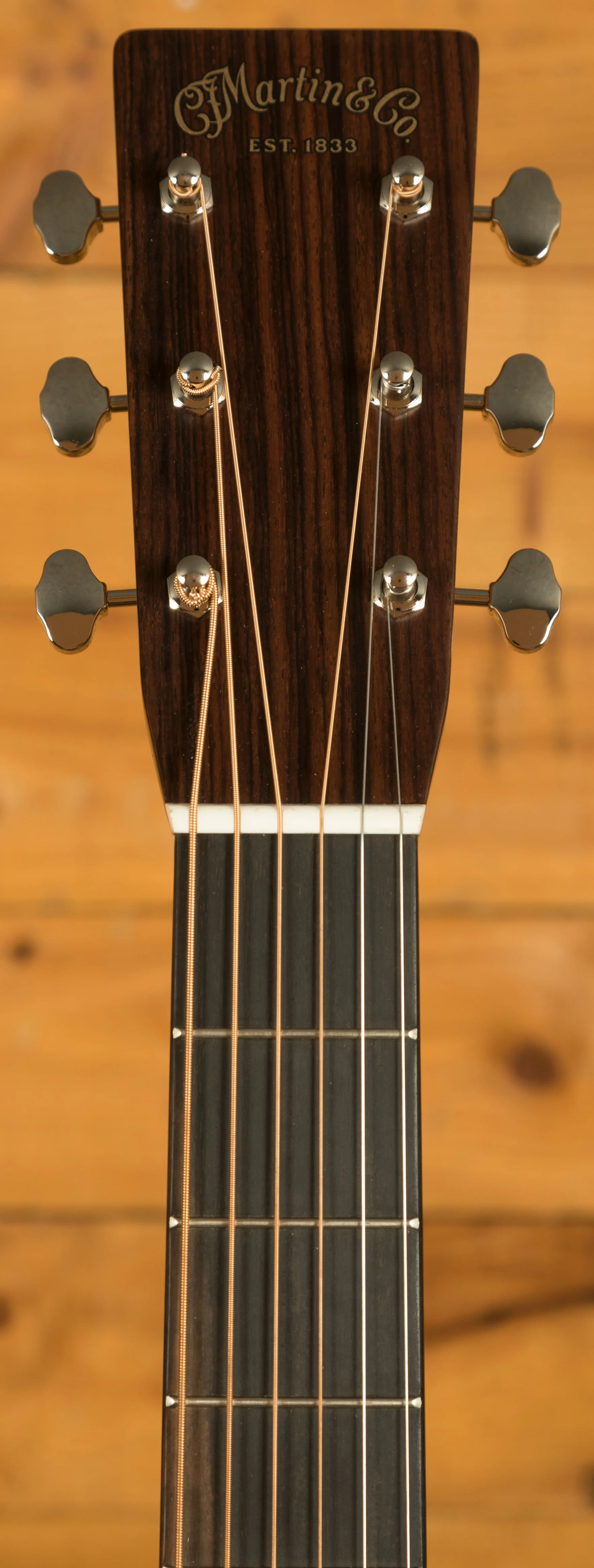 Additional features include a 1 3/4" bone nut and a compensated bone saddle, which contribute to improved tone, precise intonation, and superior sustain. The ebony fingerboard with mother-of-pearl dot inlays, ebony bridge with bone pins, and antique white binding showcase Martin's commitment to timeless design and meticulous attention to detail. Nickel open-gear tuners add a classic touch while ensuring stable and reliable tuning.