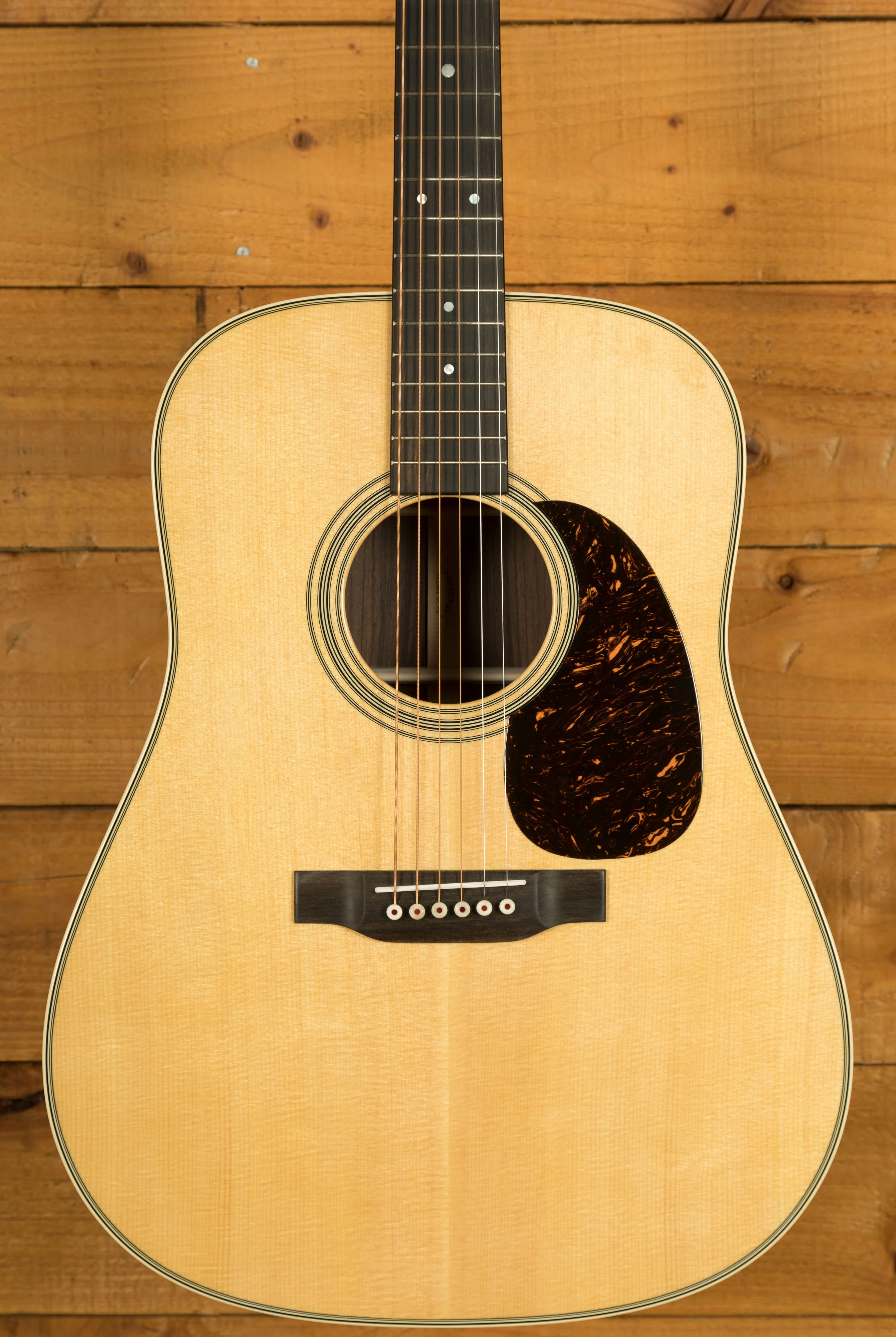 Part of Martin's refreshed Standard Series, the 2025 D-28 includes key upgrades to enhance tone, comfort, and style. The Sitka spruce Golden Era (GE) top bracing, borrowed from Martin's premium Modern Deluxe Series, offers vintage-inspired sustain and resonance. The reimagined neck profile, thinner fingerboard, and refined bridge and heel design improve the guitar's overall playability and aesthetics, making it comfortable for extended playing sessions. Each D-28 comes with a durable hardshell case for secure storage and transport.