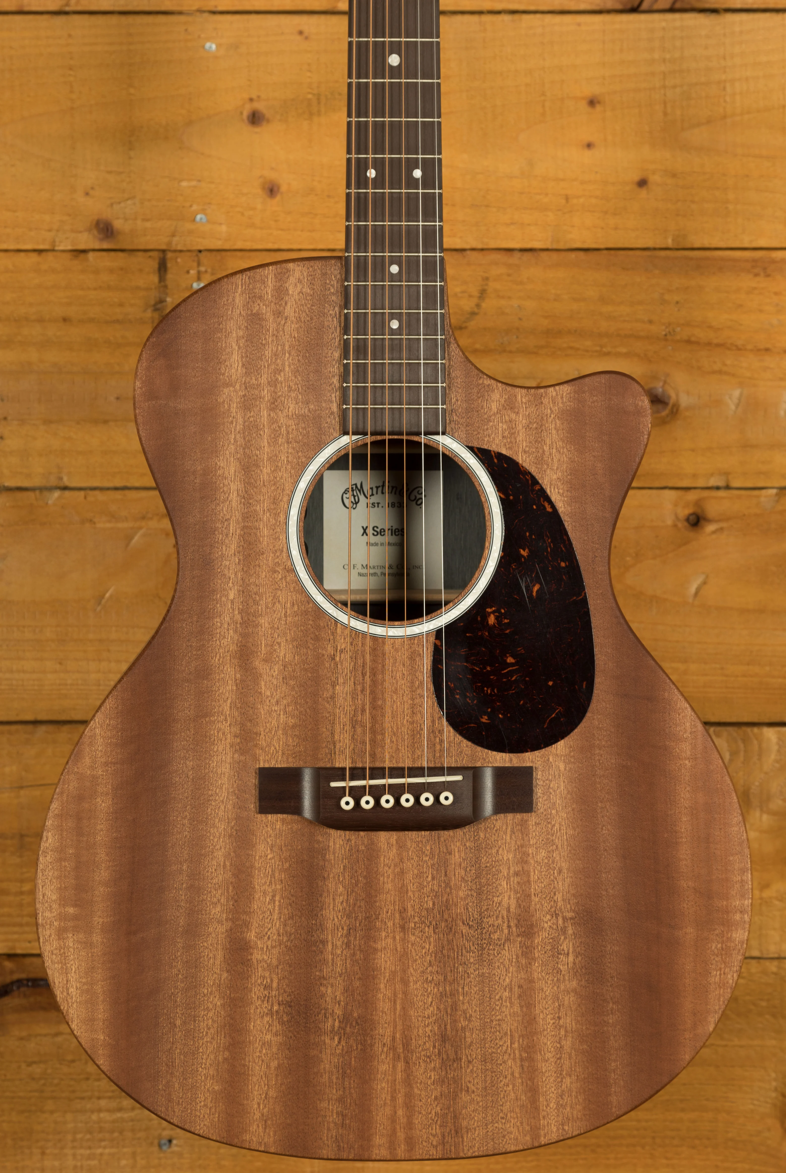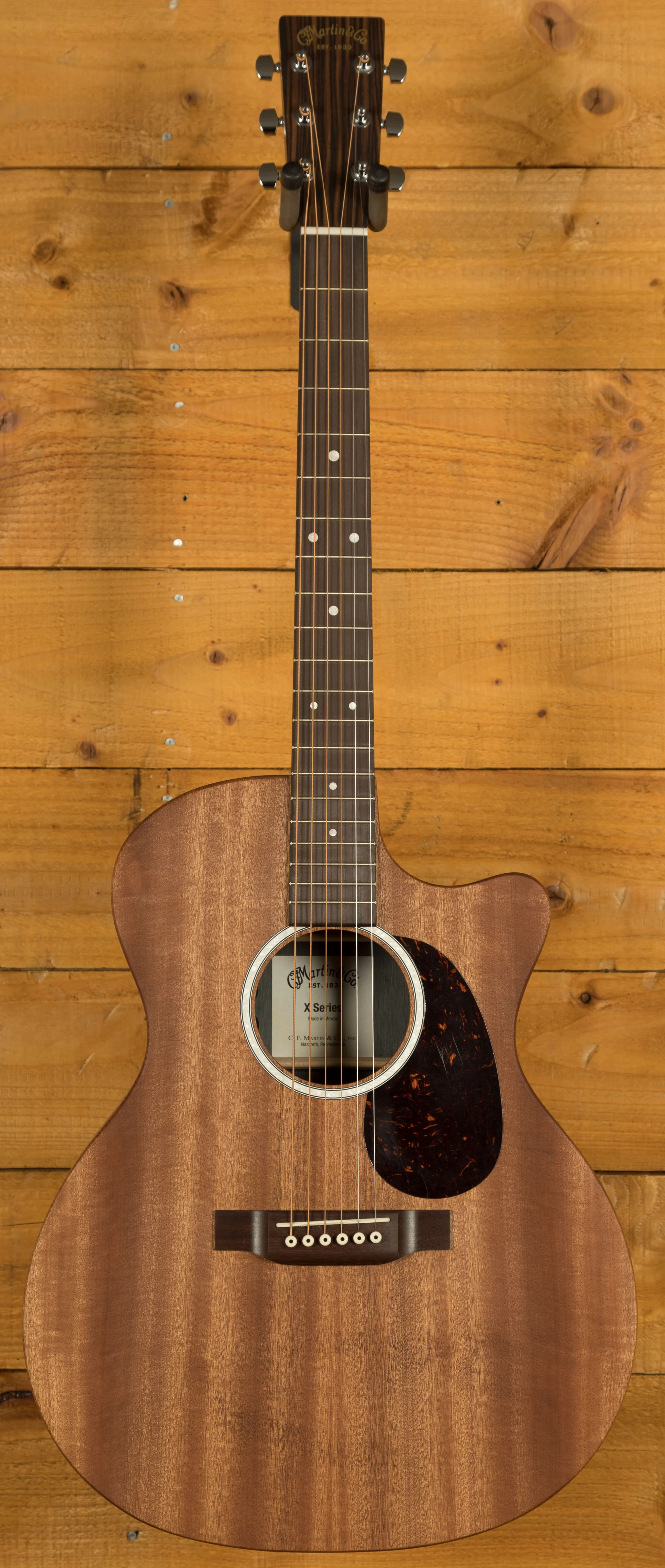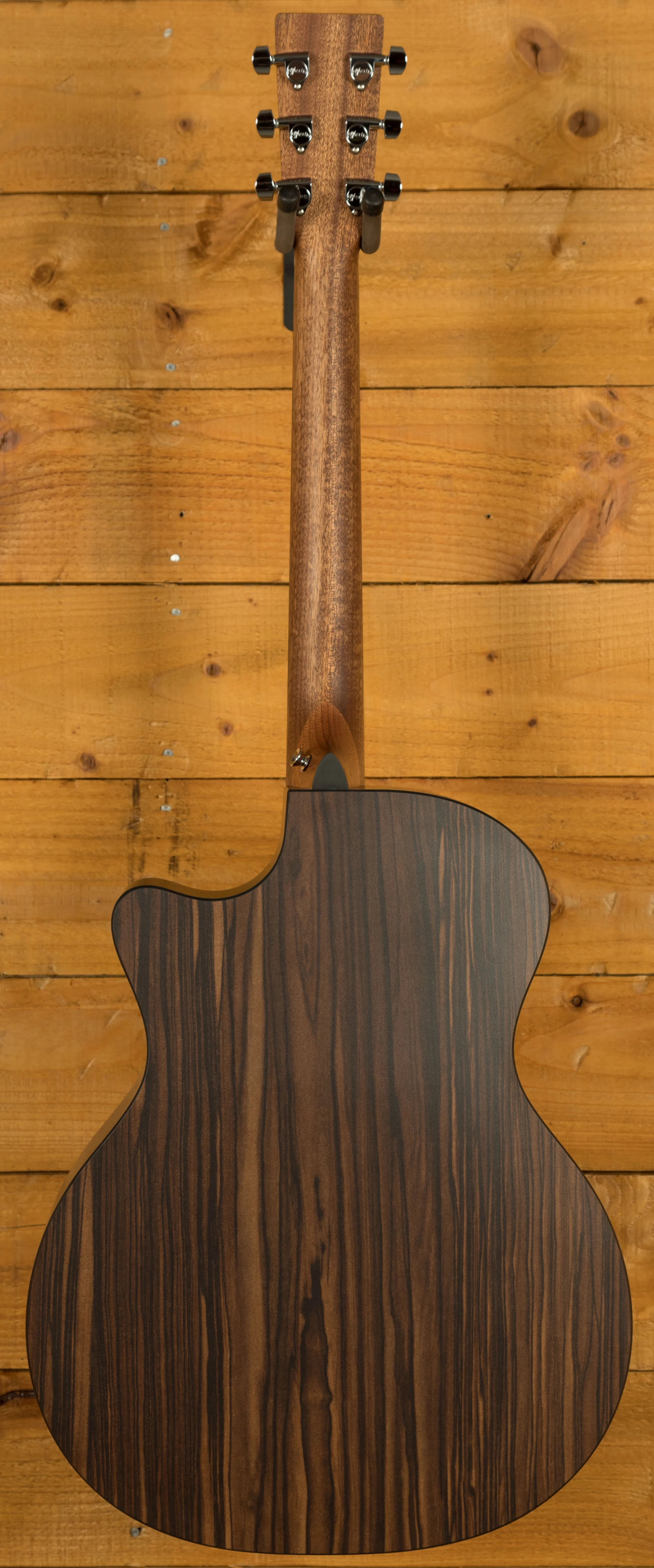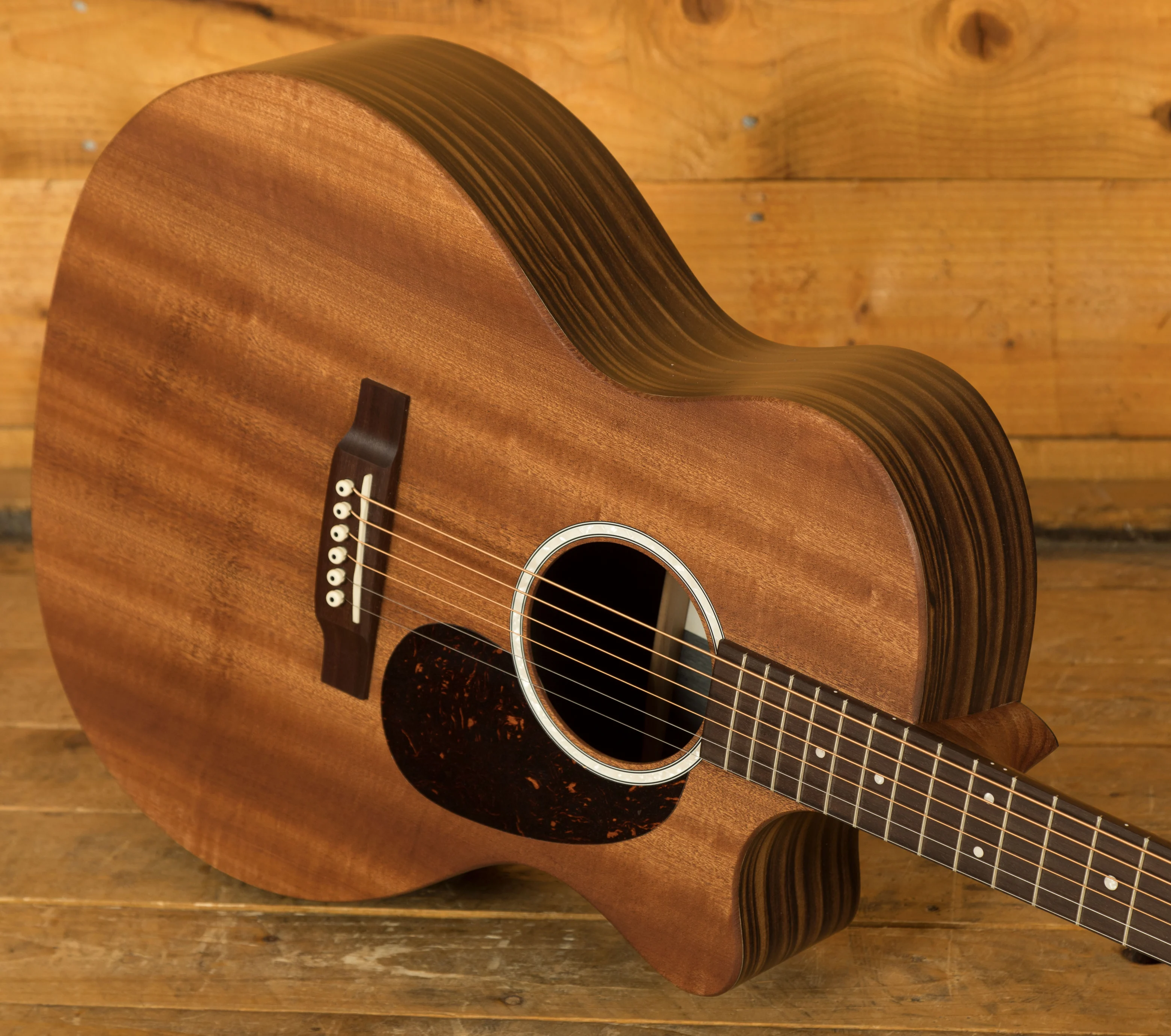 We took the GPCX2AE Macassar and reimagined it. The result is the GPC-X2E Macassar. This Grand Performance sized model features a cutaway body with a sapele top and Macassar pattern high-pressure laminate (HPL) back and sides. New mother-of-pearl pattern inlay on the rosette and fingerboard lend a richness to the GPC-X2E Macassar, making it as impressive to look at as it is to play. With a Performing Artist neck, fingerboard, and bridge of select hardwood, the sound transfer of this model has been greatly improved. It is equipped with Fishman® MX electronics and strung with Martin’s Authentic Acoustic Lifespan® 2.0 strings. With a new, soft gig bag featuring headstock, bridge, and endpin protectors, a durable water-repellent exterior, and foam padding, this model is ready to go anywhere.
