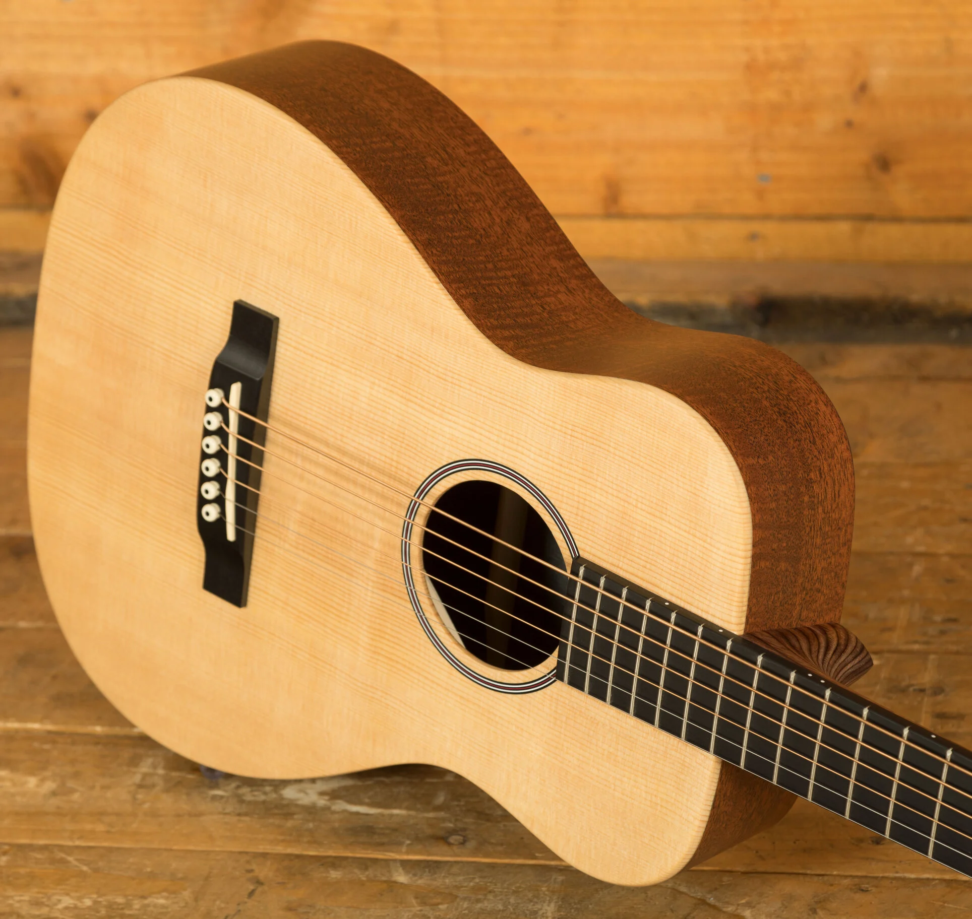 The LX1E is one of Martins smallest guitars, perfect for travel or using at home. It features a solid Sitka Spruce top with Mahogany HPL back and sides. It is tonally rich and punchy, don't let it's small size fool you!