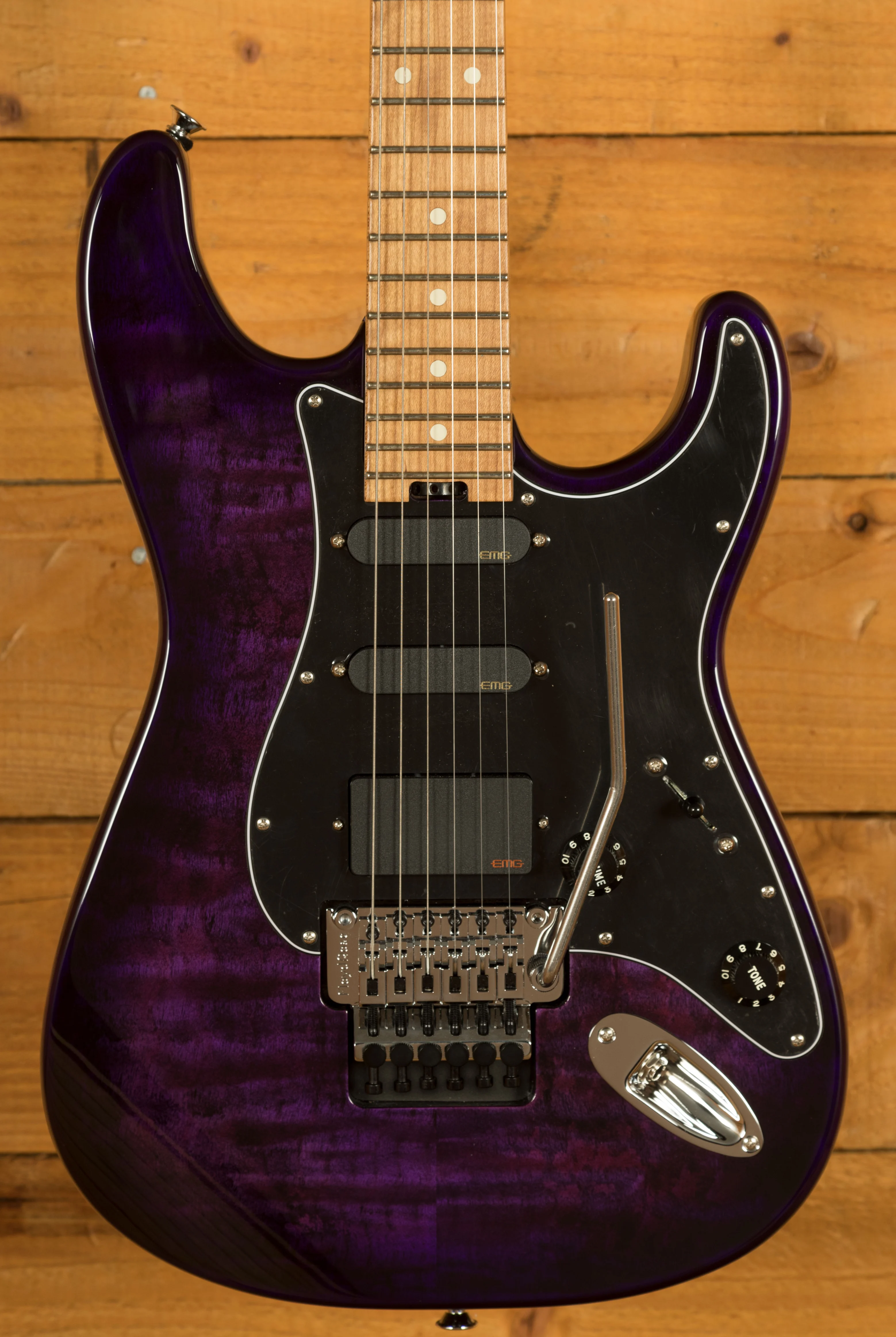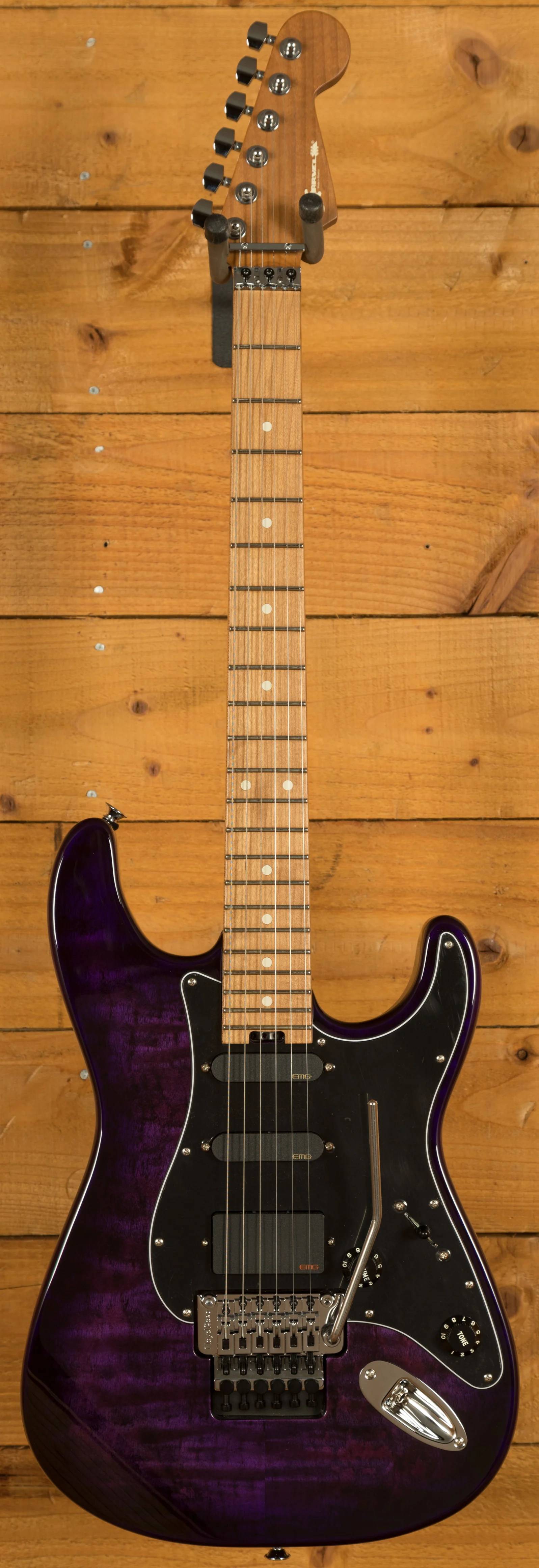 Charvel Marco Sfogli Signature Pro-Mod So-Cal Style 1 HSS FR CM - versatile signature Superstrat with EMG pickups - Floyd Rose tremolo - Transparent Purple Burst finish.