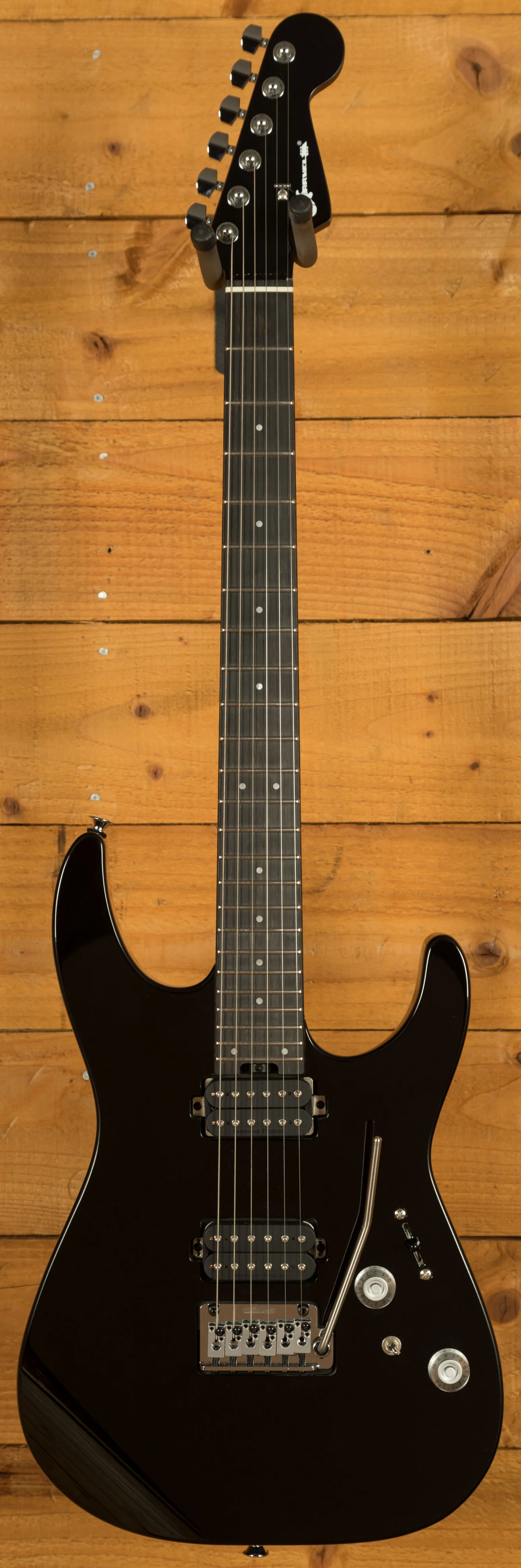 The Pro Mod Plus features top-notch hardware too, equipped with Charvel locking tuners and a Wilkinson WVS130-2P tremolo with locking saddles, it really has supreme tuning stability. Luminlay side dots, a Graph Tech TUSQ nut, EVH low-friction volume control, and no-load tone control are all the little details that make this guitar shine.