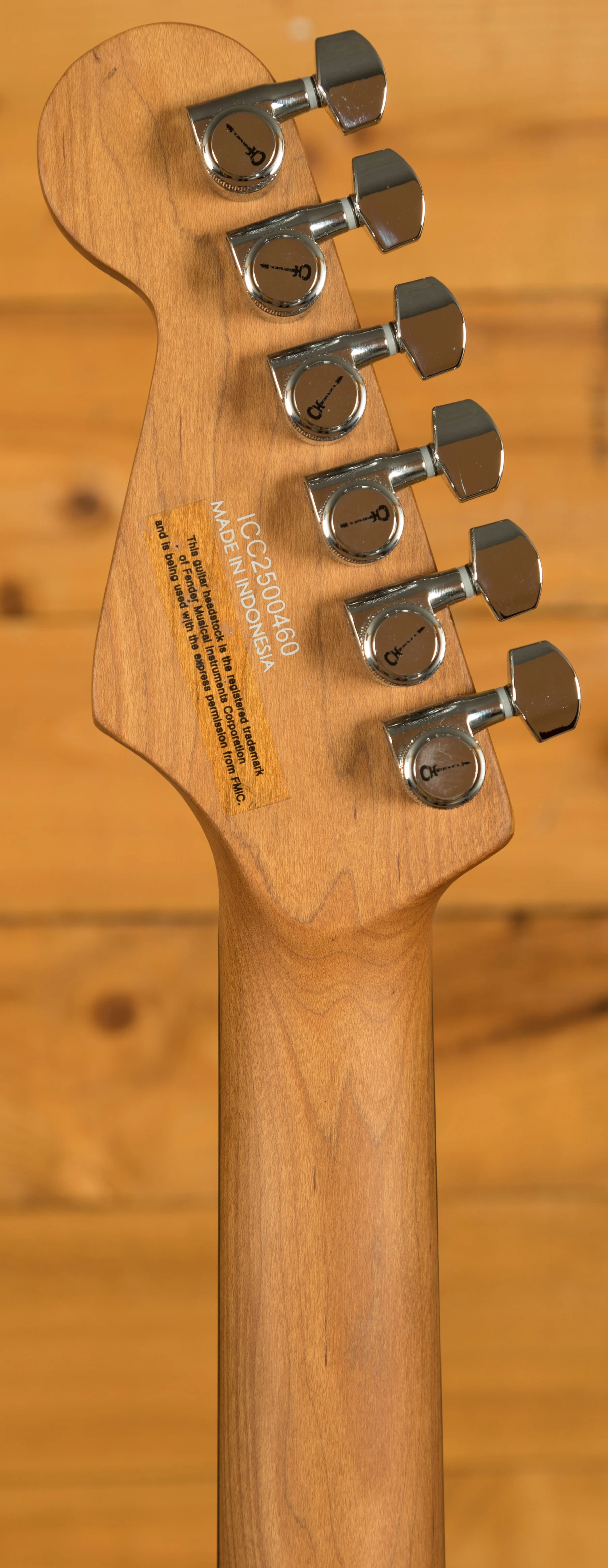 The Maple neck is subject to a special treatment that delivers the Caramelised quality. This heat and drying technique makes the wood feel and sound much older than it is, well into the phase where the wood opens up nicely. With 24 jumbo stainless steel frets on an Ebony fretboard, a 25.5" scale length, 12"-16" compound radius, and rolled fingerboard edges, it's fast, smooth and great for those sweeping licks and riffs.