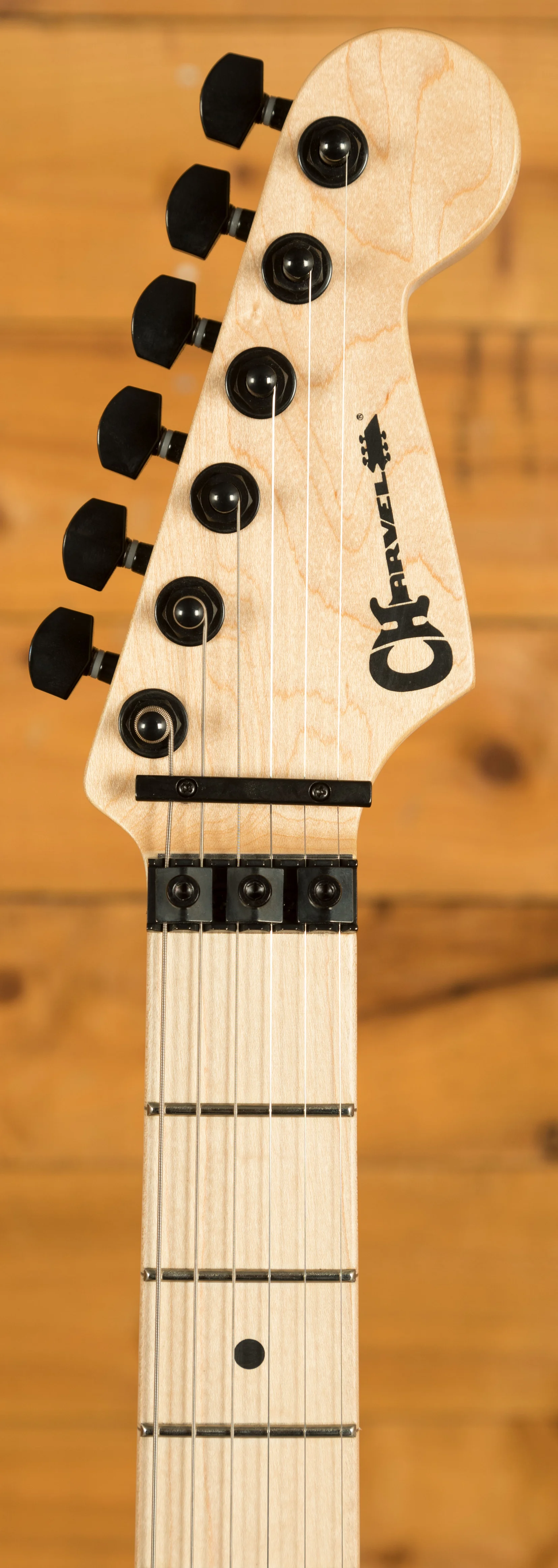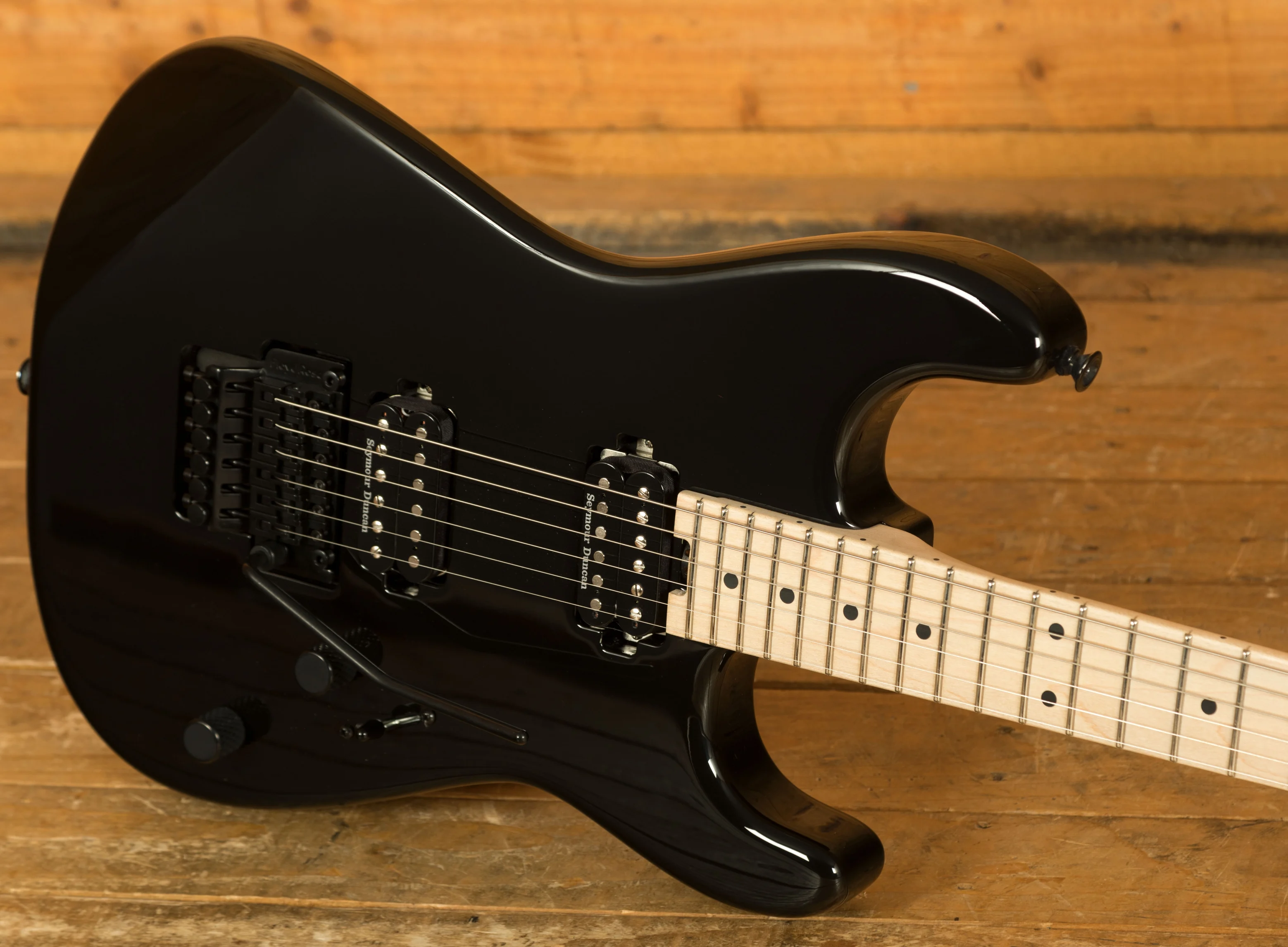 The Charvel Pro-Mod San Dimas Style 1 HH FR M is built for performance and durability. Its alder body is paired with a bolt-on maple neck reinforced with graphite rods, ensuring long-term stability and resistance to warping in changing climates. The speed neck profile allows for fast and effortless playing, while the rolled fingerboard edges create a smooth and comfortable feel for extended sessions. The compound-radius maple fingerboard, ranging from 12" to 16", provides excellent playability for both chords and solos, and the 22 jumbo frets with dot inlays make navigation easy. A heel-mount truss rod thumbwheel is included for quick and precise adjustments, which is especially useful for professional players who need to maintain their setup while on the road.