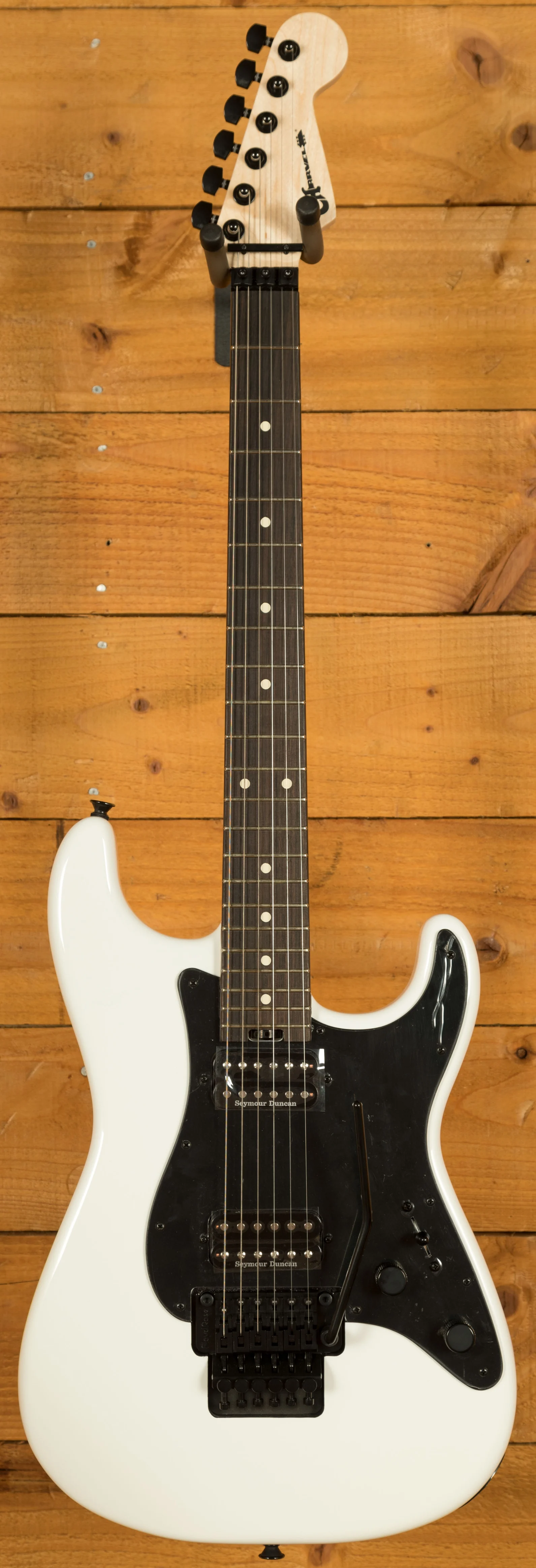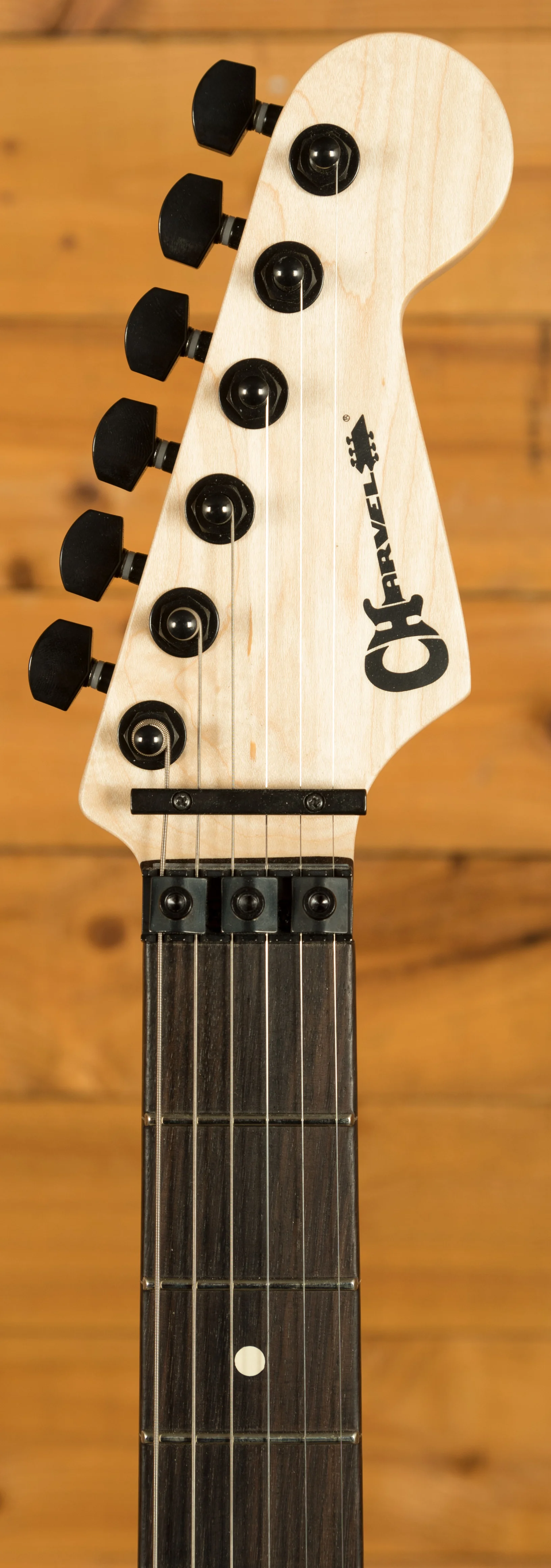 Equipped with a Floyd Rose 1000 Series double-locking tremolo system, players can dive, scream, and sustain without sacrificing tuning stability or intonation. Additional refinements include Charvel-branded die-cast tuners, a heel-mount truss rod adjustment wheel, and a hand-shake heel design for superior access.