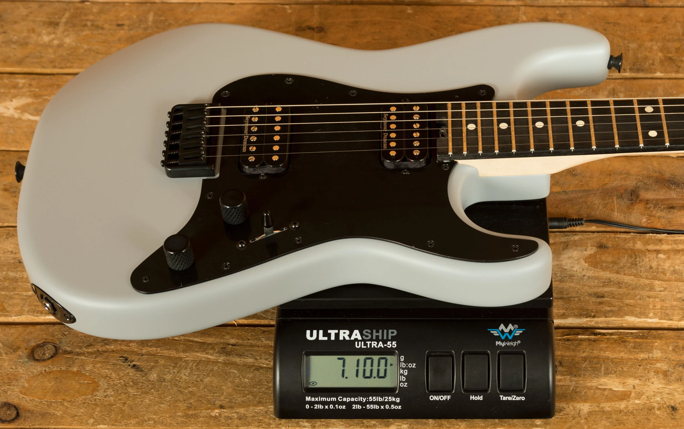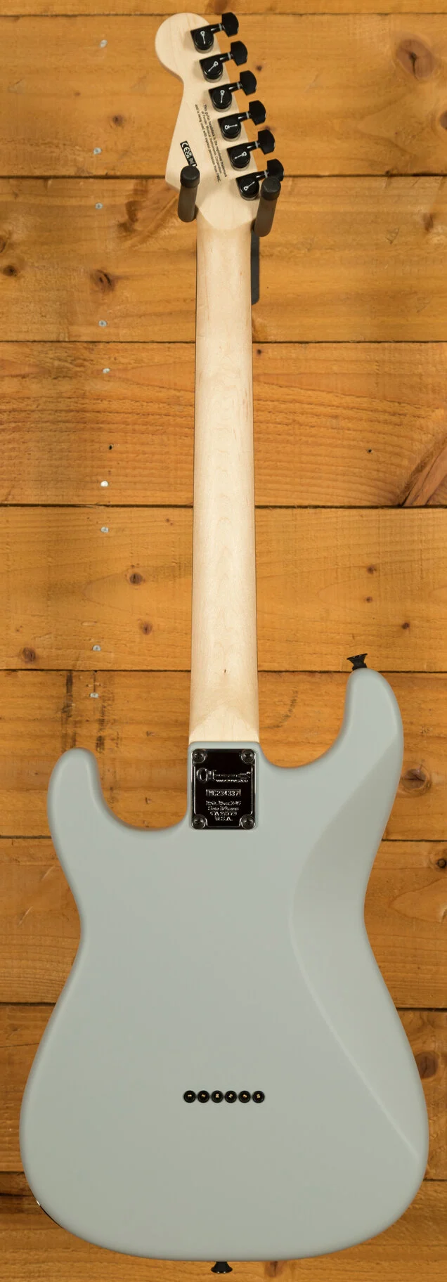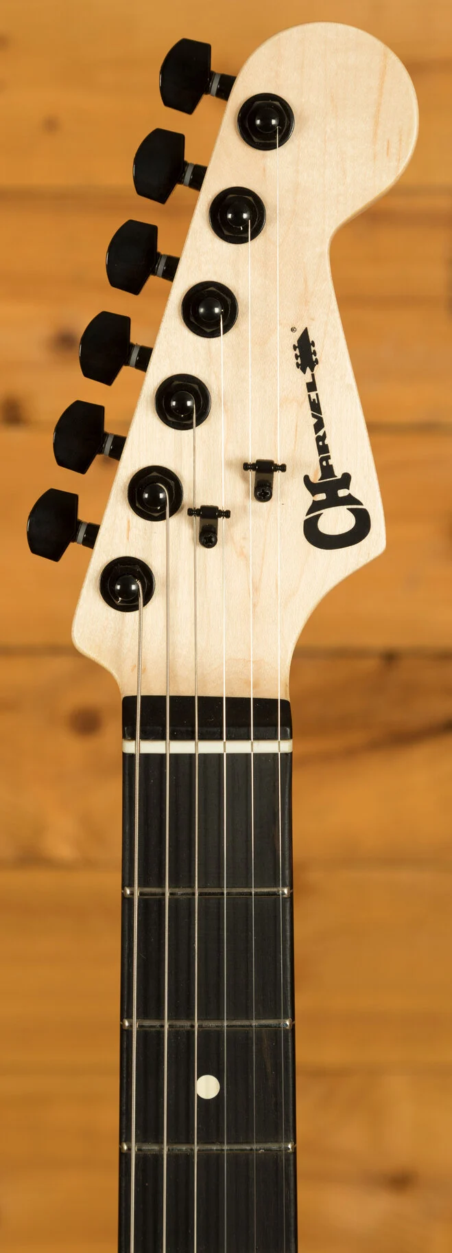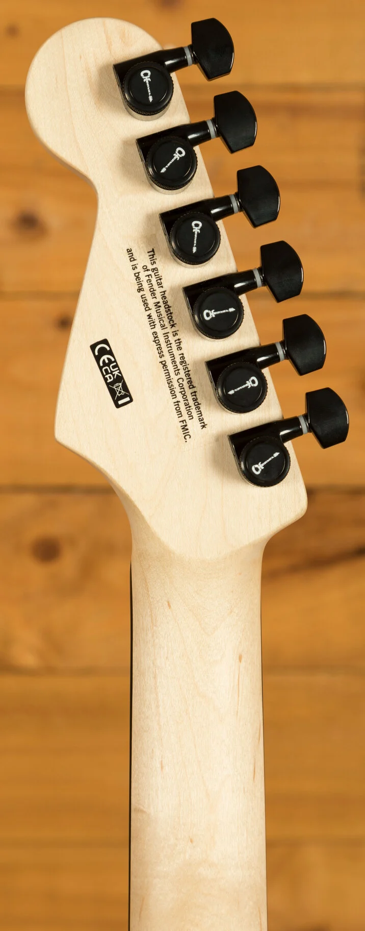 Additional features enhance the guitar's functionality and tonal range. The volume control includes a push/pull coil split, giving players access to single-coil tones for sharper, more dynamic sound options. The no-load tone control operates as a standard tone circuit but removes itself entirely at the maximum setting, ensuring a pure, uncoloured signal. A Charvel HT6 string-through-body hardtail bridge further improves tuning stability and sustain, making this guitar reliable for both studio work and live performance.