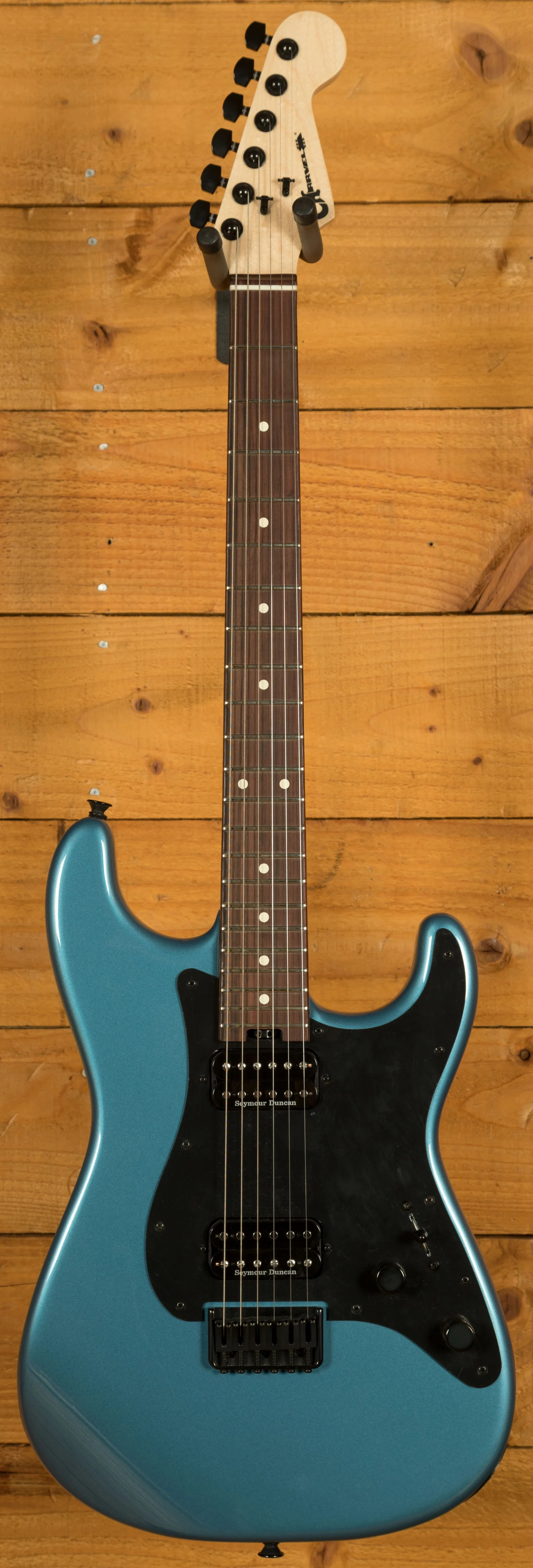 Further expanding its tonal range, the So-Cal features a push/pull coil-split function on the volume control for single-coil-like clarity, and a no-load tone control that bypasses the circuit at maximum setting to preserve the guitar's natural brightness. The Charvel HT6 string-through-body hardtail bridge enhances sustain, resonance, and tuning stability, while the locking tuners ensure fast, secure string changes and precise tuning retention. Designed for performance and dependability, the Charvel Pro-Mod So-Cal Style 1 HH HT RW is a professional-grade instrument ready for both stage and studio use.