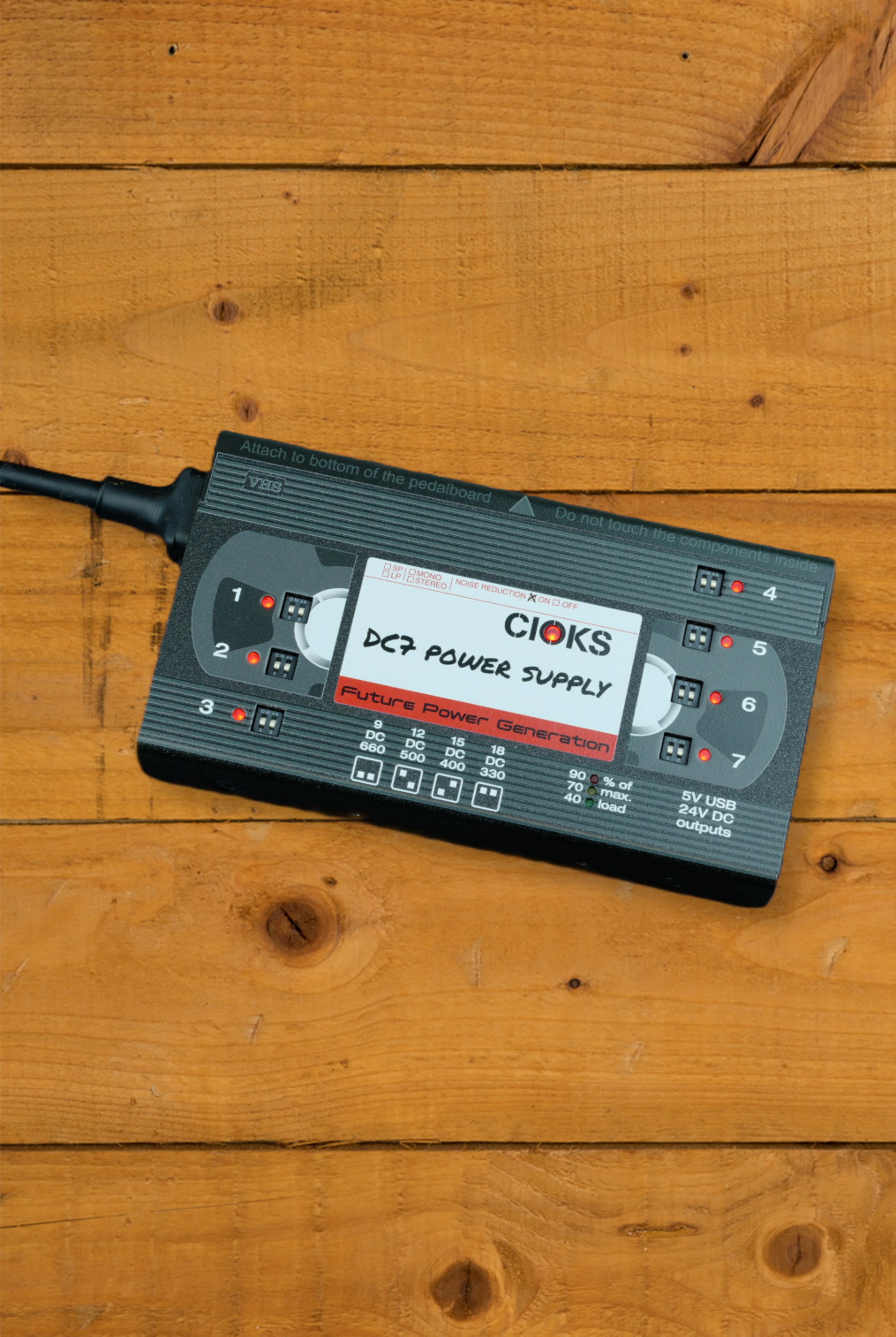 The CIOKS DC7 VHS is a limited edition version of the acclaimed DC7, reimagined with bold 1980sinspired VHS graphics and a premium retro aesthetic. Beneath the nostalgic styling lies one of the most advanced pedalboard power supplies available today, delivering ultra-low-noise performance, huge current capability and exceptional flexibility in a remarkably slim one-inch profile.