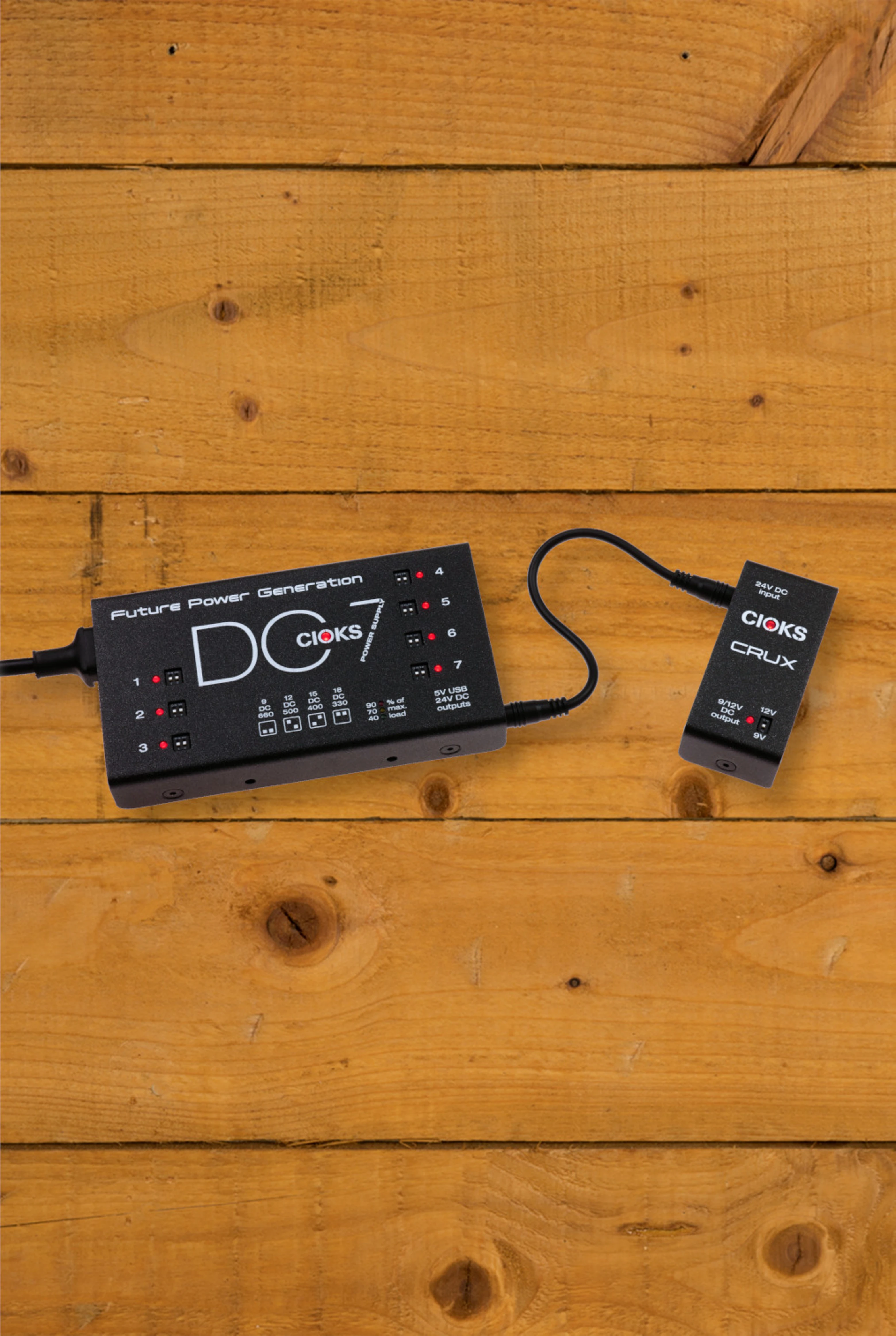 At its core, the CRUX converts the 24V aux outlet on DC7 into a powerful 9V or 12V output, delivering 24W of total power. This compact, low-profile unit integrates seamlessly into advanced pedalboard setups, offering overvoltage protection and short-circuit safety for maximum reliability.