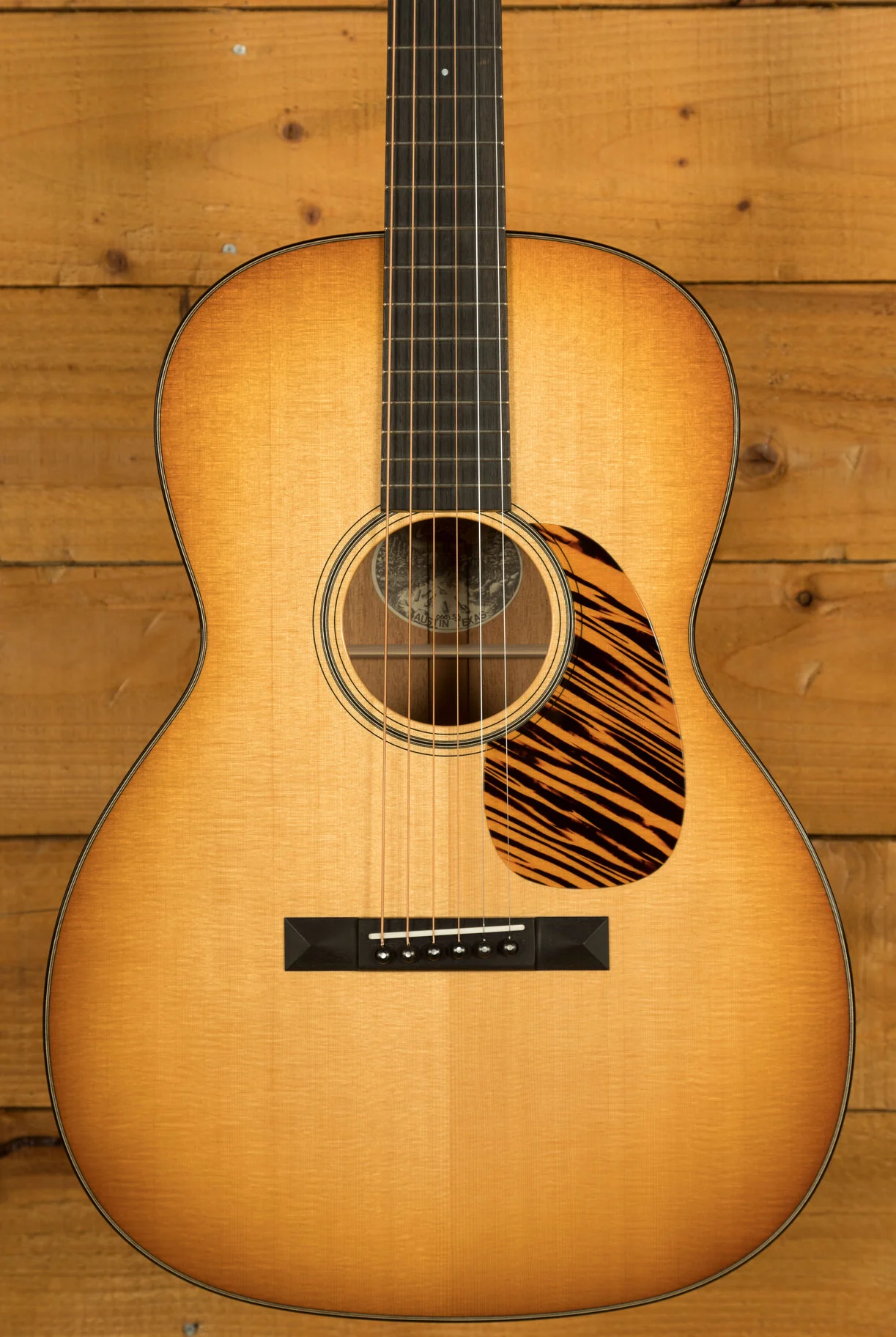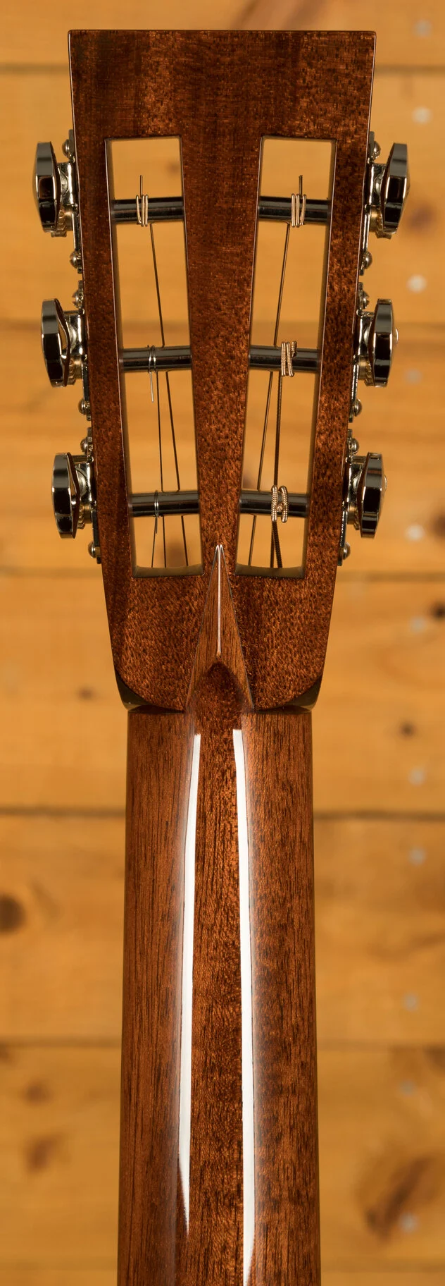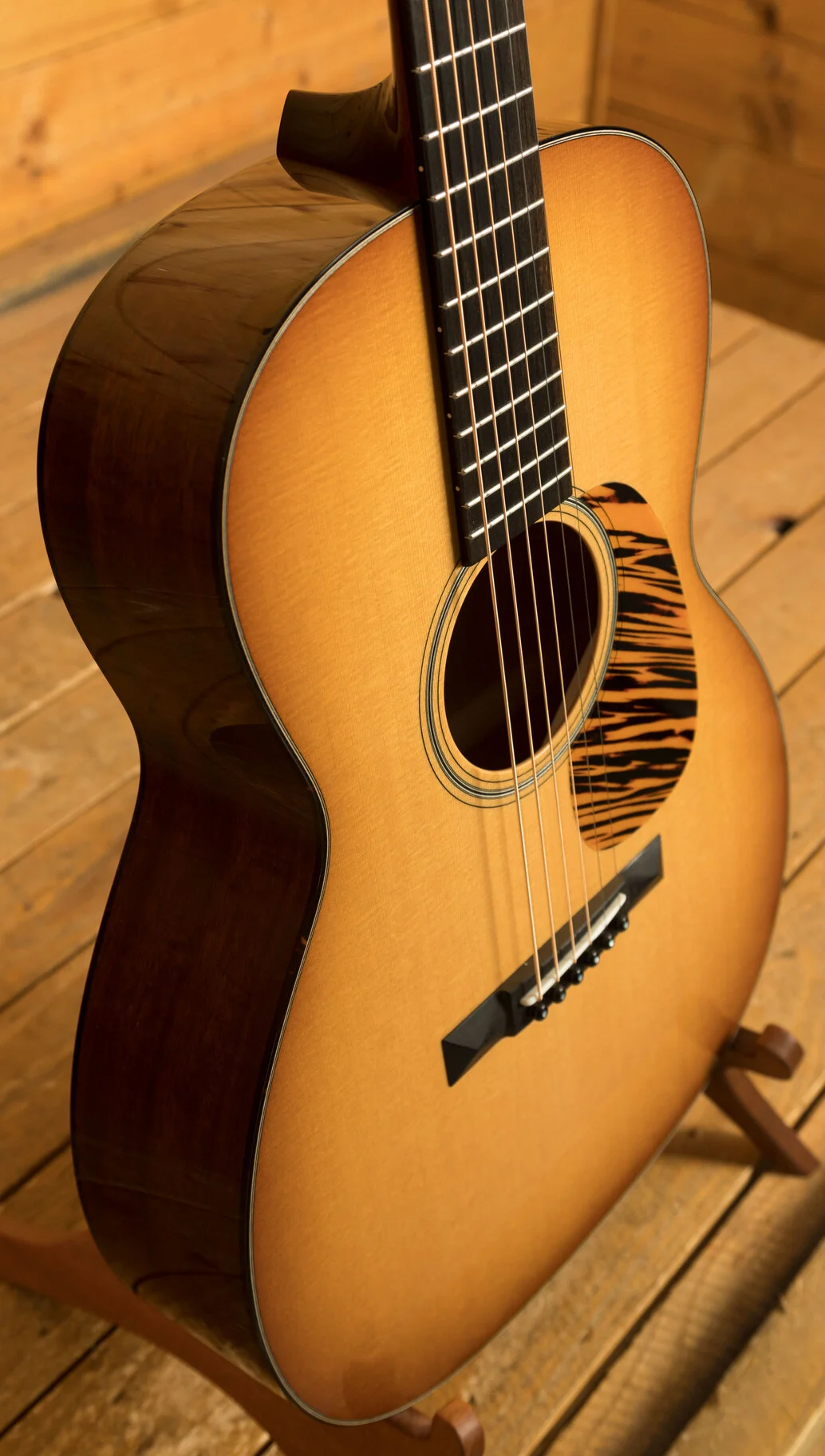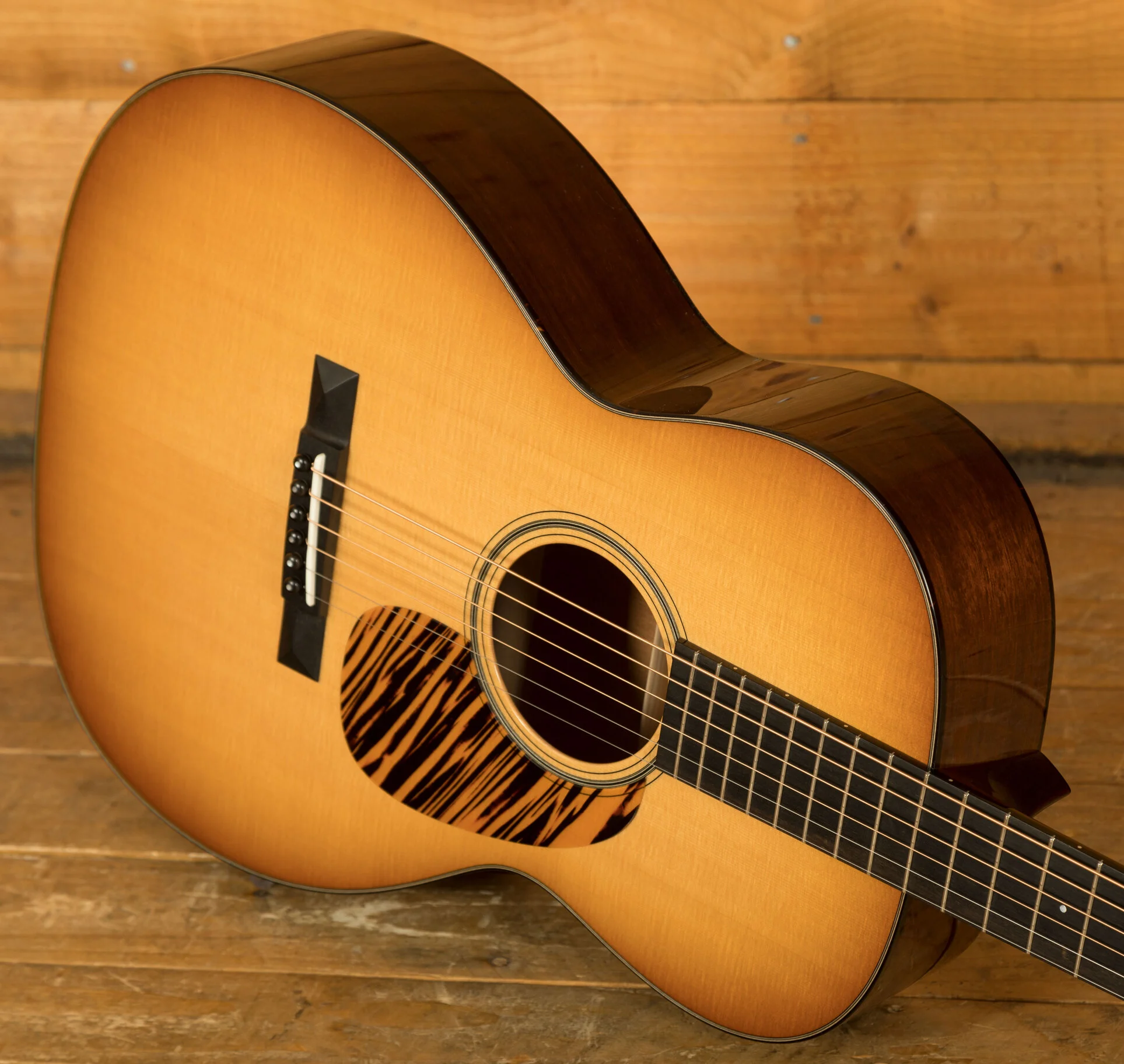 This guitar features a Sitka spruce top paired with Honduran mahogany back and sides, providing a rich tonal foundation with warmth, clarity, and dynamic range. The pre-war scalloped X-bracing, also crafted from Sitka spruce, maximises resonance and responsiveness, delivering an impressive projection and sustain. A high-gloss nitrocellulose lacquer finish enhances both the durability and the natural beauty of the wood.